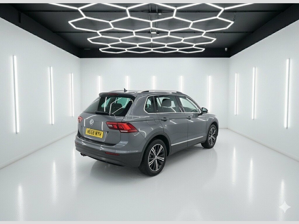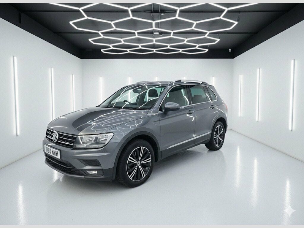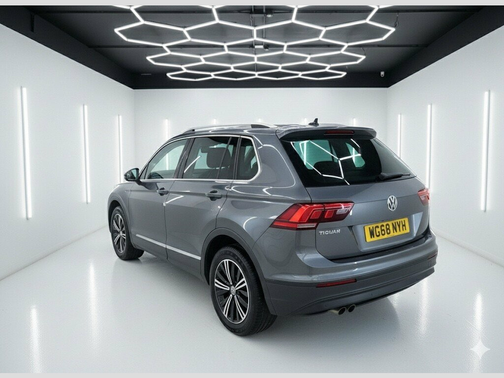 January 2019 Volkswagen Tiguan 2.0 SE TDI Navigation SUV Diesel Manual Euro 6 Start Stop 150PS. The car has had 1 owner from new and has 6 services recorded. The car is presented in gleaming Urano Grey Metallic with two tone black/grey cloth upholstery, The car has covered 90,017 miles from new. The Tiguan has a 6 speed manual transmission and is 2 wheel drive wit start/stop function Road tax comes in at just £195 for 12 months Insurance group 16E and the car returns a very healthy 48mpg urban, 68mpg extra urban and 59mpg combined The car comes with a high and extensive factory specification which consists of power steering, multi function steering wheel, cruise control, electric windows, electric door mirrors, ISOFIX car seat jacking points, Bluetooth phone prep, DAB digital radio, Navigation SD card, climate control, parking sensors, park assist, cloth trim, space saver wheel, metallic paint, privacy glass. This car is perfect for the family the perfect blend of style comfort and reliability. Tyre Pressure Monitoring System, Winter Pack, Progressive Steering, Indium Grey, Park Assist with Rear View Camera, Urano Grey, Ambient Lighting Pack, 12V Socket - Luggage Compartment, 12V Socket in Centre Console in Storage , 12V Socket on Rear of Front Centre Armre, 18 Degree Angle of Approach, 18in Alloy Wheels - Patagonia, ABS - Anti-Lock Braking System, Active Bonnet, Adaptive Cruise Control, Airbags, Alarm with Interior Protection with Deac, Automatic Coming-Leaving Home Lighting F, Automatic Dimming Rear View Mirror, Automatic Hazard Lights Activation Under, Black Grained Lower Door Protectors with, Body Coloured Bumpers and Door Handles, Body-Coloured Door Mirrors with Integrat, Car-