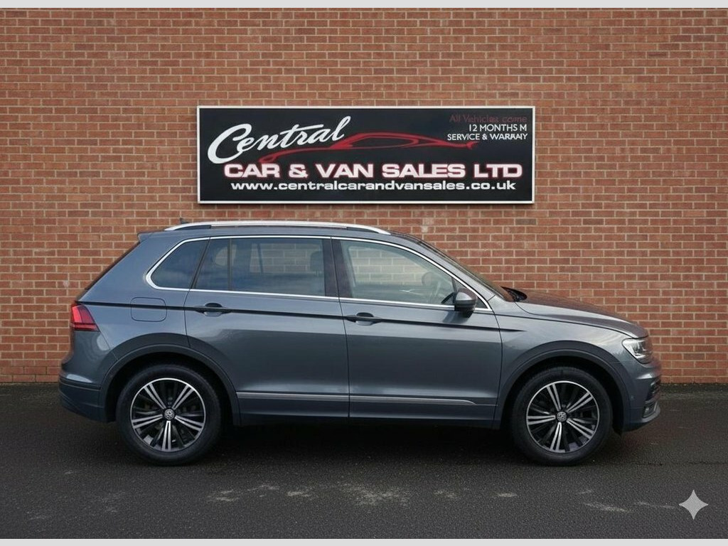 January 2019 Volkswagen Tiguan 2.0 SE TDI Navigation SUV Diesel Manual Euro 6 Start Stop 150PS. The car has had 1 owner from new and has 6 services recorded. The car is presented in gleaming Urano Grey Metallic with two tone black/grey cloth upholstery, The car has covered 90,017 miles from new. The Tiguan has a 6 speed manual transmission and is 2 wheel drive wit start/stop function Road tax comes in at just ?195 for 12 months Insurance group 16E and the car returns a very healthy 48mpg urban, 68mpg extra urban and 59mpg combined The car comes with a high and extensive factory specification which consists of power steering, multi function steering wheel, cruise control, electric windows, electric door mirrors, ISOFIX car seat jacking points, Bluetooth phone prep, DAB digital radio, Navigation SD card, climate control, parking sensors, park assist, cloth trim, space saver wheel, metallic paint, privacy glass. This car is perfect for the family the perfect blend of style comfort and reliability. The car comes with a nationwide warranty which covers you across the U.K. we can arrange excellent rates of finance and you can apply online at www.centralcarandvansales.co.uk. We can take credit & debit card payments and we can take your car, van or motorbike in part exchange for any more details or to arrange a test drive or viewing please call us on 01524 67222 or 07407358162. Please note we are selling used cars and to expect some age related marks and ware if in doubt please d 12V Socket - Luggage Compartment, 12V Socket in Centre Console in Storage , 12V Socket on Rear of Front Centre Armre, 18 Degree Angle of Approach, 18in Alloy Wheels - Patagonia, ABS - Anti-Lock Braking System, Active Bonnet, Adaptive Cruise Control, Airbags, Alarm with Interior Protection with Deac, Ambient Lighting Pack, Automatic Coming-Leaving Home Lighting F, Automatic Dimming Rear View Mirror, Automatic Hazard Lights Activation Under, Black Grained Lower Door Protectors with, Body Coloured Bumpers and Door Handles, Body-Coloured Door Mirrors with Integrat, Car-Net App Connect, Car-Net Guide and Inform (3 Year Subscri, Carpet Mats - Front and Rear, Chrome Side Window Surrounds, Chrome Tr