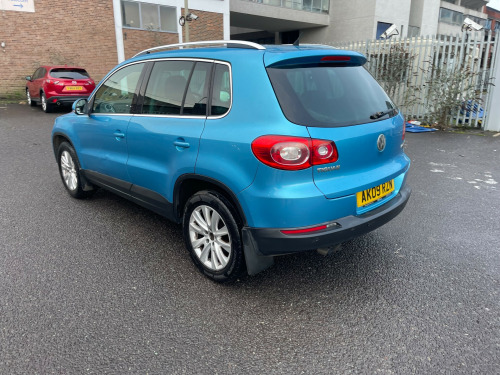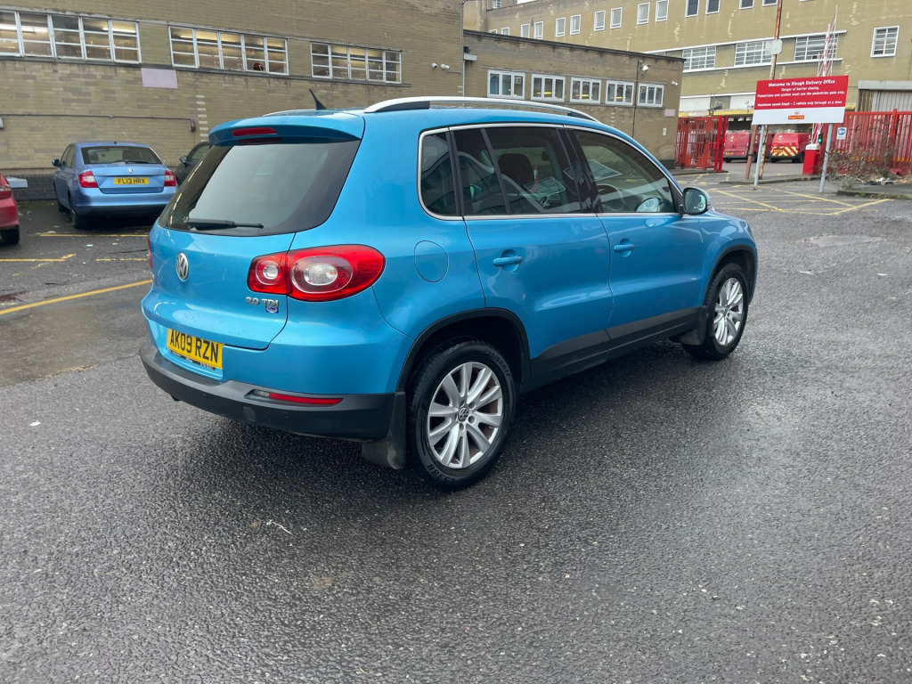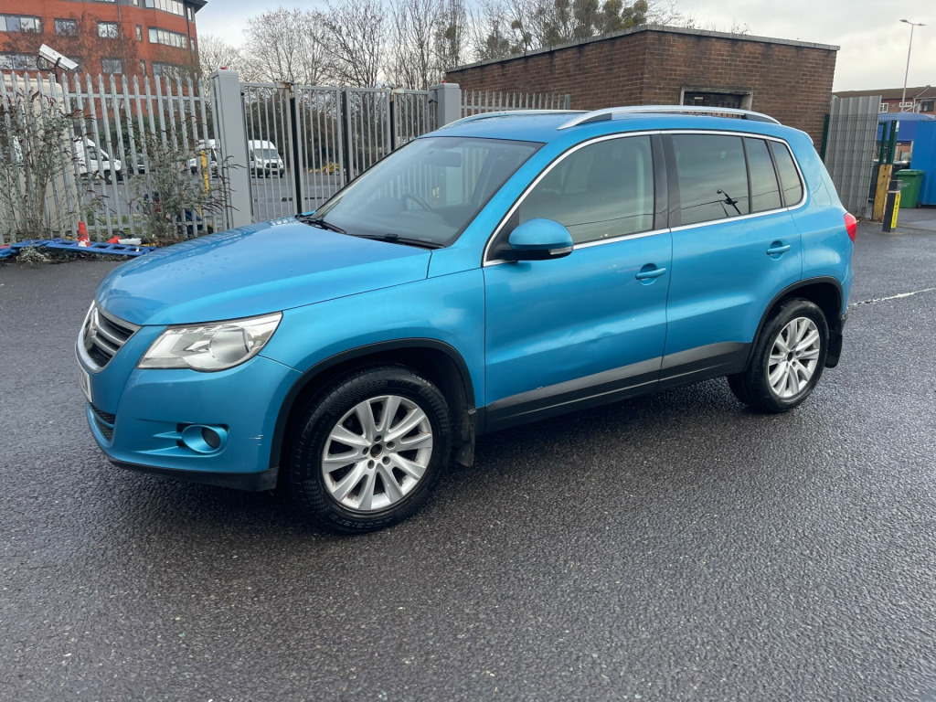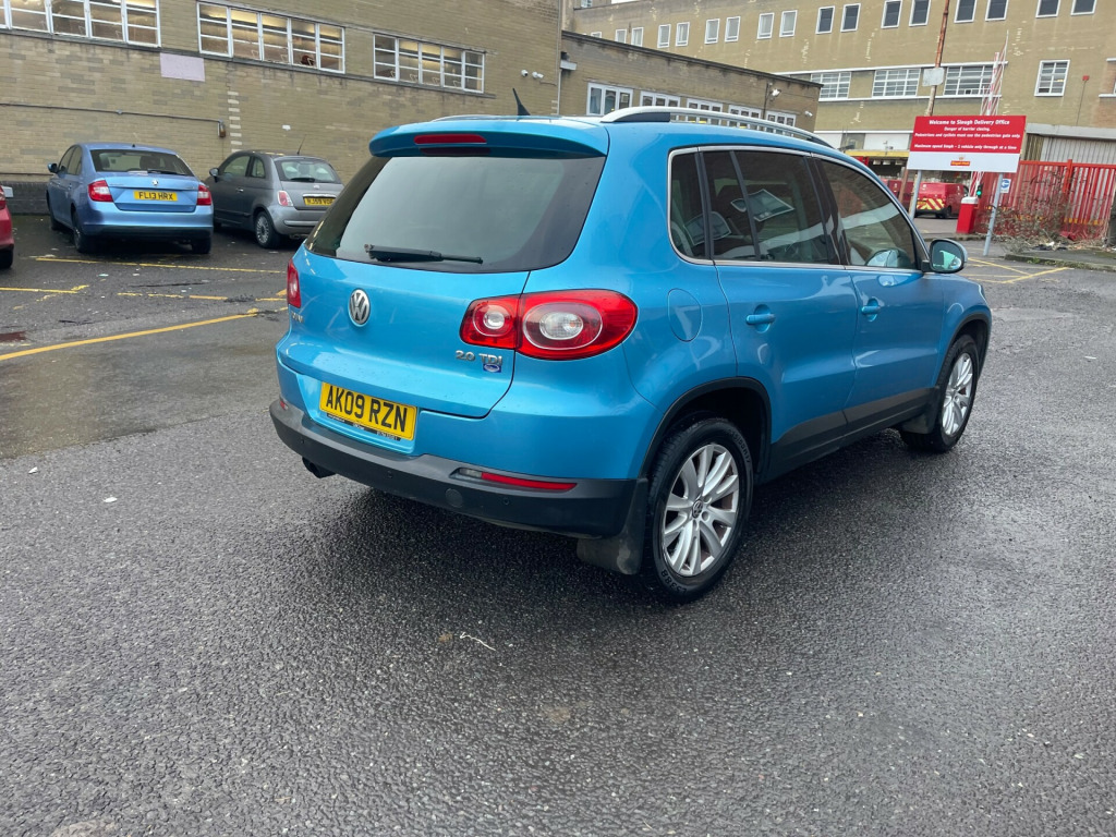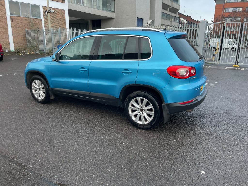 2KEYS LEATHERS FULL SERVICE HISTORY JUST BEEN SERVICED AND MOT GREAT RUNNER SMOOTH DRIVE This 2009 Volkswagen Tiguan 2.0 TDI SE SUV has a powerful 140 ps diesel engine with 116000 miles on the clock and an MOT that doesn't expire until 30/01/2027. With 5 doors and 5 seats, this SUV is spacious and practical for families or adventurers. It also comes with automatic 4WD for extra traction and stability. The Euro 4 emissions rating ensures efficiency and reduced environmental impact. Overall, this Tiguan is a reliable and capable vehicle that offers both comfort and performance for any journey.