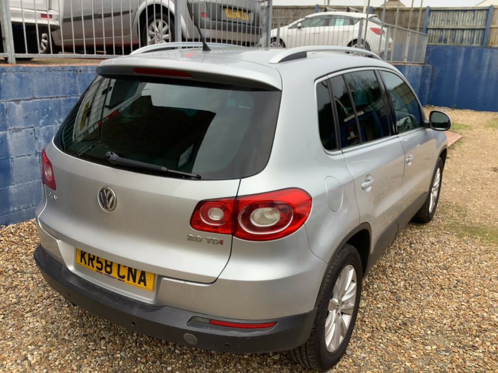 JUST IN STOCK A CLEAN AND TIDY VOLKSWAGEN TIGUAN 2.0 SE TDI DIESEL MANUAL SILVER 5 DOOR ESTATE CAR. THIS COMES WITH SERVICE HISTORY INCLUDING A RECENT CAM BELT CHANGE. IT WILL BE SOLD WITH 12 MONTHS MOT AND A SERVICE. THIS DRIVES EXTREMELY WELL INDEED AND THESE MAKE BRILLIANT FAMILY CARS OR WORKHORSES.PART EXCHANGES WELCOMED. ALL MAJOR CREDIT AND DEBIT CARDS ACCEPTED. ALL VIEWINGS STRICTLY BY APPOINTMENT ONLY. READ OUR GOOGLE REVIEWS AND BUY WITH CONFIDENCE. in sahara alloy wheels with tyre flat indicator & antitheft wheel bolts, 3spoke leather steering wheel & gearknob & handbrake grip, air conditioning climatic semi automatic control, multifunction computer- highline, multifunction computer- midline, rcd 510 touch screen radio & dash mounted 6cd & mp3 auto- changer 8 speakers & aux-in socket- front centre console