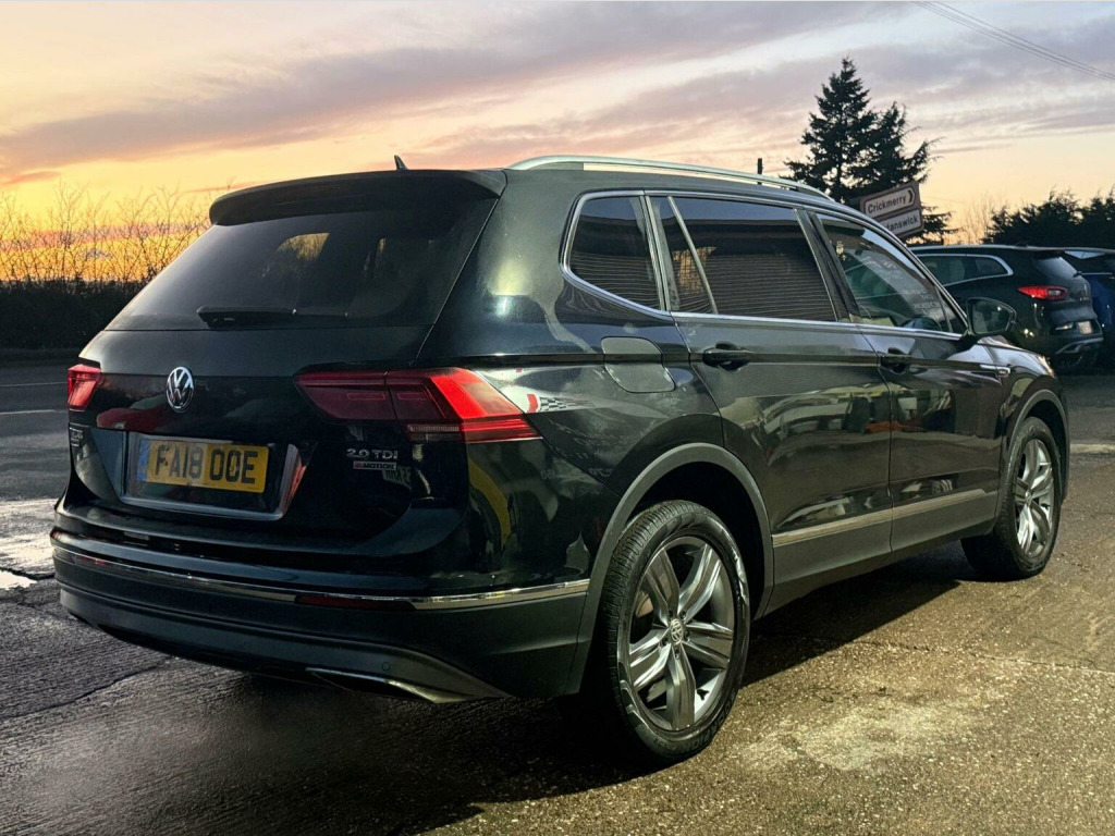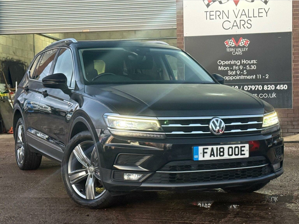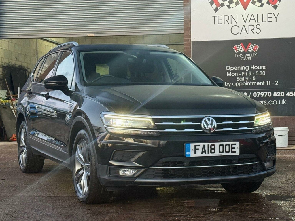 # DEPOSIT, NOW TAKEN # This 2018 Volkswagen Tiguan Allspace TDI SEL with a full service history, a clear vehicle history check, and a recent service completed on 2025-07-28 at 65,555 miles, all backed by a 6 month warranty and 12 months MOT provided on purchase. This versatile seven seat SUV is equipped with a powerful 2.0L Euro 6 diesel engine and Four Wheel Drive, making it capable of towing up to 2500 kg. Notable features include automatic dusk sensing and LED headlights with dynamic light assist, a 3Zone electronic climate control system for personalised comfort, keyless entry with a full electric tailgate, and an opening panoramic sunroof. Connectivity is 1st class with Satnav DAB radio media system, Bluetooth hands free and a USB audio interface, while the rain sensor automatically activates the headlights for added convenience. Sundym rear privacy glass. All handbooks. 2 x keys. We sell with 6 Months Warrantywise Platinum Warranty. 12 Months AA Breakdown Membership included. AA Driveaway 5 Day Insurance available - Only £44.99 NEED FINANCE? No Problem - SAF Registered. Simply click Apply for finance on our website www.ternvalleycars.co.uk. We are a FCA registered dealership. Prime or subprime finance. Excellent finance rates starting from as low as 11.1% APR (Subject to status and terms and conditions) For any further information and details to view please contact David, who has over 50 years personal Motor trade experience! Delivery to your door available, please ask. The Tiguan Allspace TDI SEL stands out with its impressive array of features that enhance your driving experience. The automatic driving lights and LED headlights with dynamic light assist provide superior visibility in various conditions, while the independent rear air conditioning ensures all passengers enjoy a comfortable journey. ThE keyless entry, a powered tailgate, combined with the expansive panoramic sunroof, adds a touch of luxury and practicality. Furthermore, indicates that this vehicle offers excellent value for money compared to similar models on the market.