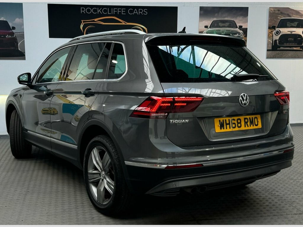 Volkswagen Tiguan 2.0 TDI SEL SUV 5dr Diesel DSG 4Motion Euro 6 (s/s) (190 ps) Registration: WH68RMO | Mileage: 53,000 | Colour: Grey | Full Service History | Panoramic Roof Rockcliffe Cars are delighted to present this stunning Volkswagen Tiguan 2.0 TDI SEL DSG 4Motion, finished in elegant Grey and boasting only 53,000 miles from new. This premium SUV combines practicality, performance, and style, making it the perfect choice for families and drivers who demand comfort and capability in equal measure. Powered by the refined 2.0 TDI engine producing 190 ps, paired with the smooth DSG automatic gearbox and Volkswagen's intelligent 4Motion all-wheel-drive system, this Tiguan delivers excellent performance, assured handling, and efficiency. Fully Euro 6 compliant, it's both powerful and environmentally conscious. This well-cared-for example comes with full service history, ensuring peace of mind for the next owner. Key Features: 190 ps 2.0 TDI Diesel Engine – strong, efficient, and reliable DSG Automatic Gearbox – smooth and effortless driving experience 4Motion All-Wheel Drive – enhanced traction and stability in all conditions SEL Specification – premium trim with excellent comfort and technology Panoramic Glass Sunroof – floods the cabin with natural light and adds to the premium feel 53,000 miles only – low mileage example with full service history Interior & Comfort: Step inside and you'll be greeted by a sp 12V Socket - Luggage Compartment, 12V Socket in Centre Console in Storage , 12V Socket on Rear of Front Centre Armre, 18 Degree Angle of Approach, 19in Alloy Wheels - Victoria, 4MOTION Active Control, ABS - Anti-Lock Braking System, Active Bonnet, Active Info Display, Adaptive Cruise Control, Airbags, Alarm with Interior Protection with Deac, Ambient Lighting Pack, Automatic Coming-Leaving Home Lighting F, Automatic Dimming Rear View Mirror, Automatic Hazard Lights Activation Under, Black Grained Lower Door Protectors with, Body Coloured Bumpers and Door Handles, Body-Coloured Door Mirrors with Integrat, Car-Net App Connect, Car-Net Guide and Inform - 3 Year Subscr, Car-Net Security and Serv