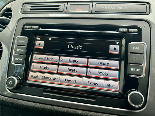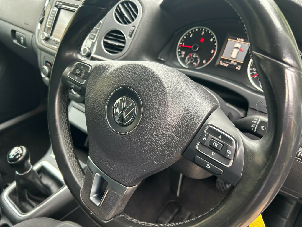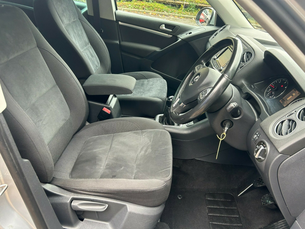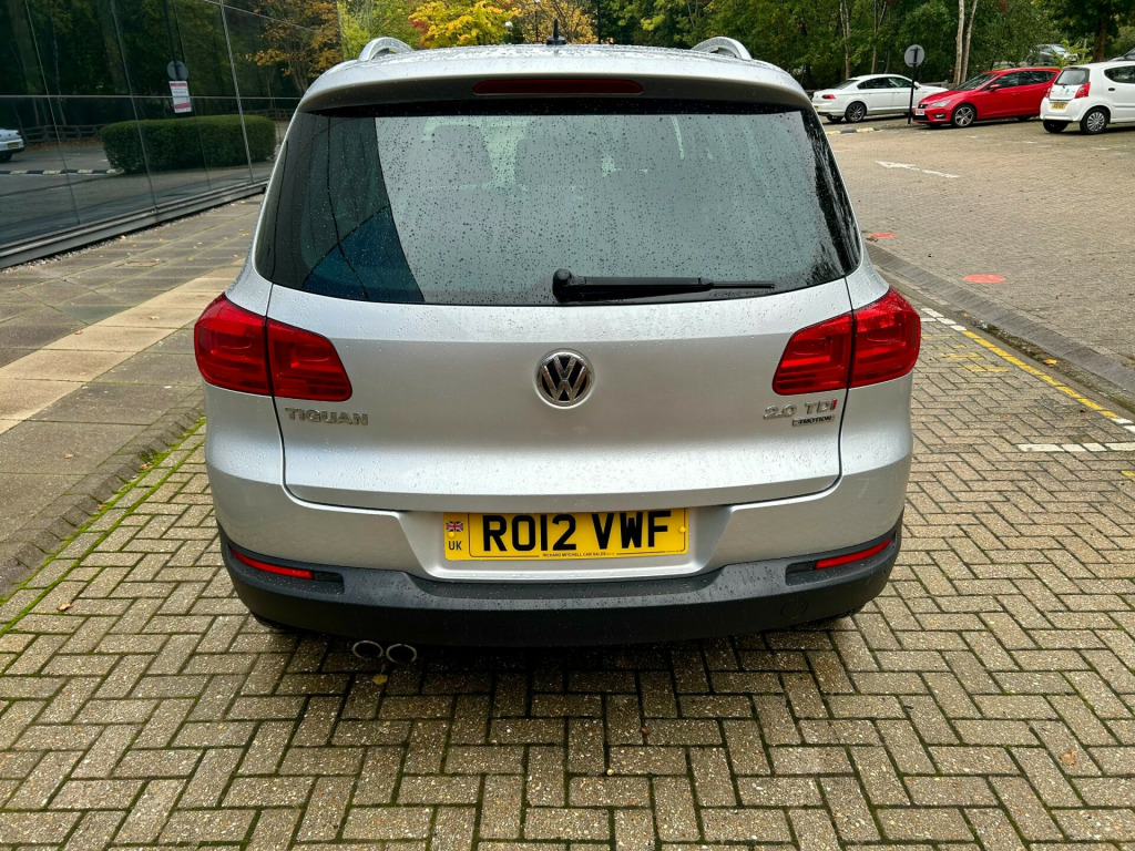 4X4, 4 MOTION, 6 SPEED MANUAL, AIR CONDITIONING, BLUETOOTH, DAB, ISOFIX & MORE. MOT UNTIL AUGUST 2026.This 2012 Volkswagen Tiguan 2.0 TDI Sport SUV with a mileage of 107486 miles is a reliable and spacious diesel vehicle perfect for families or daily commutes. With an MOT valid until 31/08/2026, this 4WD Euro 5 car comes with 5 seats and 5 doors, providing ample room and comfort for all passengers. Equipped with features such as a 6CD autochanger, Bluetooth telephone preparation, Air conditioning, CD Multichanger, Climate control, Cloth seat trim, Front fog lights, Sports seats, and 12V sockets in the centre console and luggage compartment, this SUV offers convenience and entertainment for those on the go. Don't miss out on the opportunity to own this dependable and well-equipped vehicle. BY APPOINTMENT ONLY! v socket - centre console, 12v socket - luggage compartment, 6cd autochanger - dash mounted, aux-in socket, bluetooth telephone preparation, dab+ - digital radio reception, rcd 510 touch screen radio system, sd card reader, speakers x8, 18 degree front module, driver alert system, fatigue detection system, flat tyre indicator, multifunction computer - highline, power assisted steering - speed sensitive, suspension - sports - not lowered, tyre pressure monitoring system - electronic, 18in alloy wheels - sierra, anti-theft wheel bolts, body coloured bumpers and door handles, body-coloured door mirrors with integrated indicators, chrome trimmed front air intake grille surround, door mirrors - electrically adjustable and heated, electric windows - front and rear, heated rear window, heated rear windscreen, radiator grille - black with chrome louvres, roof rails - chrome plated, side window surrounds - chrome, side and rear protection pack - black with chrome-plated insert, spare wheel - space saver steel, tinted glass - heat insulating rear 65 percent light absorbing from b pillar backwards, wheel arch protection, abs - anti-lock braking system, asr - anti slip regulation, airbags - curtain, airbags - driver, airbags - front passenger, airbags - front passenger with deactivation switch, airbags - front seat side impact, alarm with interior protection, central locking - remote with 2 remote keys, differential lock - electronic, ebd - electronic brake pressure distribution, esp - electronic stability programme, electronic engine immobiliser, electronic parking brake with auto hold function, height-adjustable front three-point seat belts with tensioners, isofix child seat preparation for 2 rear seats, rear wash wipe with intermittent wipe, rigid safety cell with front and rear crumple zones, seatbelt reminder, tcs - traction control system, warning triangle, air conditioning - climatic semi-automatic control, air vent surrounds - steel finish, armrest - front centre with storage compartment, automatic dimming rear view mirror, carpet mats - front and rear, cup holders - front and rear, cup holders - rear x2, dashboard and centre console - anthracite metallic, drivers seat height adjustment, folding front seat backrest, folding table on back of front seats, footwell illumination - front, front seat back storage pockets, front sports seats, glovebox - cooled and lockable, head restraints - front whiplash optimised, height and reach adjustable steering wheel, instrument lighting - white adjustable panel illumination, interior light delay, leather trimmed three-spoke multifunction steering wheel, leather trimmed three-spoke steering wheel and gear knob, load-through provision, luggage compartment cover - removable, luggage compartment light, luggage compatrment - load lashing points x5, rain sensor, reading lights - front x2, seats - front sport with lumbar adjustment, seats - height adjustment - front passenger, seats - split folding rear backrests 60-40 - sliding and reclining, silver metallic decorative inserts in door panels, split folding rear backrests 60-40, steering wheel - multifunction, storage compartment in drivers door for 1.0 litre bottle, storage compartment in passengers door for 1.5 litre bottle, storage compartment in roof console, storage tray in centre console, storage tray on dashboard, sun visors with vanity mirrors, three rear head restraints, two rear air vents and cup holders, under seat drawers - front, windscreen wipers with intermittent wipe and 4 position delay, front fog lights, headlights - coming-leaving home function, headlights - dusk sensor - automatic driving lights, headlights - halogen clear - range adjustable, high level 3rd brake light, lights on warning buzzer, static cornering function