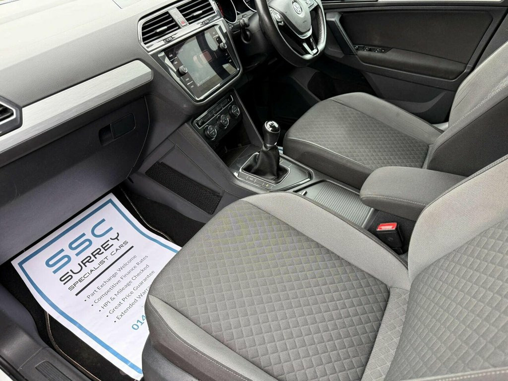 Surrey Specialist Cars are proud to present our lovely Volkswagen Tiguan 2.0 Tiguan SE Nav TDI 5dr, a sleek and stylish SUV that is sure to turn heads on the road. With only one previous owner, this well-maintained vehicle is ready to take on any adventure. Finished in a stunning White colour, the Volkswagen Tiguan exudes sophistication and elegance. Its spacious interior offers comfort and convenience, making every journey a pleasure. Equipped with advanced navigation technology, you'll never have to worry about getting lost again. Whether you're cruising through the city streets or exploring the great outdoors, the Volkswagen Tiguan is the perfect companion. Don't miss out on the opportunity to own this exceptional vehicle. Visit us today and experience the thrill of driving a Volkswagen Tiguan for yourself. 12V Socket - Luggage Compartment, 12V Socket in Centre Console in Storage , 12V Socket on Rear of Front Centre Armre, 18 Degree Angle of Approach, 18in Alloy Wheels - Patagonia, ABS - Anti-Lock Braking System, Active Bonnet, Adaptive Cruise Control, Airbags, Alarm with Interior Protection with Deac, Automatic Coming-Leaving Home Lighting F, Automatic Dimming Rear View Mirror, Automatic Hazard Lights Activation Under, Black Grained Lower Door Protectors with, Body Coloured Bumpers and Door Handles, Body-Coloured Door Mirrors with Integrat, Car-Net App Connect, Car-Net Guide and Inform (3 Year Subscri, Carpet Mats - Front and Rear, Chrome Side Window Surrounds, Chrome Trim on Radiator Grille -