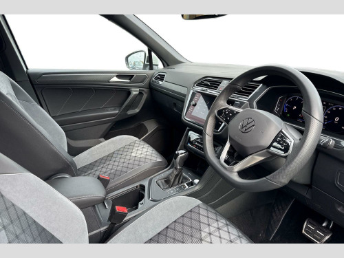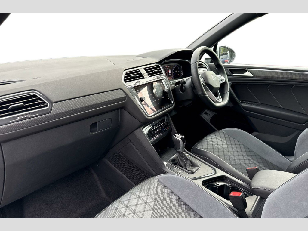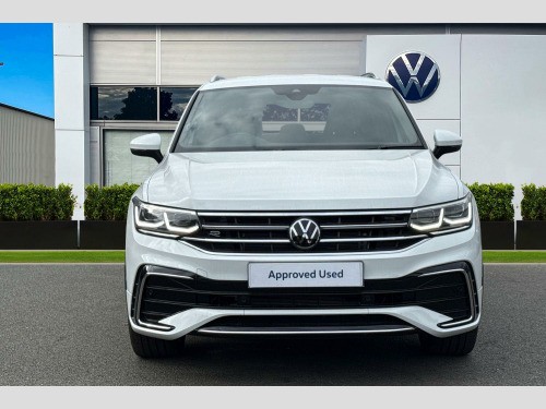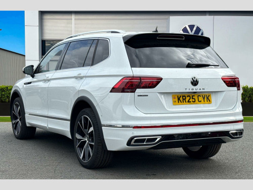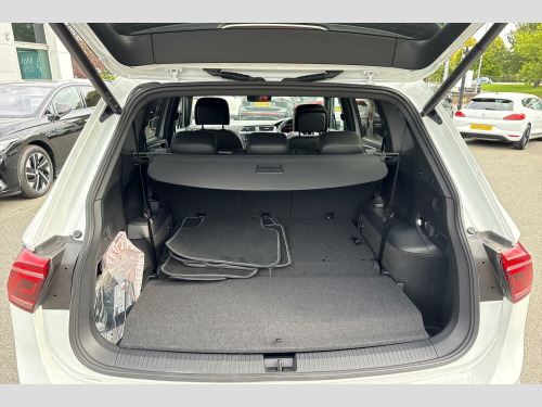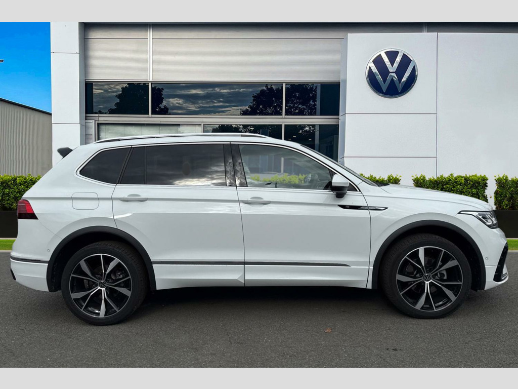 Rear View Camera, Towbar - Swivelling, Winter Pack inc Heated Outer Rear Seats, Rear view camera, Winter pack including heated outer rear seats - Tiguan Allspace, Tow Bar, Rain sensor, Rear wiper, Front wheel drive, Chrome mouldings on side window, Exterior badge deletion, Rear side wing doors, Rear spoiler in R style, Silver roof rails, Automatic headlight control system, Coming/leaving home lighting function, Rear fog light, Third brake light, ABS+EBD+Brake assist, Electronic parking brake, Electronic Stability Control (ESC) inc EDL (Electronic Differential Lock) and ASR (Traction Control), Rear disc brakes, Adaptive cruise control, Advanced driver attention and drowsiness monitor, Driver profile selection, Lane change assist, Lane keeping system Lane Assist, Multifunction front facing camera, Progressive steering, Auto dimming interior rear view mirror, 3 point seat belt for centre rear seat, 3 rear three point seatbelts, Driver and front passenger safety-optimised head restraints, Driver's and front passenger's airbag with front passenger's airbag deactivation switch, Height adjustable front 3 point seatbelts + pretensioners, Manual rear child locks, Pedestrian monitoring, Side airbag in front and rear with curtain airbag, Two tone horn, Warning buzzer for seatbelts if unfastened, Front + rear carpet mats, Air Care Climatronic 3 zone automatic climate control with enhanced air filter and controls in the rear, 12-volt outlet in centre console rear and luggage compartment, 12V socket in centre console, Black roof lining, Door and side trim panel with leatherette insert, Drawers under front seats, Front centre armrest, Illuminated scuff plates, Leather gearshift handle, Leather wrapped multi function sports steering wheel with touch control and shifting paddles, Stainless steel pedals, Front footwell illumination, LED interior light with switch off delay/dimmer and 2 front/rear LED reading lights, Sun visors with illuminated vanity mirrors, App-Connect, Mobile phone interface comfort with inductive charging feature, 2 USB-C ports in the front, 1 USB-C charging socket on the center console in the rear, DAB Digital radio, Diversity antenna for FM reception, Electric boot lid, Digital cockpit pro, eCall emergency call service, Speedo and rev counter, electronic odometer, trip, service interval display and exterior temperature gauge, Diesel particulate filter, Start-stop system with battery regeneration (recuperation - energy recovery during braking), Ambience pack - Tiguan Allspace R Line, Driver assistance plus package - Tiguan Allspace, Park assist pack - Tiguan Allspace, 3 head restraints in rear, 3 individual folding 2nd row seats, 3rd row 2 individual seats, Driver + front passenger lumbar support, Driver and front passenger seat height adjustment, Foldable front passenger seat backrest, ISOFIX anchorage points for mounting 2 child seats on rear seats and i-Size child seats, Top comfort sports seats in front with 'R' Logo, Anti theft alarm system with interior monitoring, backup horn and towing protection, Anti-theft wheel bolts, Remote central locking with 2 remote folding keys