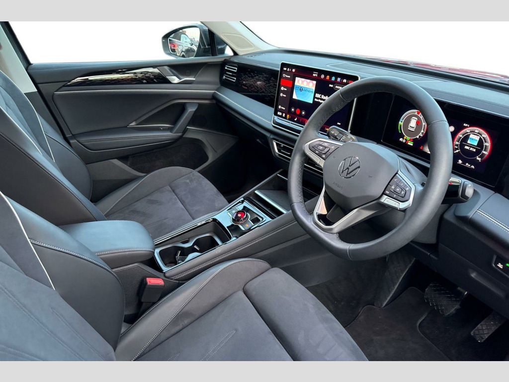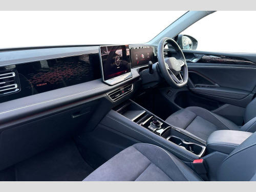 Heat insulating glass in side and rear windows, Heated rear window, Heated windscreen washer jets, Laminated safety glass from B-pillar backwards 90% tinted, Laminated safety glass windshield, Rain sensor windscreen wipers, Rear wiper, Adaptive chassis control DCC pro includes driving mode selection, Front shock absorption, Front wheel drive, Rear shock absorption, Air intake with Chrome trim, Body colored bumpers in R-Line style, Body coloured door handles, Chrome moldings on the side windows, Illuminated door handle recesses, Rear side wing doors, Silver roof rails, Ambient lighting with logo projection, Automatic headlight control system, Coming/leaving home lighting function, High level 3rd brake light, Illuminated lightline between headlamps, Rear fog light on one side, reversing light on both sides, Electronic parking brake with auto hold, Front disc brakes, Hill start assist, Rear disc brakes, Adaptive cruise control (ACC), Advanced driver attention and drowsiness monitor, Comfort drive travel assist, lane keeping system, lane assist and emergency assist, Dynamic road sign display, Front Assist - Autonomous emergency braking with pedestrian and cyclist monitoring, Lane change system, Side assist, Rear traffic alert and Exit warning system, Multifunction front facing camera, Oncoming vehicle braking when turning including swerve support, Park assist pro with park distance control (Remote park assist), Power assisted steering with speed sensitive, Auto dimming interior rear view mirror, Body-coloured exterior mirror housings, 3 point seat belt for centre rear seats, 3 Point seat belts in front with pretensioners, 3 point seatbelts in outer rear with ECE label, Driver and front passenger airbag with front passenger airbag deactivation, Front and rear curtain airbags, Front and rear side airbags, Front centre airbag, Manual child proof rear door locks, Two tone horn, Warning triangle, Carpet mats, front and rear, Air care climatronic 3 zone air conditioning system with rear air conditioning control panel, 12V outlet in center console rear and in luggage compartment, 12V socket in centre console, Centre console with illuminated storage compartment with sliding cover and two drinks holders, Ceramique headlining, Chrome elements on the mirror switch and power window switches and door pulls, Door and side trim panel with leatherette insert, Door sill protectors, Front centre armrest, Variable luggage compartment floor, Interior ambient lighting with 30 colour options, Sun visors with illuminated vanity mirrors, Bluetooth mobile phone interface, E-Sim card for online connectivity, Wireless App-Connect, Digital radio reception (DAB), Diversity antenna for FM reception, Car2X technology, Start/stop system with regenerative braking, Digital Cockpit Pro - 10.25" high resolution dash display screen with customisable menus and information, eCall emergency call service, Warning signal and warning light for front and rear seatbelts not fastened, Decorative inserts Cross in dash and front door panels, Interior door handle in matte chrome, Soul instrument panel, 3 bench rear seats in 2nd row, ISOFIX anchors for child seats on outer rear seats and front passenger seat compatible with i-Size, Mechanical rear seat release, Power adjustable lumbar support in front, Rear bench seat, split folding, longitudinally movable and folding with load-through hatch and centre armrest, Safety optimised front head restraints, Single front passenger seat, Sports comfort seats in front, Three rear head restraints, Comfort package incl. Memory feature for Park assist and Safelock - Tiguan, Driver assistance package - Tiguan, Anti theft wheel bolts, Charging cable Mode 3 Type 2 / 3 (16A), Tool kit for tyre mobility set, Tyre mobility kit including compressor and sealing foam