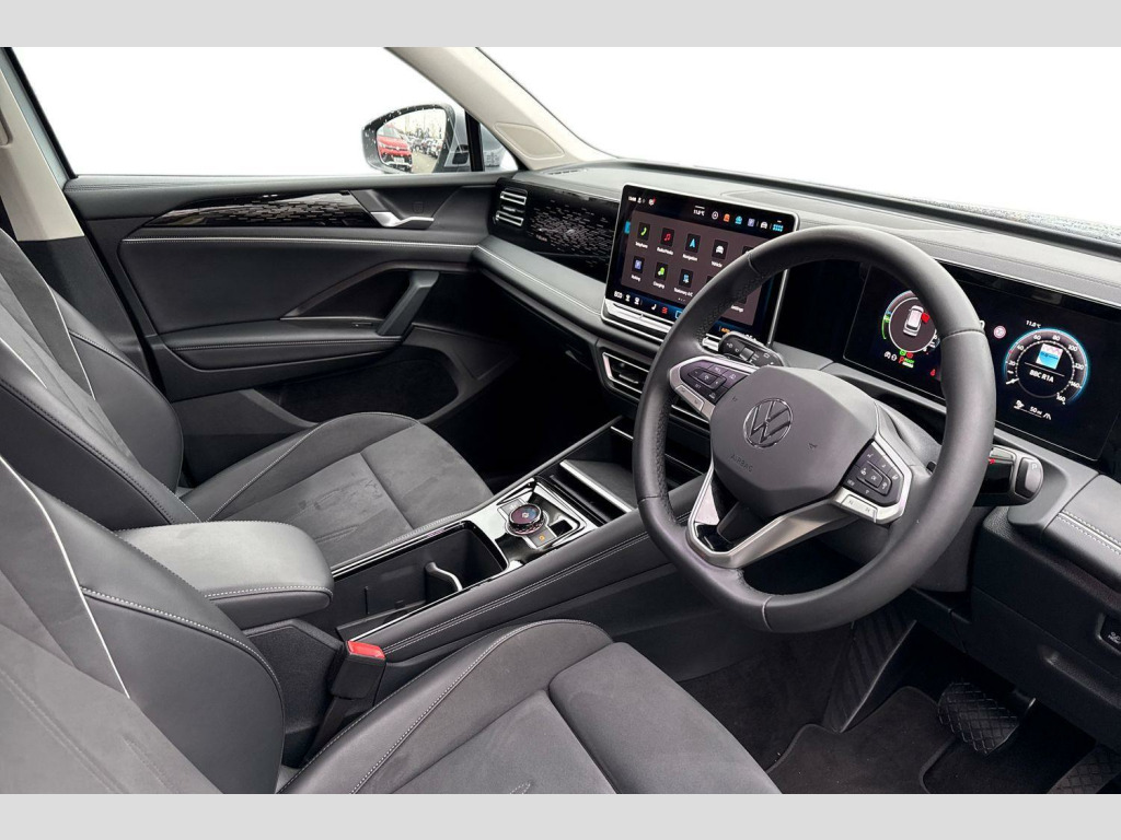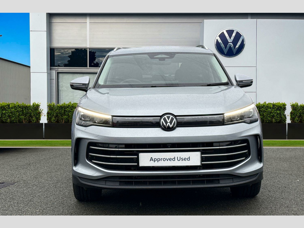 Heat insulating glass in side and rear windows, Heated rear window, Heated windscreen washer jets, Laminated safety glass from B-pillar backwards 90% tinted, Laminated safety glass windshield, Rain sensor windscreen wipers, Rear wiper, Adaptive chassis control DCC pro includes driving mode selection, Front shock absorption, Front wheel drive, Rear shock absorption, Air intake with Chrome trim, Body colored bumpers in R-Line style, Body coloured door handles, Chrome moldings on the side windows, Illuminated door handle recesses, Rear side wing doors, Silver roof rails, Ambient lighting with logo projection, Automatic headlight control system, Coming/leaving home lighting function, High level 3rd brake light, Illuminated lightline between headlamps, Rear fog light on one side, reversing light on both sides, Electronic parking brake with auto hold, Front disc brakes, Hill start assist, Rear disc brakes, Adaptive cruise control (ACC), Advanced driver attention and drowsiness monitor, Comfort drive travel assist, lane keeping system, lane assist and emergency assist, Dynamic road sign display, Front Assist - Autonomous emergency braking with pedestrian and cyclist monitoring, Lane change system, Side assist, Rear traffic alert and Exit warning system, Multifunction front facing camera, Oncoming vehicle braking when turning including swerve support, Park assist pro with park distance control (Remote park assist), Power assisted steering with speed sensitive, Auto dimming interior rear view mirror, Body-coloured exterior mirror housings, 3 point seat belt for centre rear seats, 3 Point seat belts in front with pretensioners, 3 point seatbelts in outer rear with ECE label, Driver and front passenger airbag with front passenger airbag deactivation, Front and rear curtain airbags, Front and rear side airbags, Front centre airbag, Manual child proof rear door locks, Two tone horn, Warning triangle, Carpet mats, front and rear, Air care climatronic 3 zone air conditioning system with rear air conditioning control panel, 12V outlet in center console rear and in luggage compartment, 12V socket in centre console, Centre console with illuminated storage compartment with sliding cover and two drinks holders, Ceramique headlining, Chrome elements on the mirror switch and power window switches and door pulls, Door and side trim panel with leatherette insert, Door sill protectors, Front centre armrest, Variable luggage compartment floor, Interior ambient lighting with 30 colour options, Sun visors with illuminated vanity mirrors, Bluetooth mobile phone interface, E-Sim card for online connectivity, Wireless App-Connect, Digital radio reception (DAB), Diversity antenna for FM reception, Car2X technology, Start/stop system with regenerative braking, Digital Cockpit Pro - 10.25" high resolution dash display screen with customisable menus and information, eCall emergency call service, Warning signal and warning light for front and rear seatbelts not fastened, Decorative inserts Cross in dash and front door panels, Interior door handle in matte chrome, Soul instrument panel, 3 bench rear seats in 2nd row, ISOFIX anchors for child seats on outer rear seats and front passenger seat compatible with i-Size, Mechanical rear seat release, Power adjustable lumbar support in front, Rear bench seat, split folding, longitudinally movable and folding with load-through hatch and centre armrest, Safety optimised front head restraints, Single front passenger seat, Sports comfort seats in front, Three rear head restraints, Comfort package incl. Memory feature for Park assist and Safelock - Tiguan, Driver assistance package - Tiguan, Anti theft wheel bolts, Charging cable Mode 3 Type 2 / 3 (16A), Tool kit for tyre mobility set, Tyre mobility kit including compressor and sealing foam