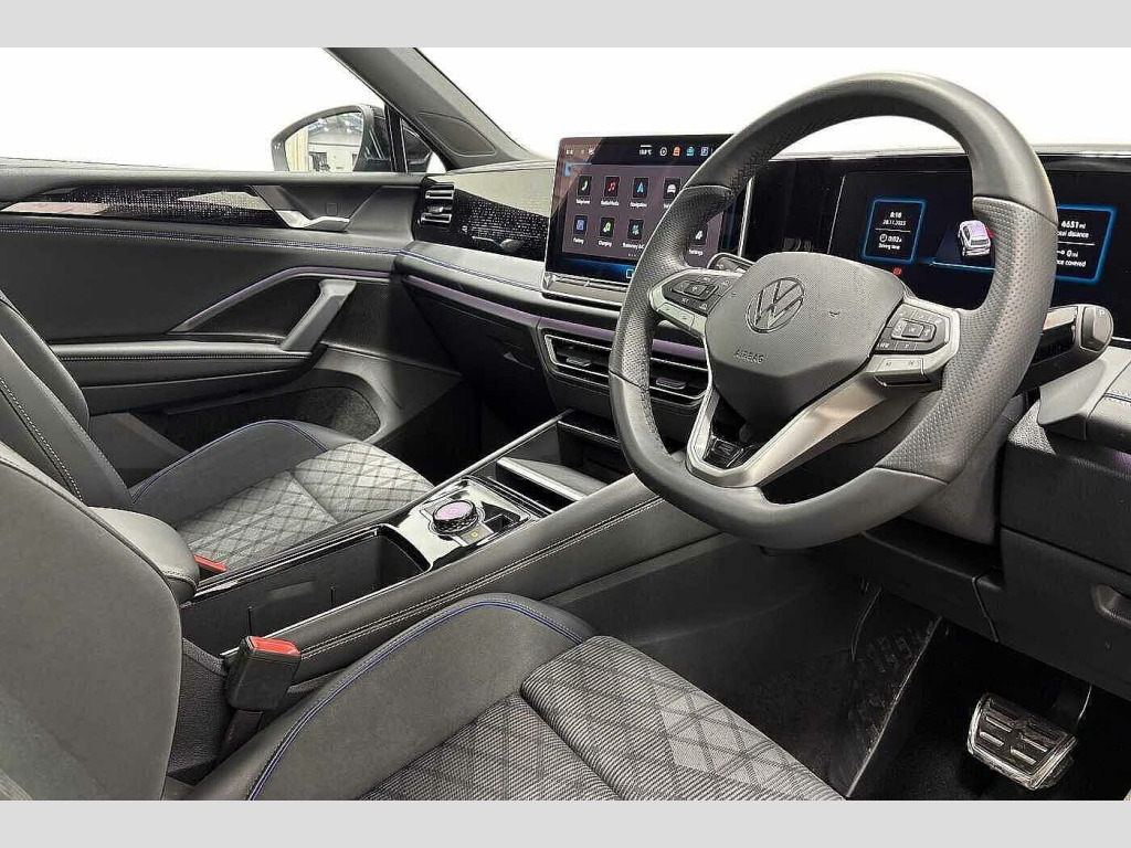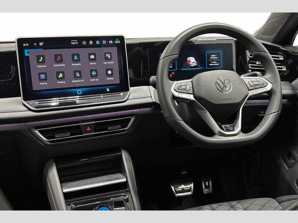 The Tiguan R-Line offers a generous boot space, making it a practical choice for families and those who need ample room for luggage or shopping. The combination of its plug in hybrid technology, R-Line styling, and the assurance of manufacturer approval sets this Tiguan apart, offering a refined and efficient driving experience that is hard to match. Its low mileage and single owner history further underscore its excellent condition and desirability. Tilting and Sliding Panoramic Sunroof with Rear Panoramic Sunroof, Heat insulating glass in side and rear windows, Heated rear window, Heated windscreen washer jets, Laminated safety glass windshield, Rain sensor windscreen wipers, Rear wiper, Adaptive chassis control DCC pro includes driving mode selection, Front shock absorption, Front wheel drive, Rear shock absorption, Air intake with Chrome trim, Body coloured door handles, Chrome moldings on the side windows, Illuminated door handle recesses, Rear side wing doors, Ambient lighting with logo projection, Automatic headlight control system, Coming/leaving home lighting function, High level 3rd brake light, Illuminated lightline between headlamps, Rear fog light on one side, reversing light on both sides, Electronic parking brake with auto hold, Front disc brakes, Rear disc brakes, Adaptive cruise control (ACC), Advanced driver attention and drowsiness monitor, Dynamic road sign display, Front Assist - Autonomous emergency braking with pedestrian and cyclist monitoring, Lane change system, Side assist, Rear traffic alert and Exit warning system, Lane keeping system Lane Assist, Multifunction front facing camera, Oncoming vehicle braking when turning including swerve support, Park assistance plus with front and rear parking sensors, Power assisted steering with speed sensitive, Auto dimming interior rear view mirror, 3 point seat belt for centre rear seats, 3 Point seat belts in front with pretensioners, 3 point seatbelts in outer rear with ECE label, Driver and front passenger airbag with front passenger airbag deactivation, Front and rear curtain airbags, Front and rear side airbags, Front centre airbag, Manual child proof rear door locks, Two tone horn, Warning triangle, Carpet mats, front and rear, Air care climatronic 3 zone air conditioning system with rear air conditioning control panel, 12V outlet in center console rear and in luggage compartment, 12V socket in centre console, Black roof lining, Brushed stainless steel pedals, Centre console with illuminated storage compartment with sliding cover and two drinks holders, Chrome elements on the mirror switch and power window switches and door pulls, Door and side trim panel with leatherette insert, Door sill protectors, Front centre armrest, Soul headlining, Variable luggage compartment floor, Interior ambient lighting with 30 colour options, Sun visors with illuminated vanity mirrors, Bluetooth mobile phone interface, E-Sim card for online connectivity, Wireless App-Connect, Digital radio reception (DAB), Diversity antenna for FM reception, Car2X technology, Start/stop system with regenerative braking, Digital Cockpit Pro - 10.25" high resolution dash display screen with customisable menus and information, eCall emergency call service, Warning signal and warning light for front and rear seatbelts not fastened, Decorative inserts, Interior door handle in matte chrome, Soul instrument panel, 3 bench rear seats in 2nd row, ISOFIX anchors for child seats on outer rear seats and front passenger seat compatible with i-Size, Mechanical rear seat release, Power adjustable lumbar support in front, Rear bench seat, split folding, longitudinally movable and folding with load-through hatch and centre armrest, Single front passenger seat, Sports comfort seats in front, Three rear head restraints, Anti theft wheel bolts, Charging cable Mode 3 Type 2 / 3 (16A), Tool kit for tyre mobility set, Tyre mobility kit including compressor and sealing foam