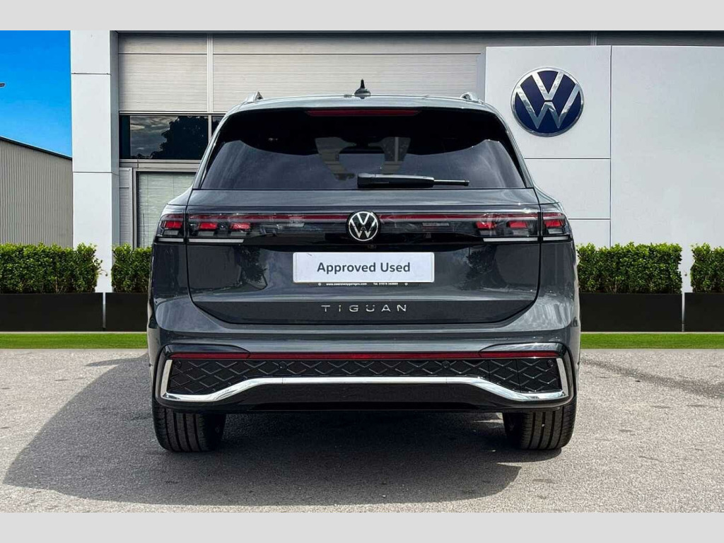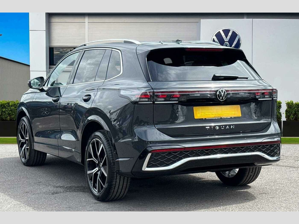 Winter Pack - Heated Outer Rear Seats, Winter pack with heated outer rear seats 1 - Tiguan R-Line/Black Edition, Solid - Urano grey, Greyson sports cloth - Soul, Heat insulating glass in side and rear windows, Heated rear window, Heated windscreen washer jets, Laminated safety glass windshield, Rain sensor windscreen wipers, Rear wiper, Front wheel drive, Air intake with Chrome trim, Body coloured door handles, Chrome moldings on the side windows, Illuminated door handle recesses, Rear side wing doors, Ambient lighting with logo projection, Automatic headlight control system, Coming/leaving home lighting function, High level 3rd brake light, Illuminated lightline between headlamps, LED Day time running light, Rear fog light on one side, reversing light on both sides, Electronic parking brake with auto hold, Front disc brakes, Rear disc brakes, Adaptive cruise control (ACC), Advanced driver attention and drowsiness monitor, Dynamic road sign display, Front Assist - Autonomous emergency braking with pedestrian and cyclist monitoring, Lane change system, Side assist, Rear traffic alert and Exit warning system, Lane keeping system Lane Assist, Oncoming vehicle braking when turning including swerve support, Park assistance plus with front and rear parking sensors, Power assisted steering with speed sensitive, Auto dimming interior rear view mirror, Puddle lights and reverse activated passengers door mirror, 3 point seat belt for centre rear seats, 3 Point seat belts in front with pretensioners, 3 point seatbelts in outer rear with ECE label, Driver and front passenger airbag with front passenger airbag deactivation, Front and rear curtain airbags, Front and rear side airbags, Front centre airbag, Manual child proof rear door locks, Two tone horn, Warning triangle, Carpet mats, front and rear, Air care climatronic 3 zone air conditioning system with rear air conditioning control panel, 12V outlet in center console rear and in luggage compartment, 12V socket in centre console, Black roof lining, Brushed stainless steel pedals, Centre console with illuminated storage compartment with sliding cover and two drinks holders, Chrome elements on the mirror switch and power window switches and door pulls, Door and side trim panel with leatherette insert, Door sill protectors, Front centre armrest, Soul headlining, Variable luggage compartment floor, Interior ambient lighting with 30 colour options, Sun visors with illuminated vanity mirrors, Bluetooth mobile phone interface, E-Sim card for online connectivity, Wireless App-Connect, Digital radio reception (DAB), Diversity antenna for FM reception, Car2X technology, Start/stop system with regenerative braking, Digital Cockpit Pro - 10.25" high resolution dash display screen with customisable menus and information, eCall emergency call service, Warning signal and warning light for front and rear seatbelts not fastened, Decorative inserts, Interior door handle in matte chrome, Soul instrument panel, 3 bench rear seats in 2nd row, ISOFIX anchors for child seats on outer rear seats and front passenger seat compatible with i-Size, Mechanical rear seat release, Power adjustable lumbar support in front, Rear bench seat, split folding, longitudinally movable and folding with load-through hatch and centre armrest, Single front passenger seat, Sports comfort seats in front, Three rear head restraints