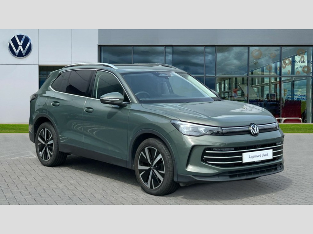 Volkswagen Tiguan 1.5 eTSI 150 Elegance Launch Edition 5dr DSG Adaptive cruise control ACC including speed limiter, Advanced driver attention and drowsiness monitor, App-Connect incl. App-Connect Wireless for Apple CarPlay and Android Auto, Area view camera [PAV], Bluetooth phone integration system, Comfort drive travel assist, Digital Cockpit Pro - 10.25" high resolution dash display screen with customisable menus and information, Dynamic road sign display, E-Sim card for online connectivity, eCall emergency call service, eCall emergency call system, Extended safety system (proactive passenger protection system), Full electric tailgate operation, Head up Display, Inductive smartphone charging without external antenna connection, Lane change system, Side assist, Rear traffic alert and Exit warning system, Lane keeping system Lane Assist, Multifunction front facing camera, Navigation system, Oncoming vehicle braking when turning including swerve support, Park assistance plus with front and rear parking sensors, Power assisted steering with speed sensitive, Rear view camera, Rev counter, Service interval indicator, Speed limit display, Start/stop system with regenerative braking, Trip computer, Voice control and enhancer, Warning signal and warning light for front and rear seatbelts not fastened, Wireless App-Connect, Front wheel drive, 15" Infotainment display, 8 Speakers, DAB radio, Diversity antenna for FM reception, Ambient lighting with logo projection, Auto dimming interior rear view mirror, Automatic headlight control system, Body colored bumpers in R-Line style, Body colour door handles, Body coloured door mirrors with integrated indicators, Chrome moldings on the side windows, Coming/leaving home lighting function, Dynamic headlight range control with dynamic cornering light, Exterior mirrors power folding, auto-dimming on drivers side with surround lighting and memory feature, Front and rear electric windows, Heat insulating darkened glass in side and rear windows, Heated windscreen washer jets, High Beam Assist, automatic sensing for switching between dipped and main beam, High level 3rd brake light, High-resolution matrix beam plus digital projection, Highway light, Illuminated door handle recesses, Illuminated lightline between headlamps and illuminated door handle recesses, IQ.Light - HD matrix headlamps with poor weather light, entry and exit lighting, Laminated safety glass from B-pillar backwards 90% tinted, Laminated safety glass windshield, heat and sound insulating, LED rear lights with welcome farewell lights with illuminated Volkswagen Logo, LED separate daytime running light, Rear fog light on one side, reversing light on both sides, Rear side wing doors, Rear wiper, Remote electrically foldable door mirrors, puddle lights and reverse activated passenger's door mirror, Silver roof rails, 12V outlet in center console rear and in luggage compartment, 12V socket in centre console, 2 USB-C ports in the front, 2 USB-C charging sockets on the centre console in rear, charging capacity up to 45 W, 3 bench rear seats in 2nd row, 3 rear headrests, 30 colours options interior ambient lighting, Air Care Climatronic 3 zone automatic climate control with enhanced air filter and controls in the rear, Carpet mats, front and rear, Centre console with illuminated storage compartment with sliding cover and two drinks holders, Door and side trim panel with leatherette insert, Door sill protectors, Drivers seat with manual adjustment of seat travel and height and backrest angle with thigh support longitudinally sliding, Front centre armrest, Front massage seats, Front sports comfort seats, Heated front seats, Heated steering wheel, Height adjustable front seats, ISOFIX anchors for child seats on outer rear seats and front passenger seat. Compatible with i-Size, Leather wrapped multifunction steering wheel with paddle shift, Mechanical rear seat release, Power adjustable lumbar support in front, Rear bench seat asymetrically split folding, longitudinally movable and folding with load-through hatch and center armrest, Safety optimised front head restraints, Single front passenger seat, Sun visors with illuminated vanity mirrors, Variable luggage compartment floor, 3 point seat belt for centre rear seats, 3 Point seat belts in front with pretensioners, 3 point seatbelts in outer rear with ECE label, Autonomous emergency braking front assist with pedestrian and cyclist monitoring, Driver/Front Passenger airbags, Electronic parking brake with auto hold, Front disc brakes, Front passenger airbag deactivation, Manual rear child locks, Rear disc brakes, Two tone horn, Tyre pressure loss indicator, Warning triangle, Anti theft alarm system with interior monitoring, backup horn and towing protection, Anti theft wheel bolts, Central locking system keyless entry, Chrome elements on the mirror switch and power window switches, door pulls interior door handle in matte chrome, Decorative inserts Cross in dash and front door panels, Tool kit for tyre mobility set