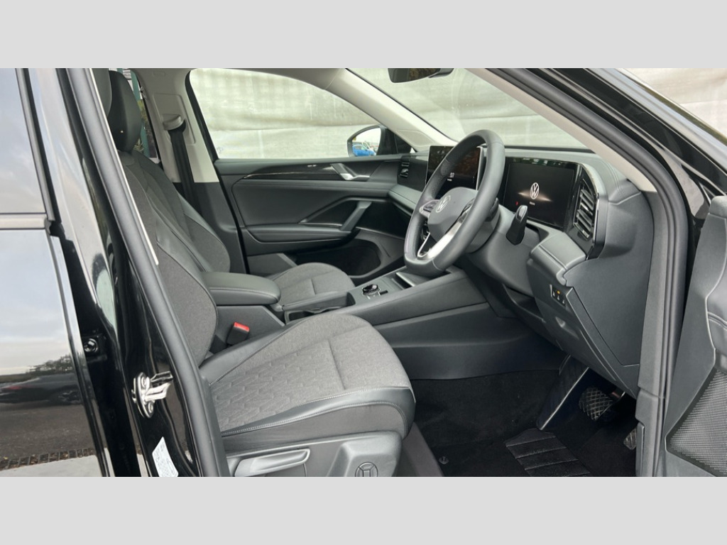 Volkswagen Tiguan 1.5 eTSI 150 Match 5dr DSG Adaptive cruise control (ACC), Advanced driver attention and drowsiness monitor, Bluetooth mobile phone interface, Car2X technology, Digital Cockpit Pro - 10.25" high resolution dash display screen with customisable menus and information, Dynamic road sign display, E-Sim card for online connectivity, eCall emergency call service, Front Assist - Autonomous emergency braking with pedestrian and cyclist monitoring, Lane change system, Side assist, Rear traffic alert and Exit warning system, Lane keeping system Lane Assist, Multifunction front facing camera, Oncoming vehicle braking when turning including swerve support, Park assistance plus with front and rear parking sensors, Power assisted steering with speed sensitive, Start/stop system with regenerative braking, Warning signal and warning light for front and rear seatbelts not fastened, Wireless App-Connect, Front wheel drive, Digital radio reception (DAB), Diversity antenna for FM reception, Ambient lighting with logo projection, Auto dimming interior rear view mirror, Automatic headlight control system, Body coloured bumpers and air intake with chrome trim, Body coloured door handles, Body-coloured exterior mirror housings, Coming/leaving home lighting function, Heat insulating glass in side and rear windows, Heat insulating windshield, Heated rear window, High level 3rd brake light, Illuminated door handle recesses, Illuminated lightline between headlamps, Rain sensor windscreen wipers, Rear fog light on one side, reversing light on both sides, Rear side wing doors, Rear wiper, 12V outlet in center console rear and in luggage compartment, 12V socket in centre console, 3 bench rear seats in 2nd row, Air care climatronic 3 zone air conditioning system with rear air conditioning control panel, Carpet mats, front and rear, Ceramique headlining, Door and side trim panel in foam film and woven fabric, Front centre armrest, ISOFIX anchors for child seats on outer rear seats and front passenger seat compatible with i-Size, Mechanical rear seat release, Power adjustable lumbar support in front, Rear bench seat, split folding, longitudinally movable and folding with load-through hatch and centre armrest, Safety optimised front head restraints, Single front passenger seat, Sun visors with illuminated vanity mirrors, Three rear head restraints, Variable luggage compartment floor, Comfort package incl. Memory feature for Park assist and Safelock - Tiguan, Design package - Tiguan, 3 point seat belt for centre rear seats, 3 Point seat belts in front with pretensioners, 3 point seatbelts in outer rear with ECE label, Driver and front passenger airbag with front passenger airbag deactivation, Electronic parking brake with auto hold, Front and rear curtain airbags, Front and rear side airbags, Front centre airbag, Front disc brakes, Hill start assist, Manual child proof rear door locks, Rear disc brakes, Two tone horn, Warning triangle, Anti theft wheel bolts, Soul instrument panel