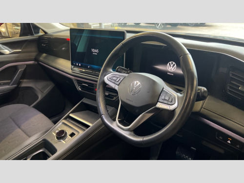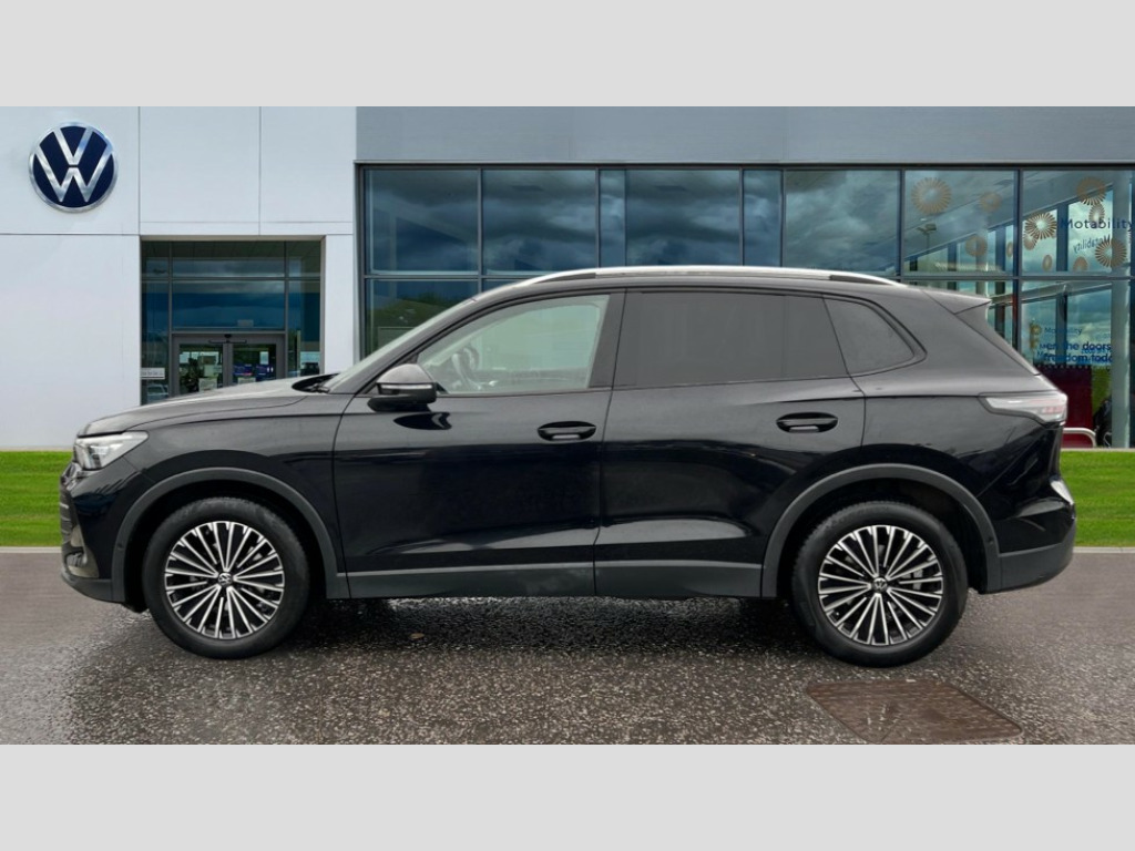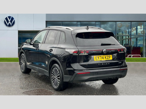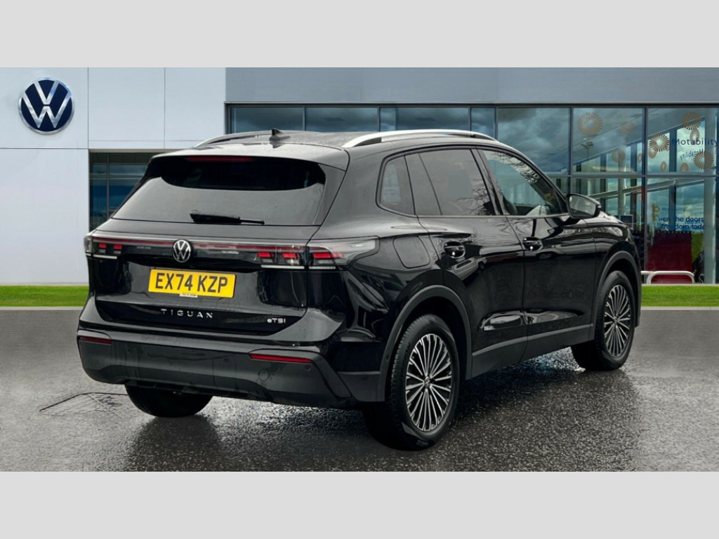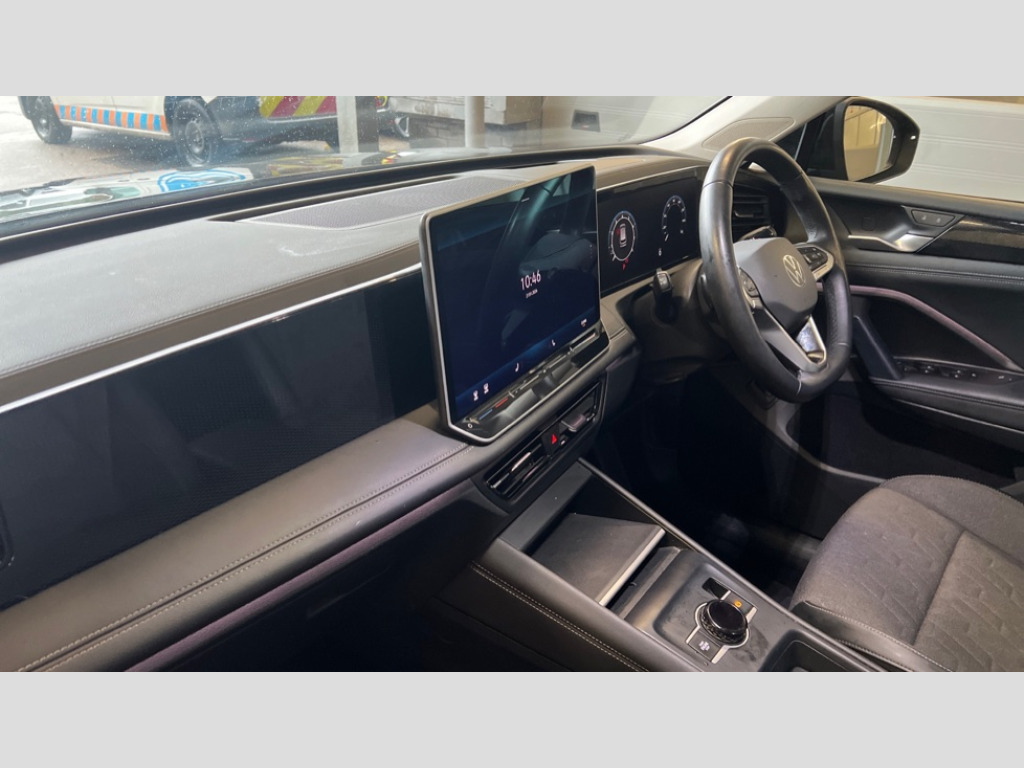 Volkswagen Tiguan 1.5 eTSI 150 Match 5dr DSG Adaptive cruise control (ACC), Advanced driver attention and drowsiness monitor, Bluetooth mobile phone interface, Car2X technology, Digital Cockpit Pro - 10.25" high resolution dash display screen with customisable menus and information, Dynamic road sign display, E-Sim card for online connectivity, eCall emergency call service, Front Assist - Autonomous emergency braking with pedestrian and cyclist monitoring, Lane change system, Side assist, Rear traffic alert and Exit warning system, Lane keeping system Lane Assist, Multifunction front facing camera, Oncoming vehicle braking when turning including swerve support, Park assistance plus with front and rear parking sensors, Power assisted steering with speed sensitive, Start/stop system with regenerative braking, Warning signal and warning light for front and rear seatbelts not fastened, Wireless App-Connect, Front wheel drive, Digital radio reception (DAB), Diversity antenna for FM reception, Ambient lighting with logo projection, Auto dimming interior rear view mirror, Automatic headlight control system, Body coloured bumpers and air intake with chrome trim, Body coloured door handles, Body-coloured exterior mirror housings, Coming/leaving home lighting function, Heat insulating glass in side and rear windows, Heat insulating windshield, Heated rear window, High level 3rd brake light, Illuminated door handle recesses, Illuminated lightline between headlamps, Rain sensor windscreen wipers, Rear fog light on one side, reversing light on both sides, Rear side wing doors, Rear wiper, 12V outlet in center console rear and in luggage compartment, 12V socket in centre console, 3 bench rear seats in 2nd row, Air care climatronic 3 zone air conditioning system with rear air conditioning control panel, Carpet mats, front and rear, Ceramique headlining, Door and side trim panel in foam film and woven fabric, Front centre armrest, ISOFIX anchors for child seats on outer rear seats and front passenger seat compatible with i-Size, Mechanical rear seat release, Power adjustable lumbar support in front, Rear bench seat, split folding, longitudinally movable and folding with load-through hatch and centre armrest, Safety optimised front head restraints, Single front passenger seat, Sun visors with illuminated vanity mirrors, Three rear head restraints, Variable luggage compartment floor, Comfort package incl. Memory feature for Park assist and Safelock - Tiguan, Design package - Tiguan, 3 point seat belt for centre rear seats, 3 Point seat belts in front with pretensioners, 3 point seatbelts in outer rear with ECE label, Driver and front passenger airbag with front passenger airbag deactivation, Electronic parking brake with auto hold, Front and rear curtain airbags, Front and rear side airbags, Front centre airbag, Front disc brakes, Hill start assist, Manual child proof rear door locks, Rear disc brakes, Two tone horn, Warning triangle, Anti theft wheel bolts, Soul instrument panel