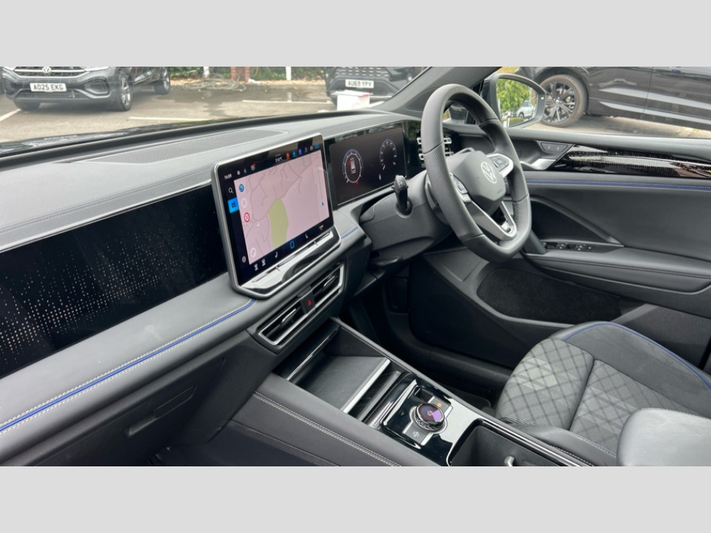 Volkswagen Tiguan 1.5 eTSI 150 R-Line 5dr DSG Adaptive cruise control (ACC), Advanced driver attention and drowsiness monitor, Bluetooth mobile phone interface, Digital Cockpit Pro - 10.25" high resolution dash display screen with customisable menus and information, Dynamic road sign display, E-Sim card for online connectivity, eCall emergency call service, Front Assist - Autonomous emergency braking with pedestrian and cyclist monitoring, Lane change system, Side assist, Rear traffic alert and Exit warning system, Lane keeping system Lane Assist, Multifunction front facing camera, Oncoming vehicle braking when turning including swerve support, Park assistance plus with front and rear parking sensors, Power assisted steering with speed sensitive, Start/stop system with regenerative braking, Warning signal and warning light for front and rear seatbelts not fastened, Wireless App-Connect, Front wheel drive, Digital radio reception (DAB), Diversity antenna for FM reception, Air intake with Chrome trim, Ambient lighting with logo projection, Auto dimming interior rear view mirror, Automatic headlight control system, Body coloured door handles, Chrome moldings on the side windows, Coming/leaving home lighting function, Heat insulating glass in side and rear windows, Heated rear window, Heated windscreen washer jets, High level 3rd brake light, Illuminated door handle recesses, Illuminated lightline between headlamps, Laminated safety glass windshield, Rain sensor windscreen wipers, Rear fog light on one side, reversing light on both sides, Rear side wing doors, Rear wiper, 12V outlet in center console rear and in luggage compartment, 12V socket in centre console, 3 bench rear seats in 2nd row, Air care climatronic 3 zone air conditioning system with rear air conditioning control panel, Black roof lining, Brushed stainless steel pedals, Carpet mats, front and rear, Centre console with illuminated storage compartment with sliding cover and two drinks holders, Chrome elements on the mirror switch and power window switches and door pulls, Door and side trim panel with leatherette insert, Door sill protectors, Front centre armrest, Front integrated head restraints, Interior ambient lighting with 30 colour options, ISOFIX anchors for child seats on outer rear seats and front passenger seat compatible with i-Size, Mechanical rear seat release, Power adjustable lumbar support in front, Rear bench seat, split folding, longitudinally movable and folding with load-through hatch and centre armrest, Single front passenger seat, Soul headlining, Sports comfort seats in front, Sun visors with illuminated vanity mirrors, Three rear head restraints, Variable luggage compartment floor, 3 point seat belt for centre rear seats, 3 Point seat belts in front with pretensioners, 3 point seatbelts in outer rear with ECE label, Driver and front passenger airbag with front passenger airbag deactivation, Electronic parking brake with auto hold, Front and rear curtain airbags, Front and rear side airbags, Front centre airbag, Front disc brakes, Manual child proof rear door locks, Rear disc brakes, Two tone horn, Warning triangle, Anti theft wheel bolts, Decorative inserts, Interior door handle in matte chrome, Soul instrument panel