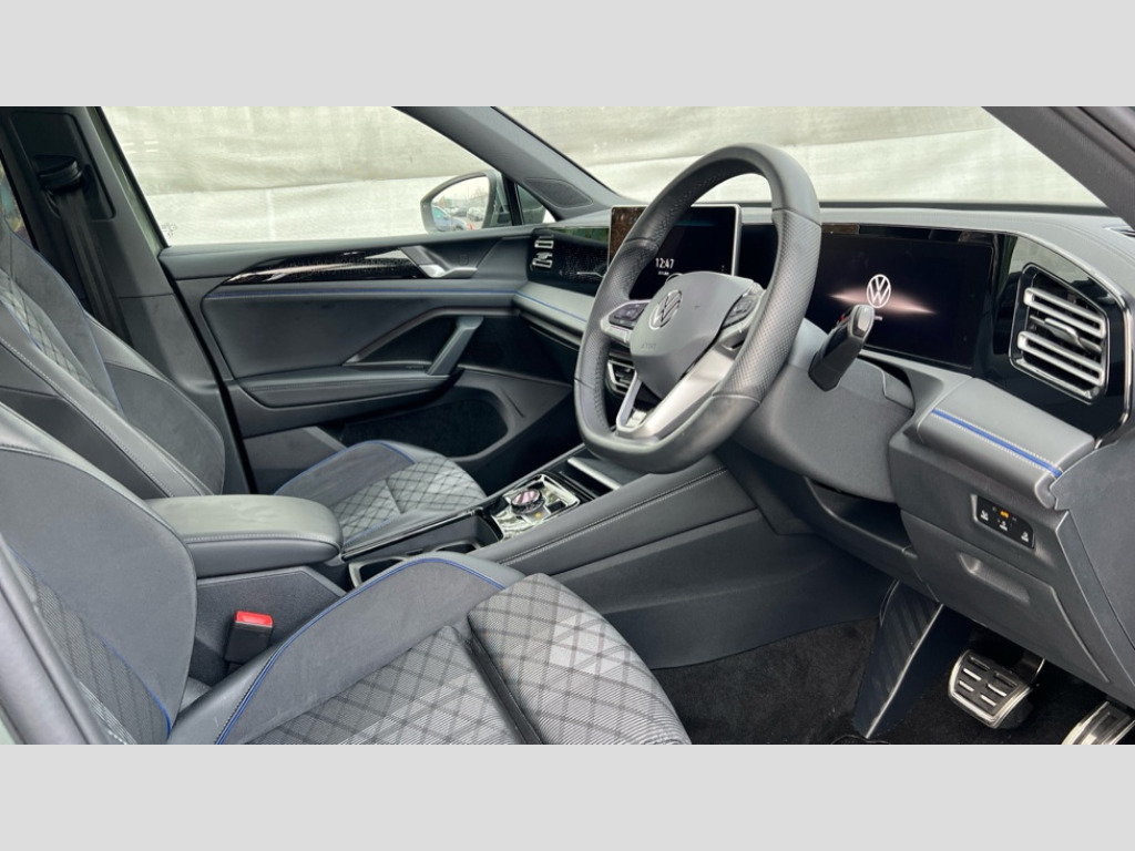 Volkswagen Tiguan 1.5 eTSI 150 R-Line 5dr DSG Adaptive cruise control (ACC), Advanced driver attention and drowsiness monitor, Bluetooth mobile phone interface, Car2X technology, Digital Cockpit Pro - 10.25" high resolution dash display screen with customisable menus and information, Dynamic road sign display, E-Sim card for online connectivity, eCall emergency call service, Front Assist - Autonomous emergency braking with pedestrian and cyclist monitoring, Lane change system, Side assist, Rear traffic alert and Exit warning system, Lane keeping system Lane Assist, Multifunction front facing camera, Oncoming vehicle braking when turning including swerve support, Park assistance plus with front and rear parking sensors, Power assisted steering with speed sensitive, Start/stop system with regenerative braking, Warning signal and warning light for front and rear seatbelts not fastened, Wireless App-Connect, Front wheel drive, Digital radio reception (DAB), Diversity antenna for FM reception, Air intake with Chrome trim, Ambient lighting with logo projection, Auto dimming interior rear view mirror, Automatic headlight control system, Body coloured door handles, Chrome moldings on the side windows, Coming/leaving home lighting function, Heat insulating glass in side and rear windows, Heated rear window, Heated windscreen washer jets, High level 3rd brake light, Illuminated door handle recesses, Illuminated lightline between headlamps, Laminated safety glass windshield, Rain sensor windscreen wipers, Rear fog light on one side, reversing light on both sides, Rear side wing doors, Rear wiper, 12V outlet in center console rear and in luggage compartment, 12V socket in centre console, 3 bench rear seats in 2nd row, Air care climatronic 3 zone air conditioning system with rear air conditioning control panel, Black roof lining, Brushed stainless steel pedals, Carpet mats, front and rear, Centre console with illuminated storage compartment with sliding cover and two drinks holders, Chrome elements on the mirror switch and power window switches and door pulls, Door and side trim panel with leatherette insert, Door sill protectors, Front centre armrest, Interior ambient lighting with 30 colour options, ISOFIX anchors for child seats on outer rear seats and front passenger seat compatible with i-Size, Mechanical rear seat release, Power adjustable lumbar support in front, Rear bench seat, split folding, longitudinally movable and folding with load-through hatch and centre armrest, Single front passenger seat, Soul headlining, Sports comfort seats in front, Sun visors with illuminated vanity mirrors, Three rear head restraints, Variable luggage compartment floor, 3 point seat belt for centre rear seats, 3 Point seat belts in front with pretensioners, 3 point seatbelts in outer rear with ECE label, Driver and front passenger airbag with front passenger airbag deactivation, Electronic parking brake with auto hold, Front and rear curtain airbags, Front and rear side airbags, Front centre airbag, Front disc brakes, Manual child proof rear door locks, Rear disc brakes, Two tone horn, Warning triangle, Anti theft wheel bolts, Decorative inserts, Interior door handle in matte chrome, Soul instrument panel