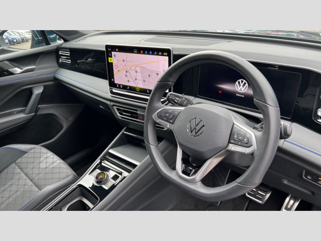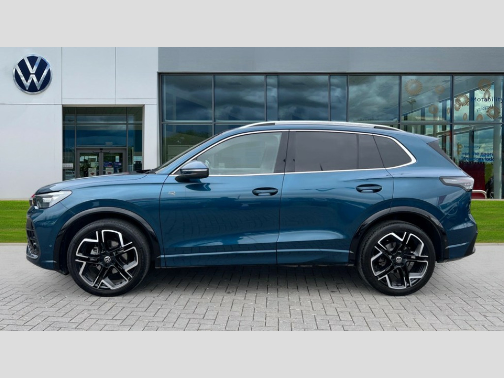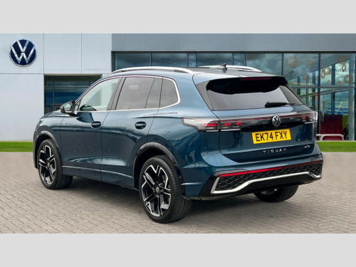 Volkswagen Tiguan 1.5 eTSI 150 R-Line 5dr DSG Adaptive cruise control (ACC), Advanced driver attention and drowsiness monitor, Bluetooth mobile phone interface, Car2X technology, Digital Cockpit Pro - 10.25" high resolution dash display screen with customisable menus and information, Dynamic road sign display, E-Sim card for online connectivity, eCall emergency call service, Front Assist - Autonomous emergency braking with pedestrian and cyclist monitoring, Lane change system, Side assist, Rear traffic alert and Exit warning system, Lane keeping system Lane Assist, Multifunction front facing camera, Oncoming vehicle braking when turning including swerve support, Park assistance plus with front and rear parking sensors, Power assisted steering with speed sensitive, Start/stop system with regenerative braking, Warning signal and warning light for front and rear seatbelts not fastened, Wireless App-Connect, Front wheel drive, Digital radio reception (DAB), Diversity antenna for FM reception, Air intake with Chrome trim, Ambient lighting with logo projection, Auto dimming interior rear view mirror, Automatic headlight control system, Body coloured door handles, Chrome moldings on the side windows, Coming/leaving home lighting function, Heat insulating glass in side and rear windows, Heated rear window, Heated windscreen washer jets, High level 3rd brake light, Illuminated door handle recesses, Illuminated lightline between headlamps, Laminated safety glass windshield, Rain sensor windscreen wipers, Rear fog light on one side, reversing light on both sides, Rear side wing doors, Rear wiper, 12V outlet in center console rear and in luggage compartment, 12V socket in centre console, 3 bench rear seats in 2nd row, Air care climatronic 3 zone air conditioning system with rear air conditioning control panel, Black roof lining, Brushed stainless steel pedals, Carpet mats, front and rear, Centre console with illuminated storage compartment with sliding cover and two drinks holders, Chrome elements on the mirror switch and power window switches and door pulls, Door and side trim panel with leatherette insert, Door sill protectors, Front centre armrest, Front integrated head restraints, Interior ambient lighting with 30 colour options, ISOFIX anchors for child seats on outer rear seats and front passenger seat compatible with i-Size, Mechanical rear seat release, Power adjustable lumbar support in front, Rear bench seat, split folding, longitudinally movable and folding with load-through hatch and centre armrest, Single front passenger seat, Soul headlining, Sports comfort seats in front, Sun visors with illuminated vanity mirrors, Three rear head restraints, Variable luggage compartment floor, 3 point seat belt for centre rear seats, 3 Point seat belts in front with pretensioners, 3 point seatbelts in outer rear with ECE label, Driver and front passenger airbag with front passenger airbag deactivation, Electronic parking brake with auto hold, Front and rear curtain airbags, Front and rear side airbags, Front centre airbag, Front disc brakes, Manual child proof rear door locks, Rear disc brakes, Two tone horn, Warning triangle, Anti theft wheel bolts, Decorative inserts, Interior door handle in matte chrome, Soul instrument panel