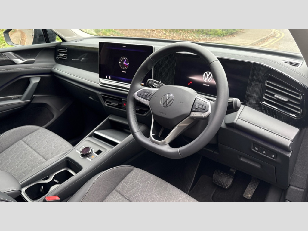 Volkswagen Tiguan 1.5 eTSI 150 Match 5dr DSG Adaptive cruise control (ACC), Advanced driver attention and drowsiness monitor, Bluetooth mobile phone interface, Car2X technology, Digital Cockpit Pro - 10.25" high resolution dash display screen with customisable menus and information, Dynamic road sign display, E-Sim card for online connectivity, eCall emergency call service, Front Assist - Autonomous emergency braking with pedestrian and cyclist monitoring, Lane change system, Side assist, Rear traffic alert and Exit warning system, Lane keeping system Lane Assist, Multifunction front facing camera, Oncoming vehicle braking when turning including swerve support, Park assistance plus with front and rear parking sensors, Power assisted steering with speed sensitive, Start/stop system with regenerative braking, Warning signal and warning light for front and rear seatbelts not fastened, Wireless App-Connect, Front wheel drive, Digital radio reception (DAB), Diversity antenna for FM reception, Ambient lighting with logo projection, Auto dimming interior rear view mirror, Automatic headlight control system, Body coloured bumpers and air intake with chrome trim, Body coloured door handles, Body-coloured exterior mirror housings, Coming/leaving home lighting function, Heat insulating glass in side and rear windows, Heat insulating windshield, Heated rear window, High level 3rd brake light, Illuminated door handle recesses, Illuminated lightline between headlamps, Rain sensor windscreen wipers, Rear fog light on one side, reversing light on both sides, Rear side wing doors, Rear wiper, 12V outlet in center console rear and in luggage compartment, 12V socket in centre console, 3 bench rear seats in 2nd row, Air care climatronic 3 zone air conditioning system with rear air conditioning control panel, Carpet mats, front and rear, Ceramique headlining, Door and side trim panel in foam film and woven fabric, Front centre armrest, ISOFIX anchors for child seats on outer rear seats and front passenger seat compatible with i-Size, Mechanical rear seat release, Power adjustable lumbar support in front, Rear bench seat, split folding, longitudinally movable and folding with load-through hatch and centre armrest, Safety optimised front head restraints, Single front passenger seat, Sun visors with illuminated vanity mirrors, Three rear head restraints, Variable luggage compartment floor, Comfort package incl. Memory feature for Park assist and Safelock - Tiguan, Design package - Tiguan, 3 point seat belt for centre rear seats, 3 Point seat belts in front with pretensioners, 3 point seatbelts in outer rear with ECE label, Driver and front passenger airbag with front passenger airbag deactivation, Electronic parking brake with auto hold, Front and rear curtain airbags, Front and rear side airbags, Front centre airbag, Front disc brakes, Hill start assist, Manual child proof rear door locks, Rear disc brakes, Two tone horn, Warning triangle, Anti theft wheel bolts, Soul instrument panel