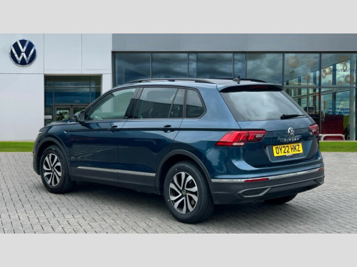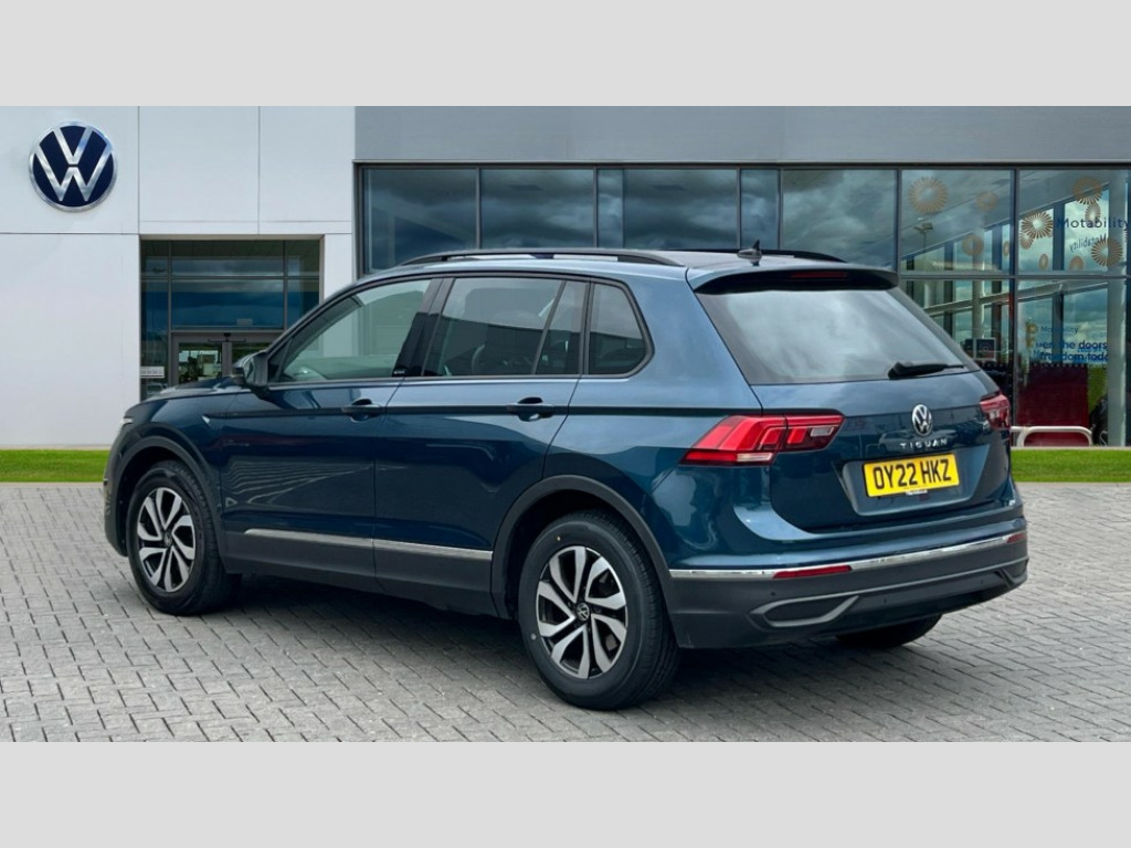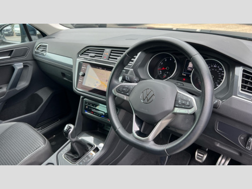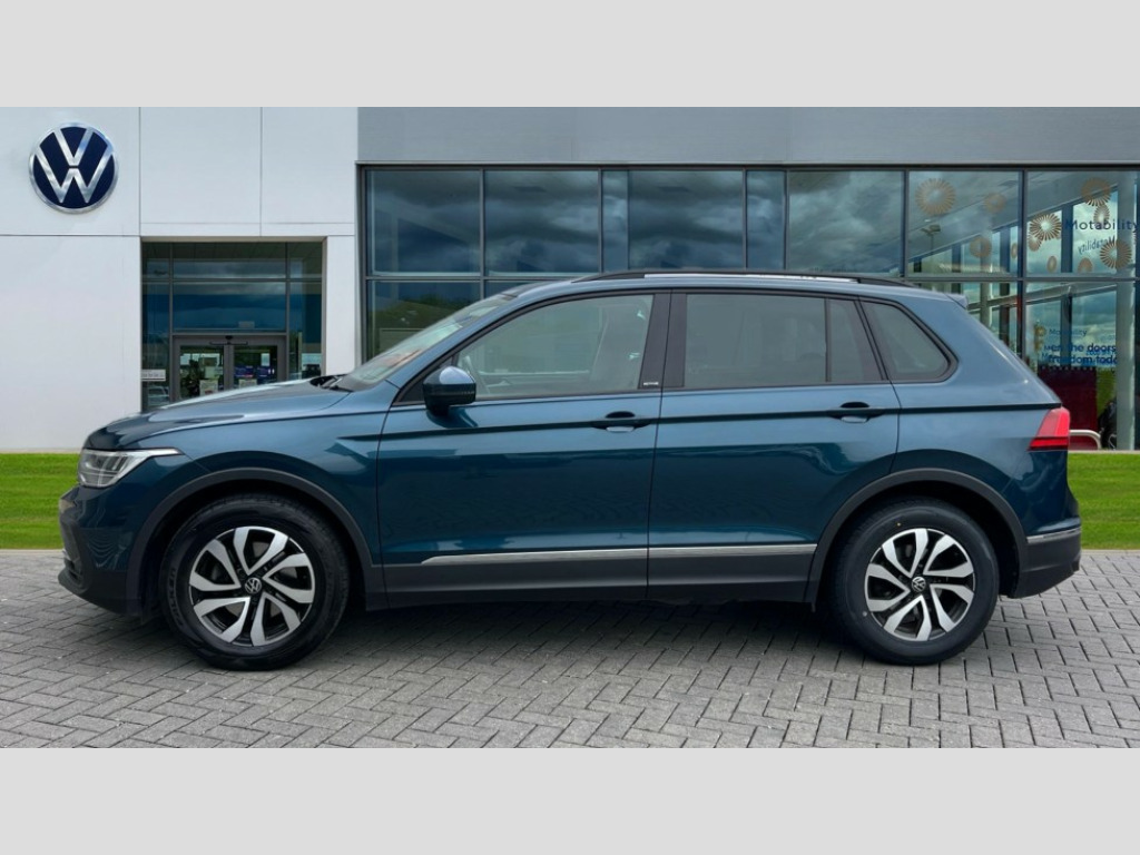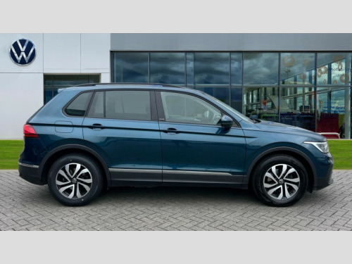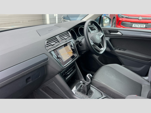 Volkswagen Tiguan 1.5 TSI 150 Active 5dr Adaptive cruise control ACC including speed limiter, App-Connect incl. App-Connect Wireless for Apple CarPlay and Android Auto, Bluetooth phone integration system, Distance control assist, Driver alert system, Driver profile selection, Dynamic road sign display, eCall emergency call system, Electromechanical speed sensitive power steering, Instrument cluster mph speedometer Great Britain, Lane keeping system Lane Assist, Lights on warning, Multifunction front facing camera, Outside temperature display, Premium multifunction display with multi colour display, Revision / skills operating concept travel assistant, Service interval indicator, Start/stop system with regenerative braking, Warning sound and light for doors and tailgate open, Battery regeneration during braking, XDS electronic differential lock for improved traction and handling, Diversity antenna for FM reception, Radio, SD card slot, Simultaneous pairing of 2 compatible mobile devices, SMS functionality - read, compose and send SMS messages using touch-screen display, Title and cover art display, Auto dimming interior rear view mirror, Automatic headlight control system, Black roof rails, Body colour door handles, Body colour door mirrors, Body coloured bumpers, Coming/leaving home lighting function, Front and rear electric windows, Headlight range control, Heated rear window, High level 3rd brake light, Laminated safety glass windshield, heat and sound insulating, LED headlamps, LED rear combination lamps, LED rear number plate lights, LED separate daytime running light, Privacy glass for rear side windows and rear window, Rain sensor windscreen wipers, Rear exhaust tailpipe, Rear fog lamp, Rear windscreen washer and wiper with interval delay, Side and rear windows in heat insulating glass, Trailer Stability Programme, Windscreen wipers/ intermittent wipe + 4 position delay, 12V outlet in center console rear and in luggage compartment, 2 cup holders in front, 2 LED front reading lights, 2 LED rear reading lights, 3 bench rear seats in 2nd row, 3 rear headrests, 4 load lashing points, 40:20:40 split folding rear seats, Air Care Climatronic 3 zone automatic climate control with enhanced air filter and controls in the rear, Backrest release for left front seat, Brushed stainless steel pedals and footrest, Climate control unit rear with touch function, Door and side trim panel in foam film and woven fabric, Driver + front passenger lumbar support, Front comfort seats, Front footwell illumination, Front seats head restraints (x-adjustment), Height adjustable front seats, Height/reach adjust steering wheel, Instrument lighting white adjustable panel illumination, Interior light with delay, Isofix Preparation 2 Rear child seats, Leather gear knob, Lockable cooled glovebox, Luggage compartment lighting, Rear bench seat asymetrically split folding, longitudinally movable and folding with load-through hatch and center armrest, Remote unlocking for rear seat backrest, Removable luggage cover, Safety optimised front head restraints, Sliding/reclining rear seats, Standard rear seat release, Storage compartment in driver's door, Storage compartment in passenger's door, Storage compartment in rear doors, Storage compartments in luggage area left and right, Storage tray on dashboard, Sun visors with illuminated vanity mirrors, Variable boot floor, height adjustable and removable, 3 point seat belt for centre rear seats, 3 point seat belts with seat belt pretensioners for the outer rear seats, Active bonnet, Curtain airbags for front and rear passengers, Driver/Front Passenger airbags, Drivers knee airbag, Electronic parking brake with auto hold, Electronic Stability Control with driver steering recommendation, ABS, ASR, EDL, EDTC and trailer stabilization, Front assist with autonomous emergency braking (for Adaptive Cruise Control ACC up to 130 mph), Front disc brakes, Front passenger airbag deactivation, Front side airbags, Height adjustable front 3 point seatbelts + pretensioners, Hill hold control, Pedestrian monitoring system, Rear disc brakes, Rigid safety cell with front and rear crumple zones, Two tone horn, Warning sound and light for front seat belts if unfastened, Anti theft alarm system with interior monitoring, backup horn and towing protection, Anti theft wheel bolts, Electronic engine immobiliser, 17" Galway alloy wheels with rolling resistance tyres, Tool kit