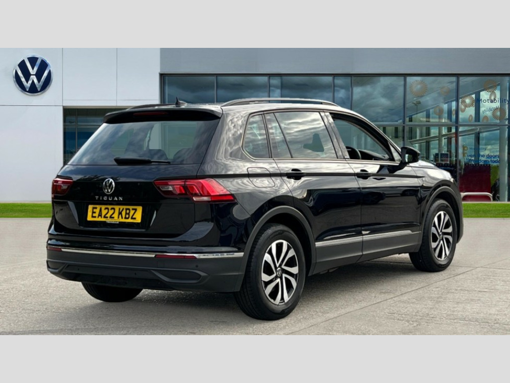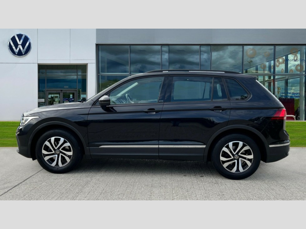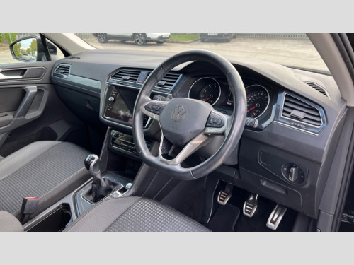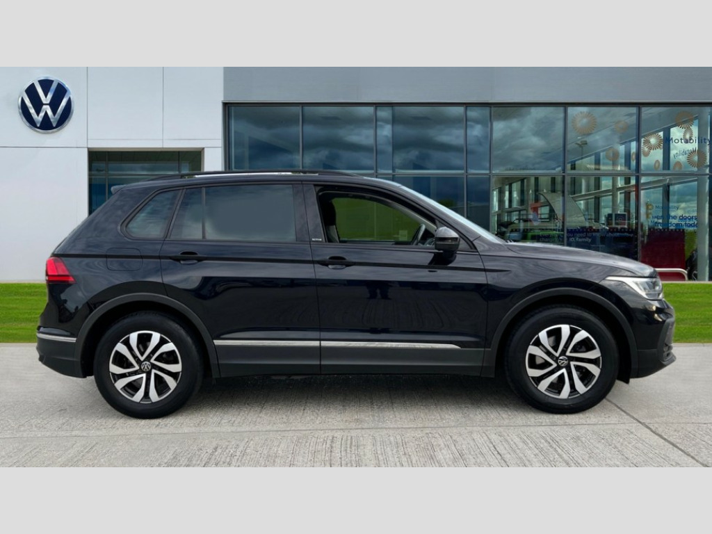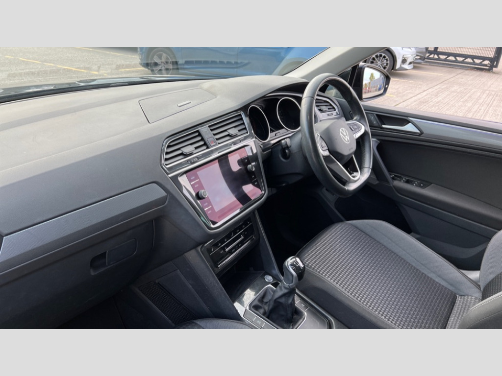 Volkswagen Tiguan 1.5 TSI 150 Active 5dr Adaptive cruise control ACC including speed limiter, App-Connect incl. App-Connect Wireless for Apple CarPlay and Android Auto, Bluetooth phone integration system, Distance control assist, Driver alert system, Driver profile selection, Dynamic road sign display, eCall emergency call system, Electromechanical speed sensitive power steering, Instrument cluster mph speedometer Great Britain, Lane keeping system Lane Assist, Lights on warning, Multifunction front facing camera, Outside temperature display, Premium multifunction display with multi colour display, Revision / skills operating concept travel assistant, Service interval indicator, Start/stop system with regenerative braking, Warning sound and light for doors and tailgate open, Battery regeneration during braking, XDS electronic differential lock for improved traction and handling, Diversity antenna for FM reception, Radio, SD card slot, Simultaneous pairing of 2 compatible mobile devices, SMS functionality - read, compose and send SMS messages using touch-screen display, Title and cover art display, Auto dimming interior rear view mirror, Automatic headlight control system, Black roof rails, Body colour door handles, Body colour door mirrors, Body coloured bumpers, Coming/leaving home lighting function, Front and rear electric windows, Headlight range control, Heated rear window, High level 3rd brake light, Laminated safety glass windshield, heat and sound insulating, LED headlamps, LED rear combination lamps, LED rear number plate lights, LED separate daytime running light, Privacy glass for rear side windows and rear window, Rain sensor windscreen wipers, Rear exhaust tailpipe, Rear fog lamp, Rear windscreen washer and wiper with interval delay, Side and rear windows in heat insulating glass, Trailer Stability Programme, Windscreen wipers/ intermittent wipe + 4 position delay, 12V outlet in center console rear and in luggage compartment, 2 cup holders in front, 2 LED front reading lights, 2 LED rear reading lights, 3 bench rear seats in 2nd row, 3 rear headrests, 4 load lashing points, 40:20:40 split folding rear seats, Air Care Climatronic 3 zone automatic climate control with enhanced air filter and controls in the rear, Backrest release for left front seat, Brushed stainless steel pedals and footrest, Climate control unit rear with touch function, Door and side trim panel in foam film and woven fabric, Driver + front passenger lumbar support, Front comfort seats, Front footwell illumination, Front seats head restraints (x-adjustment), Height adjustable front seats, Height/reach adjust steering wheel, Instrument lighting white adjustable panel illumination, Interior light with delay, Isofix Preparation 2 Rear child seats, Leather gear knob, Lockable cooled glovebox, Luggage compartment lighting, Rear bench seat asymetrically split folding, longitudinally movable and folding with load-through hatch and center armrest, Remote unlocking for rear seat backrest, Removable luggage cover, Safety optimised front head restraints, Sliding/reclining rear seats, Standard rear seat release, Storage compartment in driver's door, Storage compartment in passenger's door, Storage compartment in rear doors, Storage compartments in luggage area left and right, Storage tray on dashboard, Sun visors with illuminated vanity mirrors, Variable boot floor, height adjustable and removable, 3 point seat belt for centre rear seats, 3 point seat belts with seat belt pretensioners for the outer rear seats, Active bonnet, Curtain airbags for front and rear passengers, Driver/Front Passenger airbags, Drivers knee airbag, Electronic parking brake with auto hold, Electronic Stability Control with driver steering recommendation, ABS, ASR, EDL, EDTC and trailer stabilization, Front assist with autonomous emergency braking (for Adaptive Cruise Control ACC up to 130 mph), Front disc brakes, Front passenger airbag deactivation, Front side airbags, Height adjustable front 3 point seatbelts + pretensioners, Hill hold control, Pedestrian monitoring system, Rear disc brakes, Rigid safety cell with front and rear crumple zones, Two tone horn, Warning sound and light for front seat belts if unfastened, Anti theft alarm system with interior monitoring, backup horn and towing protection, Anti theft wheel bolts, Electronic engine immobiliser, 17" Galway alloy wheels with rolling resistance tyres, Tool kit