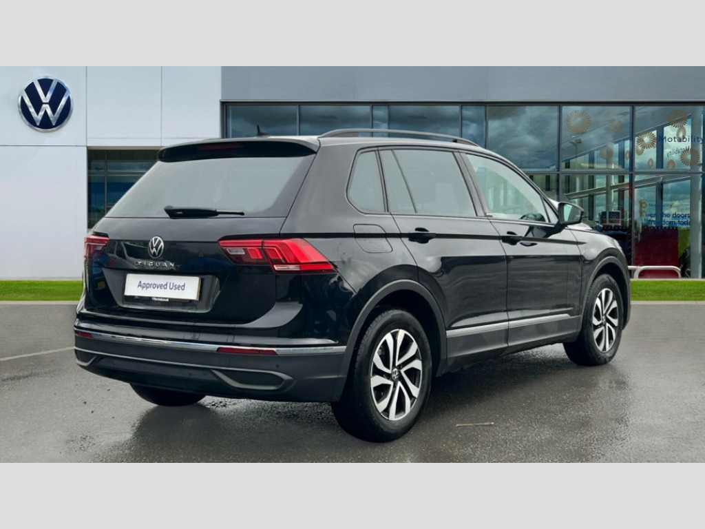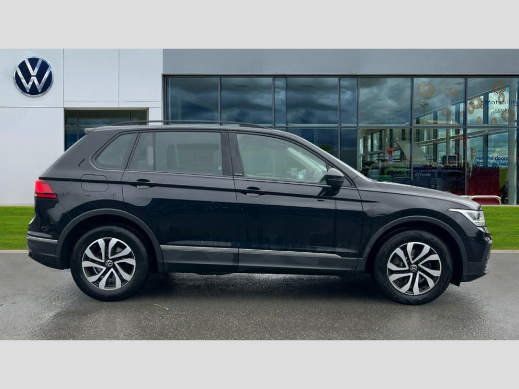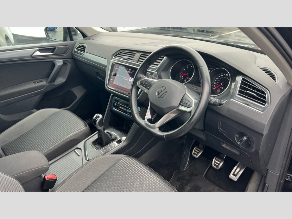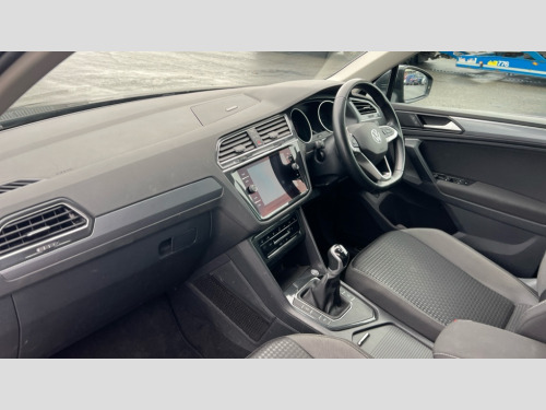 Volkswagen Tiguan 1.5 TSI 150 Active 5dr Adaptive cruise control ACC including speed limiter, App-Connect incl. App-Connect Wireless for Apple CarPlay and Android Auto, Bluetooth phone integration system, Distance control assist, Driver alert system, Driver profile selection, Dynamic road sign display, eCall emergency call system, Electromechanical speed sensitive power steering, Instrument cluster mph speedometer Great Britain, Lane keeping system Lane Assist, Lights on warning, Multifunction front facing camera, Outside temperature display, Premium multifunction display with multi colour display, Revision / skills operating concept travel assistant, Service interval indicator, Start/stop system with regenerative braking, Warning sound and light for doors and tailgate open, Battery regeneration during braking, XDS electronic differential lock for improved traction and handling, Diversity antenna for FM reception, Radio, SD card slot, Simultaneous pairing of 2 compatible mobile devices, SMS functionality - read, compose and send SMS messages using touch-screen display, Title and cover art display, Auto dimming interior rear view mirror, Automatic headlight control system, Black roof rails, Body colour door handles, Body colour door mirrors, Body coloured bumpers, Coming/leaving home lighting function, Front and rear electric windows, Headlight range control, Heated rear window, High level 3rd brake light, Laminated safety glass windshield, heat and sound insulating, LED headlamps, LED rear combination lamps, LED rear number plate lights, LED separate daytime running light, Privacy glass for rear side windows and rear window, Rain sensor windscreen wipers, Rear exhaust tailpipe, Rear fog lamp, Rear windscreen washer and wiper with interval delay, Side and rear windows in heat insulating glass, Trailer Stability Programme, Windscreen wipers/ intermittent wipe + 4 position delay, 12V outlet in center console rear and in luggage compartment, 2 cup holders in front, 2 LED front reading lights, 2 LED rear reading lights, 3 bench rear seats in 2nd row, 3 rear headrests, 4 load lashing points, 40:20:40 split folding rear seats, Air Care Climatronic 3 zone automatic climate control with enhanced air filter and controls in the rear, Backrest release for left front seat, Brushed stainless steel pedals and footrest, Climate control unit rear with touch function, Door and side trim panel in foam film and woven fabric, Driver + front passenger lumbar support, Front comfort seats, Front footwell illumination, Front seats head restraints (x-adjustment), Height adjustable front seats, Height/reach adjust steering wheel, Instrument lighting white adjustable panel illumination, Interior light with delay, Isofix Preparation 2 Rear child seats, Leather gear knob, Lockable cooled glovebox, Luggage compartment lighting, Rear bench seat asymetrically split folding, longitudinally movable and folding with load-through hatch and center armrest, Remote unlocking for rear seat backrest, Removable luggage cover, Safety optimised front head restraints, Sliding/reclining rear seats, Standard rear seat release, Storage compartment in driver's door, Storage compartment in passenger's door, Storage compartment in rear doors, Storage compartments in luggage area left and right, Storage tray on dashboard, Sun visors with illuminated vanity mirrors, Variable boot floor, height adjustable and removable, 3 point seat belt for centre rear seats, 3 point seat belts with seat belt pretensioners for the outer rear seats, Active bonnet, Curtain airbags for front and rear passengers, Driver/Front Passenger airbags, Drivers knee airbag, Electronic parking brake with auto hold, Electronic Stability Control with driver steering recommendation, ABS, ASR, EDL, EDTC and trailer stabilization, Front assist with autonomous emergency braking (for Adaptive Cruise Control ACC up to 130 mph), Front disc brakes, Front passenger airbag deactivation, Front side airbags, Height adjustable front 3 point seatbelts + pretensioners, Hill hold control, Pedestrian monitoring system, Rear disc brakes, Rigid safety cell with front and rear crumple zones, Two tone horn, Warning sound and light for front seat belts if unfastened, Anti theft alarm system with interior monitoring, backup horn and towing protection, Anti theft wheel bolts, Electronic engine immobiliser, 17" Galway alloy wheels with rolling resistance tyres, Tool kit