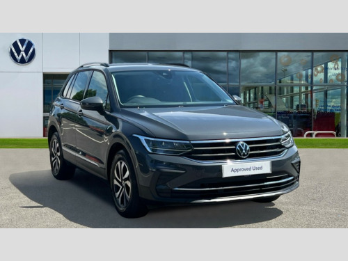 Volkswagen Tiguan 1.5 TSI 150 Active 5dr DSG Adaptive cruise control ACC including speed limiter, App-Connect incl. App-Connect Wireless for Apple CarPlay and Android Auto, Bluetooth phone integration system, Distance control assist, Driver alert system, Driver profile selection, Dynamic road sign display, eCall emergency call system, Electromechanical speed sensitive power steering, Lane keeping system Lane Assist, Lights on warning, Multifunction front facing camera, Outside temperature display, Premium multifunction display with multi colour display, Revision / skills operating concept travel assistant, Service interval indicator, Start/stop system with regenerative braking, Warning sound and light for doors and tailgate open, Battery regeneration during braking, XDS electronic differential lock for improved traction and handling, 2 USB-C ports in the front, 1 USB-C charging socket on the center console in the rear, Diversity antenna for FM reception, Radio, SD card slot, Simultaneous pairing of 2 compatible mobile devices, SMS functionality - read, compose and send SMS messages using touch-screen display, Title and cover art display, Auto dimming interior rear view mirror, Automatic headlight control system, Body colour door handles, Body colour door mirrors, Body coloured bumpers, Coming/leaving home lighting function, Front and rear electric windows, Headlight range control, Heated rear window, High level 3rd brake light, Laminated safety glass windshield, heat and sound insulating, LED rear number plate lights, Privacy glass for rear side windows and rear window, Rain sensor windscreen wipers, Rear exhaust tailpipe, Rear fog lamp, Rear windscreen washer and wiper with interval delay, Side and rear windows in heat insulating glass, Trailer Stability Programme, Windscreen wipers/ intermittent wipe + 4 position delay, 12V outlet in center console rear and in luggage compartment, 2 cup holders in front, 2 LED front reading lights, 2 LED rear reading lights, 3 rear headrests, 4 load lashing points, 40:20:40 split folding rear seats, Air Care Climatronic 3 zone automatic climate control with enhanced air filter and controls in the rear, Backrest release for left front seat, Brushed stainless steel pedals and footrest, Climate control unit rear with touch function, Door and side trim panel in foam film and woven fabric, Driver + front passenger lumbar support, Front + rear carpet mats, Front comfort seats, Front footwell illumination, Front seats head restraints (x-adjustment), Height adjustable front seats, Height/reach adjust steering wheel, Instrument lighting white adjustable panel illumination, Interior light with delay, Isofix Preparation 2 Rear child seats, Leather gear knob, Lockable cooled glovebox, Luggage compartment lighting, Rear bench seat asymetrically split folding, longitudinally movable and folding with load-through hatch and center armrest, Remote unlocking for rear seat backrest, Removable luggage cover, Safety optimised front head restraints, Sliding/reclining rear seats, Standard rear seat release, Storage compartment in driver's door, Storage compartment in passenger's door, Storage compartment in rear doors, Storage compartments in luggage area left and right, Storage tray on dashboard, Sun visors with illuminated vanity mirrors, Trapeze cloth upholstery, Variable boot floor, height adjustable and removable, 3 point seat belt for centre rear seats, 3 point seat belts with seat belt pretensioners for the outer rear seats, Active bonnet, Curtain airbags for front and rear passengers, Driver/Front Passenger airbags, Drivers knee airbag, Electronic parking brake with auto hold, Electronic Stability Control with driver steering recommendation, ABS, ASR, EDL, EDTC and trailer stabilization, Front assist with autonomous emergency braking (for Adaptive Cruise Control ACC up to 130 mph), Front disc brakes, Front passenger airbag deactivation, Front side airbags, Height adjustable front 3 point seatbelts + pretensioners, Hill hold control, Pedestrian monitoring system, Rear disc brakes, Rigid safety cell with front and rear crumple zones, Two tone horn, Warning sound and light for front seat belts if unfastened, Anti theft alarm system with interior monitoring, backup horn and towing protection, Anti theft wheel bolts, Electronic engine immobiliser, 17" Galway alloy wheels with rolling resistance tyres, Tool kit