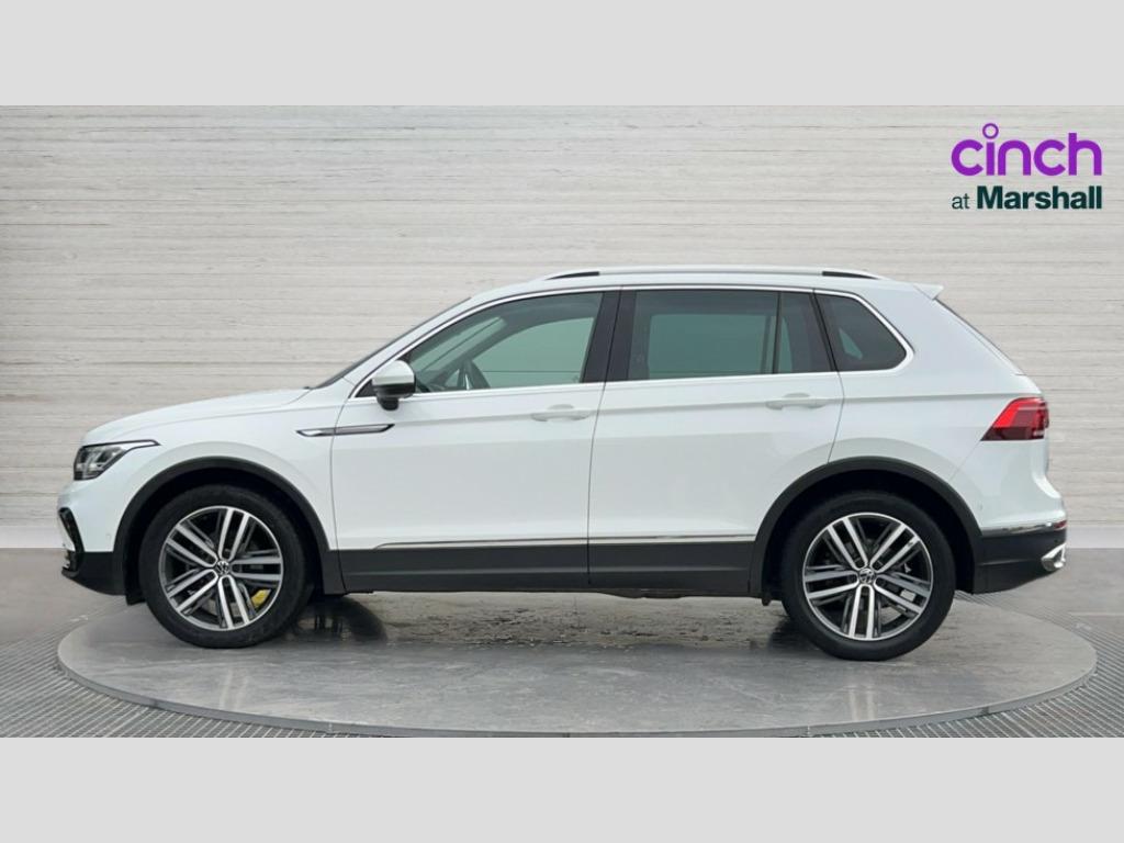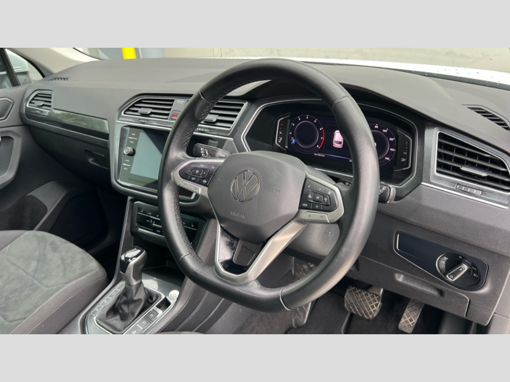 Volkswagen Tiguan 1.5 TSI 150 Elegance 5dr DSG Adaptive cruise control ACC stop and go including speed limiter, App-Connect incl. App-Connect Wireless for Apple CarPlay and Android Auto, Bluetooth phone integration system, Digital Cockpit Pro - Active info display, Distance control assist, Driver alert system, Driver profile selection, Dynamic road sign display, eCall emergency call system, Electromechanical speed sensitive power steering, Lane keeping system Lane Assist, Lights on warning, Multifunction front facing camera, Outside temperature display, Premium multifunction display with multi colour display, Service interval indicator, Start/stop system with regenerative braking, Tailgate/trunk lid unlocking from outside, Warning sound and light for doors and tailgate open, Battery regeneration during braking, XDS electronic differential lock for improved traction and handling, 2 USB-C ports in the front, 1 USB-C charging socket on the center console in the rear, Diversity antenna for FM reception, Radio, SD card slot, Simultaneous pairing of 2 compatible mobile devices, SMS functionality - read, compose and send SMS messages using touch-screen display, Title and cover art display, Auto dimming interior rear view mirror, Automatic headlight control system, Body colour door handles, Body coloured bumpers, Coming/leaving home lighting function, Dynamic headlight range control, Front and rear electric windows, Heated rear window, High level 3rd brake light, IQ light with advanced high beam control and dynamic light assist for LED matrix headlamps + Dark red rear combination lamp in LED technology, Laminated safety glass windshield, heat and sound insulating, LED rear number plate lights, LED separate daytime running light, Poor weather light and cornering light, Power adjustable, folding and heated door mirrors with surround lighting, front passenger exterior mirror lowering function, Privacy glass for rear side windows and rear window, Rain sensor windscreen wipers, Rear exhaust tailpipe, Rear fog lamp, Rear windscreen washer and wiper with interval delay, Side and rear windows in heat insulating glass, Tilting and sliding panoramic sunroof with rear panoramic sunroof, Trailer Stability Programme, Windscreen wipers/ intermittent wipe + 4 position delay, 12V outlet in center console rear and in luggage compartment, 2 cup holders in front, 2 LED front reading lights, 2 LED rear reading lights, 3 rear headrests, 4 load lashing points, 40:20:40 split folding rear seats, Air Care Climatronic 3 zone automatic climate control with enhanced air filter and controls in the rear, Backrest release for left front seat, Door and side trim panel in foam film and woven fabric, Front + rear carpet mats, Front footwell illumination, Front seats head restraints (x-adjustment), Height adjustable front seats, Height/reach adjust steering wheel, Instrument lighting white adjustable panel illumination, Interior light with delay, Isofix Preparation 2 Rear child seats, Leather gear knob, Lockable cooled glovebox, Luggage compartment lighting, Rear bench seat asymetrically split folding, longitudinally movable and folding with load-through hatch and center armrest, Remote unlocking for rear seat backrest, Removable luggage cover, Safety optimised front head restraints, Sliding/reclining rear seats, Standard rear seat release, Storage compartment in driver's door, Storage compartment in passenger's door, Storage compartment in rear doors, Storage compartments in luggage area left and right, Storage tray on dashboard, Sun visors with illuminated vanity mirrors, Variable boot floor, height adjustable and removable, Ambience pack - Tiguan, Chrome pack - Tiguan, Easy open and close pack with safelock - Tiguan, 3 point seat belt for centre rear seats, 3 point seat belts with seat belt pretensioners for the outer rear seats, Active bonnet, Curtain airbags for front and rear passengers, Driver/Front Passenger airbags, Drivers knee airbag, Electronic parking brake with auto hold, Electronic Stability Control with driver steering recommendation, ABS, ASR, EDL, EDTC and trailer stabilization, Front assist with autonomous emergency braking (for Adaptive Cruise Control ACC up to 130 mph), Front disc brakes, Front passenger airbag deactivation, Front side airbags, Height adjustable front 3 point seatbelts + pretensioners, Hill hold control, Pedestrian monitoring system, Proactive passenger protection system in combination with front assist, Rear disc brakes, Rigid safety cell with front and rear crumple zones, Two tone horn, Warning sound and light for front seat belts if unfastened, Warning triangle, Anti theft alarm system with interior monitoring, backup horn and towing protection, Anti theft wheel bolts, Central locking system with safelock radio remote control and 2 remote control folding keys, Electronic engine immobiliser, Tool kit