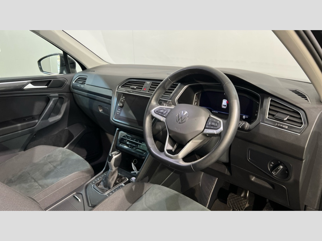 Volkswagen Tiguan 1.5 TSI 150 Elegance 5dr DSG Adaptive cruise control ACC stop and go including speed limiter, App-Connect incl. App-Connect Wireless for Apple CarPlay and Android Auto, Bluetooth phone integration system, Distance control assist, Driver alert system, Driver profile selection, Dynamic road sign display, eCall emergency call system, Electromechanical speed sensitive power steering, Engine start/stop button, Lane keeping system Lane Assist, Lights on warning, Motorised electric tailgate operated via key fob, drivers door and foot movement under tailgate, Multifunction front facing camera, Outside temperature display, Premium multifunction display with multi colour display, Remote control boot opening, Rev counter, Revision / skills operating concept travel assistant, Service interval indicator, Speed limit display, Start/stop system with regenerative braking, Tailgate/trunk lid unlocking from outside, Trip computer, Warning sound and light for doors and tailgate open, Battery regeneration during braking, XDS electronic differential lock for improved traction and handling, 4 X 20 watt output, 8 Speakers, Diversity antenna for FM reception, SD card slot, Simultaneous pairing of 2 compatible mobile devices, SMS functionality - read, compose and send SMS messages using touch-screen display, Title and cover art display, USB C ports, Aluminium door sill protectors, Auto dimming interior rear view mirror, Automatic headlight control system, Body colour door handles, Body coloured bumpers, Body coloured door mirrors with integrated indicators, Coming/leaving home lighting function, Dynamic headlight range control, Front and rear electric windows, Heated rear window, High level 3rd brake light, IQ light-Adv high beam,Dynamic light assist for LED matrix headlamp+LED separate DRL+DCL, dark red rear LED tech, Poor weather light+ cornering light, Laminated safety glass windshield, heat and sound insulating, LED rear number plate lights, Poor weather light and cornering light, Privacy glass for rear side windows and rear window, Rain sensor windscreen wipers, Rear exhaust tailpipe, Rear fog lamp, Rear side wing doors, Rear windscreen washer and wiper with interval delay, Side and rear windows in heat insulating glass, Tilting and sliding panoramic sunroof with rear panoramic sunroof, Trailer Stability Programme, Windscreen wipers/ intermittent wipe + 4 position delay, 12V outlet in center console rear and in luggage compartment, 12V outlet in front and tray, 2 cup holders in front, 2 LED front reading lights, 2 LED rear reading lights, 3 bench rear seats in 2nd row, 3 rear headrests, 4 load lashing points, 40:20:40 split folding rear seats, Air Care Climatronic 3 zone automatic climate control with enhanced air filter and controls in the rear, Backrest release for left front seat, Climate control unit rear with touch function, Door and side trim panel in foam film and woven fabric, Front centre armrest, Front footwell illumination, Front seats head restraints (x-adjustment), Height adjustable front seats, Height/reach adjust steering wheel, Instrument lighting white adjustable panel illumination, Interior light with delay, Isofix Preparation 2 Rear child seats, Leather gear knob, Lockable cooled glovebox, Luggage compartment lighting, Luggage net, Rear bench seat asymetrically split folding, longitudinally movable and folding with load-through hatch and center armrest, Remote unlocking for rear seat backrest, Removable luggage cover, Removable rear headrests, Safety optimised front head restraints, Single front passenger seat, Sliding/reclining rear seats, Standard rear seat release, Storage compartment in driver's door, Storage compartment in passenger's door, Storage compartment in rear doors, Storage compartments in luggage area left and right, Storage tray on dashboard, Sun visors with illuminated vanity mirrors, Top front comfort seats, Variable boot floor, height adjustable and removable, Easy open and close pack with safelock - Tiguan, 3 point seat belt for centre rear seats, 3 point seat belts with seat belt pretensioners for the outer rear seats, Active bonnet, Curtain airbags for front and rear passengers, Driver/Front Passenger airbags, Drivers knee airbag, Electronic parking brake with auto hold, Electronic Stability Control with driver steering recommendation, ABS, ASR, EDL, EDTC and trailer stabilization, Front assist with autonomous emergency braking (for Adaptive Cruise Control ACC up to 130 mph), Front disc brakes, Front passenger airbag deactivation, Front side airbags, Height adjustable front 3 point seatbelts + pretensioners, Hill hold control, Manual child proof rear door locks, Pedestrian monitoring system, Power assisted brakes, Proactive passenger protection system in combination with front assist, Rear disc brakes, Rigid safety cell with front and rear crumple zones, Two tone horn, Warning sound and light for front seat belts if unfastened, Anti theft alarm system with interior monitoring, backup horn and towing protection, Anti theft wheel bolts, Central locking system with safelock radio remote control and 2 remote control folding keys, Electronic engine immobiliser, Tool kit