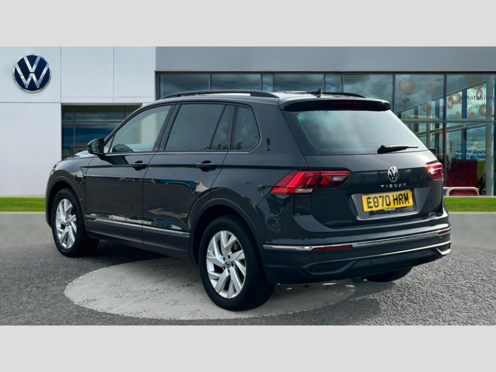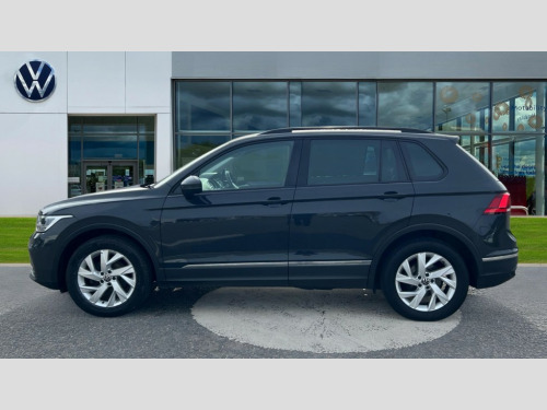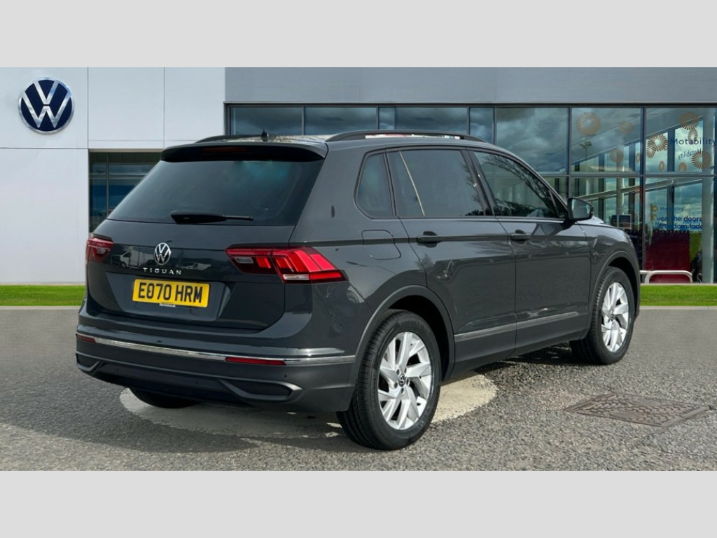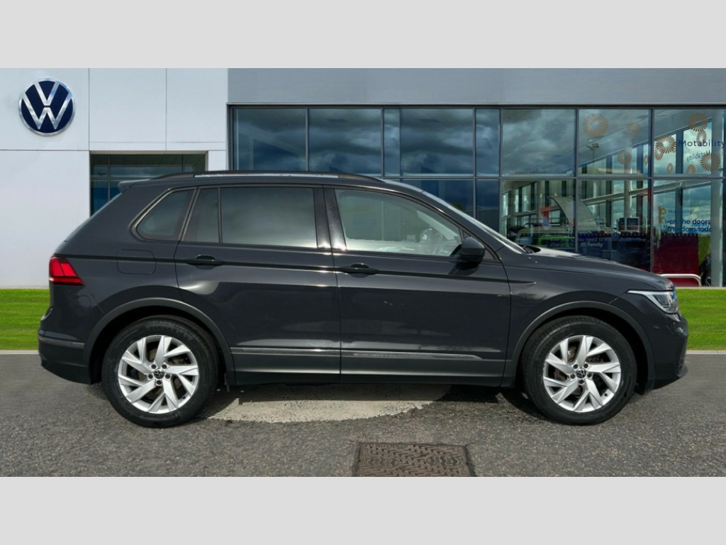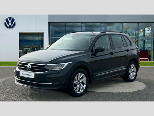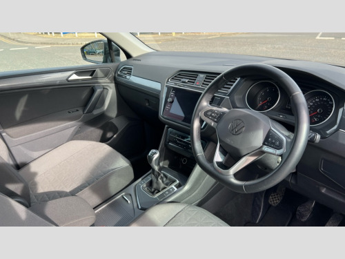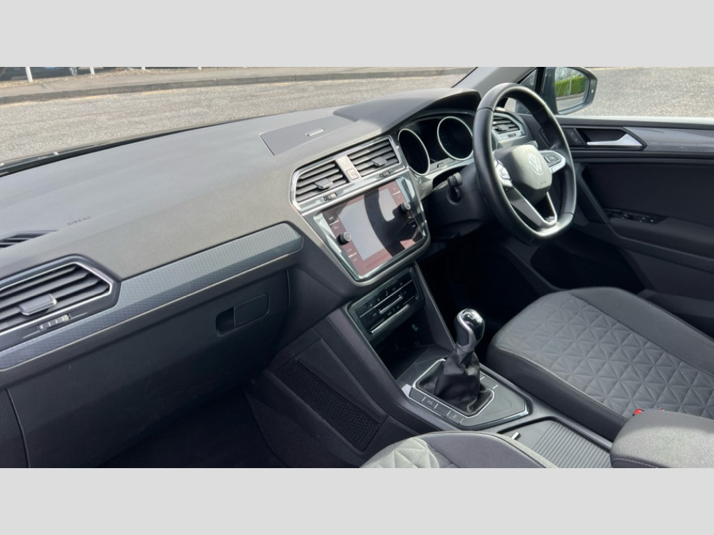 Volkswagen Tiguan 1.5 TSI 150 Life 5dr Adaptive cruise control ACC including speed limiter, App-Connect incl. App-Connect Wireless for Apple CarPlay and Android Auto, Bluetooth phone integration system, Distance control assist, Driver alert system, Dynamic road sign display, eCall emergency call system, Electromechanical speed sensitive power steering, Front/rear Parking distance control, Lane keeping system Lane Assist, Lights on warning, Multifunction front facing camera, Outside temperature display, Premium multifunction display with multi colour display, Service interval indicator, Start/stop system with regenerative braking, Tailgate/trunk lid unlocking from outside, Warning sound and light for doors and tailgate open, Battery regeneration during braking, XDS electronic differential lock for improved traction and handling, 2 USB-C ports in the front, 1 USB-C charging socket on the center console in the rear, Diversity antenna for FM reception, Radio, SD card slot, Simultaneous pairing of 2 compatible mobile devices, SMS functionality - read, compose and send SMS messages using touch-screen display, Title and cover art display, Auto dimming interior rear view mirror, Automatic headlight control system, Body colour door handles, Body coloured bumpers, Coming/leaving home lighting function, Front and rear electric windows, Headlight range control, Heated rear window, High level 3rd brake light, Laminated safety glass windshield, heat and sound insulating, LED rear number plate lights, Privacy glass for rear side windows and rear window, Rain sensor windscreen wipers, Rear exhaust tailpipe, Rear fog lamp, Rear windscreen washer and wiper with interval delay, Side and rear windows in heat insulating glass, Trailer Stability Programme, Windscreen wipers/ intermittent wipe + 4 position delay, 12V outlet in center console rear and in luggage compartment, 12V outlet in front and tray, 2 cup holders in front, 2 LED front reading lights, 2 LED rear reading lights, 3 rear headrests, 4 load lashing points, 40:20:40 split folding rear seats, Air Care Climatronic 3 zone automatic climate control with enhanced air filter and controls in the rear, Backrest release for left front seat, Door and side trim panel in foam film and woven fabric, Front + rear carpet mats, Front footwell illumination, Front seats head restraints (x-adjustment), Height adjustable front seats, Height/reach adjust steering wheel, Instrument lighting white adjustable panel illumination, Interior light with delay, Isofix Preparation 2 Rear child seats, Leather gear knob, Lockable cooled glovebox, Luggage compartment lighting, Rear bench seat asymetrically split folding, longitudinally movable and folding with load-through hatch and center armrest, Remote unlocking for rear seat backrest, Removable luggage cover, Safety optimised front head restraints, Sliding/reclining rear seats, Standard rear seat release, Storage compartment in driver's door, Storage compartment in passenger's door, Storage compartment in rear doors, Storage compartments in luggage area left and right, Storage tray on dashboard, Sun visors with illuminated vanity mirrors, Variable boot floor, height adjustable and removable, 3 point seat belt for centre rear seats, 3 point seat belts with seat belt pretensioners for the outer rear seats, Active bonnet, Curtain airbags for front and rear passengers, Driver/Front Passenger airbags, Drivers knee airbag, Electronic parking brake with auto hold, Electronic Stability Control with driver steering recommendation, ABS, ASR, EDL, EDTC and trailer stabilization, Front assist with autonomous emergency braking (for Adaptive Cruise Control ACC up to 130 mph), Front disc brakes, Front passenger airbag deactivation, Front side airbags, Height adjustable front 3 point seatbelts + pretensioners, Hill hold control, Pedestrian monitoring system, Rear disc brakes, Rigid safety cell with front and rear crumple zones, Two tone horn, Warning sound and light for front seat belts if unfastened, Warning triangle, Anti theft alarm system with interior monitoring, backup horn and towing protection, Anti theft wheel bolts, Central locking system with safelock radio remote control and 2 remote control folding keys, Electronic engine immobiliser, Weave decorative inserts in dash and front door trim panels, Tool kit