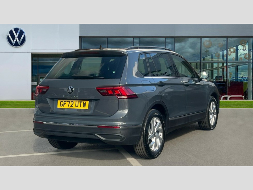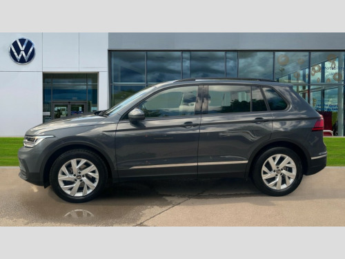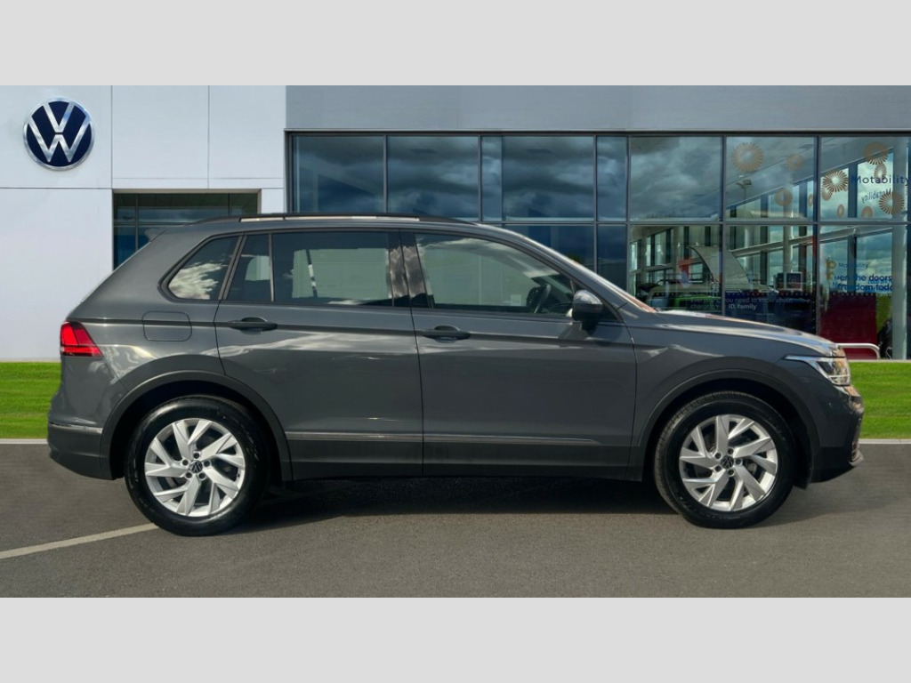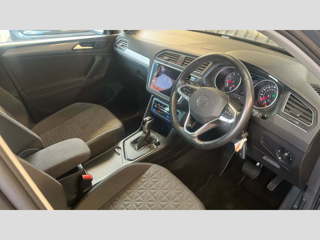 Volkswagen Tiguan 1.5 TSI 150 Life 5dr DSG Adaptive cruise control ACC including speed limiter, App-Connect incl. App-Connect Wireless for Apple CarPlay and Android Auto, Bluetooth phone integration system, Distance control assist, Driver alert system, Dynamic road sign display, eCall emergency call system, Electromechanical speed sensitive power steering, Instrument cluster mph speedometer Great Britain, Lane keeping system Lane Assist, Lights on warning, Multifunction front facing camera, Outside temperature display, Premium multifunction display with multi colour display, Remote control boot opening, Rev counter, Revision / skills operating concept travel assistant, Service interval indicator, Speed limit display, Start/stop system with regenerative braking, Trip computer, Warning sound and light for doors and tailgate open, Battery regeneration during braking, XDS electronic differential lock for improved traction and handling, 4 X 20 watt output, 8 Speakers, Diversity antenna for FM reception, Radio, SD card slot, Simultaneous pairing of 2 compatible mobile devices, SMS functionality - read, compose and send SMS messages using touch-screen display, Title and cover art display, USB C ports, Auto dimming interior rear view mirror, Automatic headlight control system, Body colour door handles, Body coloured bumpers, Body coloured door mirrors with integrated indicators, Coming/leaving home lighting function, Front and rear electric windows, Headlight range control, Heated rear window, High level 3rd brake light, Laminated safety glass windshield, heat and sound insulating, LED headlamps, LED rear combination lamps, LED rear number plate lights, LED separate daytime running light, Privacy glass for rear side windows and rear window, Rain sensor windscreen wipers, Rear exhaust tailpipe, Rear fog lamp, Rear side wing doors, Rear windscreen washer and wiper with interval delay, Side and rear windows in heat insulating glass, Trailer Stability Programme, Windscreen wipers/ intermittent wipe + 4 position delay, 12V outlet in center console rear and in luggage compartment, 12V outlet in front and tray, 2 cup holders in front, 2 LED front reading lights, 2 LED rear reading lights, 3 bench rear seats in 2nd row, 3 rear headrests, 4 load lashing points, 40:20:40 split folding rear seats, Air Care Climatronic 3 zone automatic climate control with enhanced air filter and controls in the rear, Backrest release for left front seat, Climate control unit rear with touch function, Door and side trim panel in foam film and woven fabric, Front centre armrest, Front comfort seats, Front footwell illumination, Front seats head restraints (x-adjustment), Height adjustable front seats, Height/reach adjust steering wheel, Instrument lighting white adjustable panel illumination, Interior light with delay, Isofix Preparation 2 Rear child seats, Leather gear knob, Lockable cooled glovebox, Luggage compartment lighting, Luggage net, Rear bench seat asymetrically split folding, longitudinally movable and folding with load-through hatch and center armrest, Remote unlocking for rear seat backrest, Removable luggage cover, Removable rear headrests, Safety optimised front head restraints, Single front passenger seat, Sliding/reclining rear seats, Standard rear seat release, Storage compartment in driver's door, Storage compartment in passenger's door, Storage compartment in rear doors, Storage compartments in luggage area left and right, Storage tray on dashboard, Sun visors with illuminated vanity mirrors, Variable boot floor, height adjustable and removable, 3 point seat belt for centre rear seats, 3 point seat belts with seat belt pretensioners for the outer rear seats, Active bonnet, Curtain airbags for front and rear passengers, Driver/Front Passenger airbags, Drivers knee airbag, Electronic parking brake with auto hold, Electronic Stability Control with driver steering recommendation, ABS, ASR, EDL, EDTC and trailer stabilization, Front assist with autonomous emergency braking (for Adaptive Cruise Control ACC up to 130 mph), Front disc brakes, Front passenger airbag deactivation, Front side airbags, Height adjustable front 3 point seatbelts + pretensioners, Hill hold control, Manual child proof rear door locks, Pedestrian monitoring system, Power assisted brakes, Rear disc brakes, Rigid safety cell with front and rear crumple zones, Two tone horn, Warning sound and light for front seat belts if unfastened, Anti theft alarm system with interior monitoring, backup horn and towing protection, Anti theft wheel bolts, Electronic engine immobiliser, Weave decorative inserts in dash and front door trim panels, Tool kit