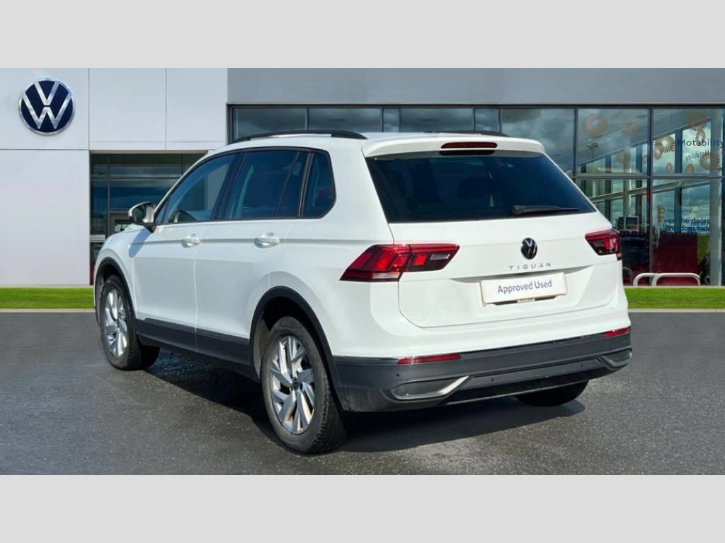 Volkswagen Tiguan 1.5 TSI 150 Life 5dr DSG Adaptive cruise control ACC including speed limiter, App-Connect incl. App-Connect Wireless for Apple CarPlay and Android Auto, Bluetooth phone integration system, Distance control assist, Driver alert system, Dynamic road sign display, eCall emergency call system, Electromechanical speed sensitive power steering, Instrument cluster mph speedometer Great Britain, Lane keeping system Lane Assist, Lights on warning, Multifunction front facing camera, Outside temperature display, Premium multifunction display with multi colour display, Remote control boot opening, Rev counter, Revision / skills operating concept travel assistant, Service interval indicator, Speed limit display, Start/stop system with regenerative braking, Trip computer, Warning sound and light for doors and tailgate open, Battery regeneration during braking, XDS electronic differential lock for improved traction and handling, 4 X 20 watt output, 8 Speakers, Diversity antenna for FM reception, Radio, SD card slot, Simultaneous pairing of 2 compatible mobile devices, SMS functionality - read, compose and send SMS messages using touch-screen display, Title and cover art display, USB C ports, Auto dimming interior rear view mirror, Automatic headlight control system, Body colour door handles, Body coloured bumpers, Body coloured door mirrors with integrated indicators, Coming/leaving home lighting function, Front and rear electric windows, Headlight range control, Heated rear window, High level 3rd brake light, Laminated safety glass windshield, heat and sound insulating, LED headlamps, LED rear combination lamps, LED rear number plate lights, LED separate daytime running light, Privacy glass for rear side windows and rear window, Rain sensor windscreen wipers, Rear exhaust tailpipe, Rear fog lamp, Rear side wing doors, Rear windscreen washer and wiper with interval delay, Side and rear windows in heat insulating glass, Trailer Stability Programme, Windscreen wipers/ intermittent wipe + 4 position delay, 12V outlet in center console rear and in luggage compartment, 12V outlet in front and tray, 2 cup holders in front, 2 LED front reading lights, 2 LED rear reading lights, 3 bench rear seats in 2nd row, 3 rear headrests, 4 load lashing points, 40:20:40 split folding rear seats, Air Care Climatronic 3 zone automatic climate control with enhanced air filter and controls in the rear, Backrest release for left front seat, Climate control unit rear with touch function, Door and side trim panel in foam film and woven fabric, Front centre armrest, Front comfort seats, Front footwell illumination, Front seats head restraints (x-adjustment), Height adjustable front seats, Height/reach adjust steering wheel, Instrument lighting white adjustable panel illumination, Interior light with delay, Isofix Preparation 2 Rear child seats, Leather gear knob, Lockable cooled glovebox, Luggage compartment lighting, Luggage net, Rear bench seat asymetrically split folding, longitudinally movable and folding with load-through hatch and center armrest, Remote unlocking for rear seat backrest, Removable luggage cover, Removable rear headrests, Safety optimised front head restraints, Single front passenger seat, Sliding/reclining rear seats, Standard rear seat release, Storage compartment in driver's door, Storage compartment in passenger's door, Storage compartment in rear doors, Storage compartments in luggage area left and right, Storage tray on dashboard, Sun visors with illuminated vanity mirrors, Variable boot floor, height adjustable and removable, 3 point seat belt for centre rear seats, 3 point seat belts with seat belt pretensioners for the outer rear seats, Active bonnet, Curtain airbags for front and rear passengers, Driver/Front Passenger airbags, Drivers knee airbag, Electronic parking brake with auto hold, Electronic Stability Control with driver steering recommendation, ABS, ASR, EDL, EDTC and trailer stabilization, Front assist with autonomous emergency braking (for Adaptive Cruise Control ACC up to 130 mph), Front disc brakes, Front passenger airbag deactivation, Front side airbags, Height adjustable front 3 point seatbelts + pretensioners, Hill hold control, Manual child proof rear door locks, Pedestrian monitoring system, Power assisted brakes, Rear disc brakes, Rigid safety cell with front and rear crumple zones, Two tone horn, Warning sound and light for front seat belts if unfastened, Anti theft alarm system with interior monitoring, backup horn and towing protection, Anti theft wheel bolts, Electronic engine immobiliser, Weave decorative inserts in dash and front door trim panels, Tool kit