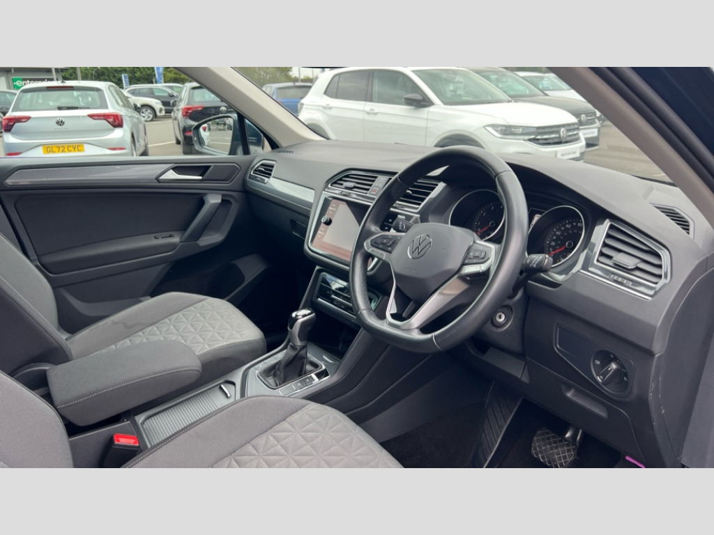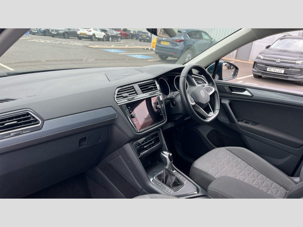 Volkswagen Tiguan 1.5 TSI 150 Life 5dr DSG Adaptive cruise control ACC including speed limiter, App-Connect incl. App-Connect Wireless for Apple CarPlay and Android Auto, Bluetooth phone integration system, Distance control assist, Driver alert system, Dynamic road sign display, eCall emergency call system, Electromechanical speed sensitive power steering, Instrument cluster mph speedometer Great Britain, Lane keeping system Lane Assist, Lights on warning, Multifunction front facing camera, Outside temperature display, Premium multifunction display with multi colour display, Remote control boot opening, Rev counter, Revision / skills operating concept travel assistant, Service interval indicator, Speed limit display, Start/stop system with regenerative braking, Trip computer, Warning sound and light for doors and tailgate open, Battery regeneration during braking, XDS electronic differential lock for improved traction and handling, 4 X 20 watt output, 8 Speakers, Diversity antenna for FM reception, Radio, SD card slot, Simultaneous pairing of 2 compatible mobile devices, SMS functionality - read, compose and send SMS messages using touch-screen display, Title and cover art display, USB C ports, Auto dimming interior rear view mirror, Automatic headlight control system, Body colour door handles, Body coloured bumpers, Body coloured door mirrors with integrated indicators, Coming/leaving home lighting function, Front and rear electric windows, Headlight range control, Heated rear window, High level 3rd brake light, Laminated safety glass windshield, heat and sound insulating, LED headlamps, LED rear combination lamps, LED rear number plate lights, LED separate daytime running light, Privacy glass for rear side windows and rear window, Rain sensor windscreen wipers, Rear exhaust tailpipe, Rear fog lamp, Rear side wing doors, Rear windscreen washer and wiper with interval delay, Side and rear windows in heat insulating glass, Trailer Stability Programme, Windscreen wipers/ intermittent wipe + 4 position delay, 12V outlet in center console rear and in luggage compartment, 12V outlet in front and tray, 2 cup holders in front, 2 LED front reading lights, 2 LED rear reading lights, 3 bench rear seats in 2nd row, 3 rear headrests, 4 load lashing points, 40:20:40 split folding rear seats, Air Care Climatronic 3 zone automatic climate control with enhanced air filter and controls in the rear, Backrest release for left front seat, Climate control unit rear with touch function, Door and side trim panel in foam film and woven fabric, Front centre armrest, Front comfort seats, Front footwell illumination, Front seats head restraints (x-adjustment), Height adjustable front seats, Height/reach adjust steering wheel, Instrument lighting white adjustable panel illumination, Interior light with delay, Isofix Preparation 2 Rear child seats, Leather gear knob, Lockable cooled glovebox, Luggage compartment lighting, Luggage net, Rear bench seat asymetrically split folding, longitudinally movable and folding with load-through hatch and center armrest, Remote unlocking for rear seat backrest, Removable luggage cover, Removable rear headrests, Safety optimised front head restraints, Single front passenger seat, Sliding/reclining rear seats, Standard rear seat release, Storage compartment in driver's door, Storage compartment in passenger's door, Storage compartment in rear doors, Storage compartments in luggage area left and right, Storage tray on dashboard, Sun visors with illuminated vanity mirrors, Variable boot floor, height adjustable and removable, 3 point seat belt for centre rear seats, 3 point seat belts with seat belt pretensioners for the outer rear seats, Active bonnet, Curtain airbags for front and rear passengers, Driver/Front Passenger airbags, Drivers knee airbag, Electronic parking brake with auto hold, Electronic Stability Control with driver steering recommendation, ABS, ASR, EDL, EDTC and trailer stabilization, Front assist with autonomous emergency braking (for Adaptive Cruise Control ACC up to 130 mph), Front disc brakes, Front passenger airbag deactivation, Front side airbags, Height adjustable front 3 point seatbelts + pretensioners, Hill hold control, Manual child proof rear door locks, Pedestrian monitoring system, Power assisted brakes, Rear disc brakes, Rigid safety cell with front and rear crumple zones, Two tone horn, Warning sound and light for front seat belts if unfastened, Anti theft alarm system with interior monitoring, backup horn and towing protection, Anti theft wheel bolts, Electronic engine immobiliser, Weave decorative inserts in dash and front door trim panels, Tool kit
