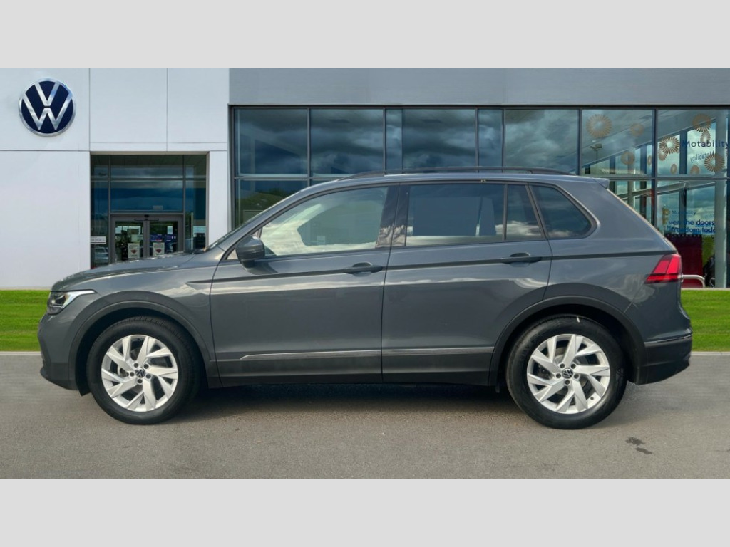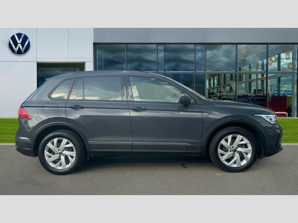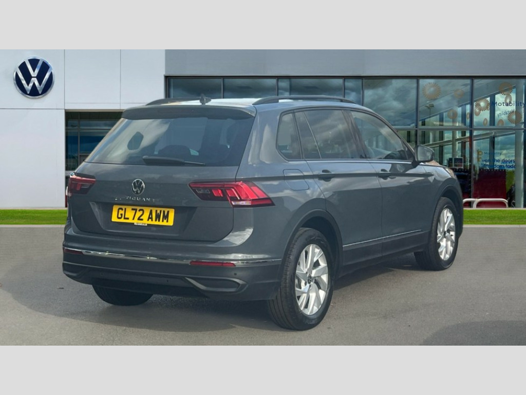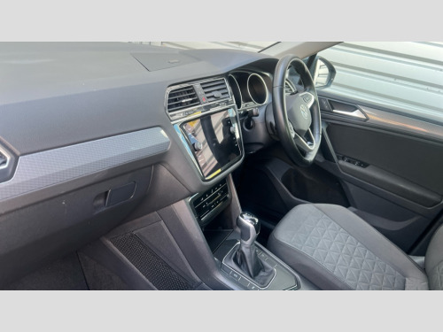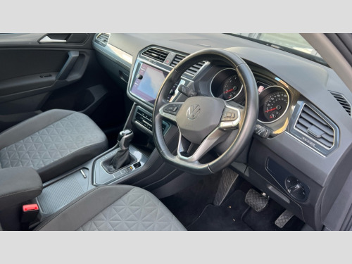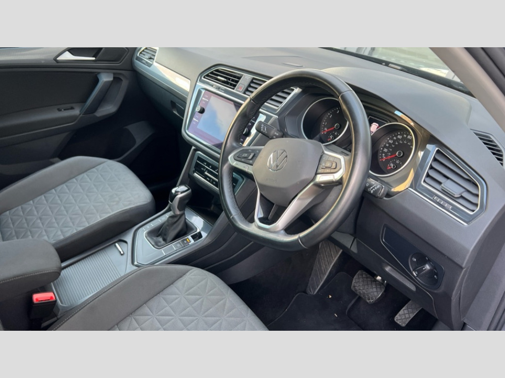 Volkswagen Tiguan 1.5 TSI 150 Life 5dr DSG Adaptive cruise control ACC including speed limiter, App-Connect incl. App-Connect Wireless for Apple CarPlay and Android Auto, Bluetooth phone integration system, Distance control assist, Driver alert system, Dynamic road sign display, eCall emergency call system, Electromechanical speed sensitive power steering, Instrument cluster mph speedometer Great Britain, Lane keeping system Lane Assist, Lights on warning, Multifunction front facing camera, Outside temperature display, Premium multifunction display with multi colour display, Remote control boot opening, Rev counter, Revision / skills operating concept travel assistant, Service interval indicator, Speed limit display, Start/stop system with regenerative braking, Trip computer, Warning sound and light for doors and tailgate open, Battery regeneration during braking, XDS electronic differential lock for improved traction and handling, 4 X 20 watt output, 8 Speakers, Diversity antenna for FM reception, Radio, SD card slot, Simultaneous pairing of 2 compatible mobile devices, SMS functionality - read, compose and send SMS messages using touch-screen display, Title and cover art display, USB C ports, Auto dimming interior rear view mirror, Automatic headlight control system, Body colour door handles, Body coloured bumpers, Body coloured door mirrors with integrated indicators, Coming/leaving home lighting function, Front and rear electric windows, Headlight range control, Heated rear window, High level 3rd brake light, Laminated safety glass windshield, heat and sound insulating, LED headlamps, LED rear combination lamps, LED rear number plate lights, LED separate daytime running light, Privacy glass for rear side windows and rear window, Rain sensor windscreen wipers, Rear exhaust tailpipe, Rear fog lamp, Rear side wing doors, Rear windscreen washer and wiper with interval delay, Side and rear windows in heat insulating glass, Trailer Stability Programme, Windscreen wipers/ intermittent wipe + 4 position delay, 12V outlet in center console rear and in luggage compartment, 12V outlet in front and tray, 2 cup holders in front, 2 LED front reading lights, 2 LED rear reading lights, 3 bench rear seats in 2nd row, 3 rear headrests, 4 load lashing points, 40:20:40 split folding rear seats, Air Care Climatronic 3 zone automatic climate control with enhanced air filter and controls in the rear, Backrest release for left front seat, Climate control unit rear with touch function, Door and side trim panel in foam film and woven fabric, Front centre armrest, Front comfort seats, Front footwell illumination, Front seats head restraints (x-adjustment), Height adjustable front seats, Height/reach adjust steering wheel, Instrument lighting white adjustable panel illumination, Interior light with delay, Isofix Preparation 2 Rear child seats, Leather gear knob, Lockable cooled glovebox, Luggage compartment lighting, Luggage net, Rear bench seat asymetrically split folding, longitudinally movable and folding with load-through hatch and center armrest, Remote unlocking for rear seat backrest, Removable luggage cover, Removable rear headrests, Safety optimised front head restraints, Single front passenger seat, Sliding/reclining rear seats, Standard rear seat release, Storage compartment in driver's door, Storage compartment in passenger's door, Storage compartment in rear doors, Storage compartments in luggage area left and right, Storage tray on dashboard, Sun visors with illuminated vanity mirrors, Variable boot floor, height adjustable and removable, 3 point seat belt for centre rear seats, 3 point seat belts with seat belt pretensioners for the outer rear seats, Active bonnet, Curtain airbags for front and rear passengers, Driver/Front Passenger airbags, Drivers knee airbag, Electronic parking brake with auto hold, Electronic Stability Control with driver steering recommendation, ABS, ASR, EDL, EDTC and trailer stabilization, Front assist with autonomous emergency braking (for Adaptive Cruise Control ACC up to 130 mph), Front disc brakes, Front passenger airbag deactivation, Front side airbags, Height adjustable front 3 point seatbelts + pretensioners, Hill hold control, Manual child proof rear door locks, Pedestrian monitoring system, Power assisted brakes, Rear disc brakes, Rigid safety cell with front and rear crumple zones, Two tone horn, Warning sound and light for front seat belts if unfastened, Anti theft alarm system with interior monitoring, backup horn and towing protection, Anti theft wheel bolts, Electronic engine immobiliser, Weave decorative inserts in dash and front door trim panels, Tool kit