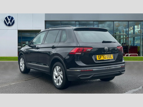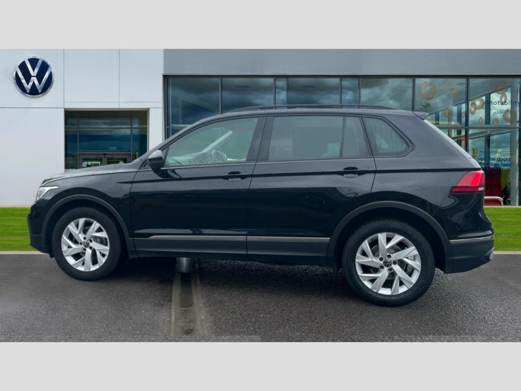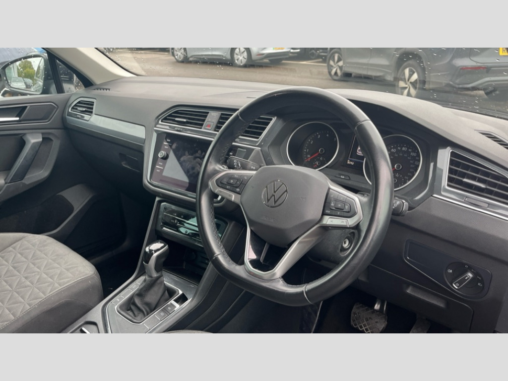 Volkswagen Tiguan 1.5 TSI 150 Life 5dr DSG Adaptive cruise control ACC including speed limiter, App-Connect incl. App-Connect Wireless for Apple CarPlay and Android Auto, Bluetooth phone integration system, Distance control assist, Driver alert system, Dynamic road sign display, eCall emergency call system, Electromechanical speed sensitive power steering, Instrument cluster mph speedometer Great Britain, Lane keeping system Lane Assist, Lights on warning, Multifunction front facing camera, Outside temperature display, Premium multifunction display with multi colour display, Remote control boot opening, Rev counter, Revision / skills operating concept travel assistant, Service interval indicator, Speed limit display, Start/stop system with regenerative braking, Trip computer, Warning sound and light for doors and tailgate open, Battery regeneration during braking, XDS electronic differential lock for improved traction and handling, 4 X 20 watt output, 8 Speakers, Diversity antenna for FM reception, Radio, SD card slot, Simultaneous pairing of 2 compatible mobile devices, SMS functionality - read, compose and send SMS messages using touch-screen display, Title and cover art display, USB C ports, Auto dimming interior rear view mirror, Automatic headlight control system, Body colour door handles, Body coloured bumpers, Body coloured door mirrors with integrated indicators, Coming/leaving home lighting function, Front and rear electric windows, Headlight range control, Heated rear window, High level 3rd brake light, Laminated safety glass windshield, heat and sound insulating, LED headlamps, LED rear combination lamps, LED rear number plate lights, LED separate daytime running light, Privacy glass for rear side windows and rear window, Rain sensor windscreen wipers, Rear exhaust tailpipe, Rear fog lamp, Rear side wing doors, Rear windscreen washer and wiper with interval delay, Side and rear windows in heat insulating glass, Trailer Stability Programme, Windscreen wipers/ intermittent wipe + 4 position delay, 12V outlet in center console rear and in luggage compartment, 12V outlet in front and tray, 2 cup holders in front, 2 LED front reading lights, 2 LED rear reading lights, 3 bench rear seats in 2nd row, 3 rear headrests, 4 load lashing points, 40:20:40 split folding rear seats, Air Care Climatronic 3 zone automatic climate control with enhanced air filter and controls in the rear, Backrest release for left front seat, Climate control unit rear with touch function, Door and side trim panel in foam film and woven fabric, Front centre armrest, Front comfort seats, Front footwell illumination, Front seats head restraints (x-adjustment), Height adjustable front seats, Height/reach adjust steering wheel, Instrument lighting white adjustable panel illumination, Interior light with delay, Isofix Preparation 2 Rear child seats, Leather gear knob, Lockable cooled glovebox, Luggage compartment lighting, Luggage net, Rear bench seat asymetrically split folding, longitudinally movable and folding with load-through hatch and center armrest, Remote unlocking for rear seat backrest, Removable luggage cover, Removable rear headrests, Safety optimised front head restraints, Single front passenger seat, Sliding/reclining rear seats, Standard rear seat release, Storage compartment in driver's door, Storage compartment in passenger's door, Storage compartment in rear doors, Storage compartments in luggage area left and right, Storage tray on dashboard, Sun visors with illuminated vanity mirrors, Variable boot floor, height adjustable and removable, 3 point seat belt for centre rear seats, 3 point seat belts with seat belt pretensioners for the outer rear seats, Active bonnet, Curtain airbags for front and rear passengers, Driver/Front Passenger airbags, Drivers knee airbag, Electronic parking brake with auto hold, Electronic Stability Control with driver steering recommendation, ABS, ASR, EDL, EDTC and trailer stabilization, Front assist with autonomous emergency braking (for Adaptive Cruise Control ACC up to 130 mph), Front disc brakes, Front passenger airbag deactivation, Front side airbags, Height adjustable front 3 point seatbelts + pretensioners, Hill hold control, Manual child proof rear door locks, Pedestrian monitoring system, Power assisted brakes, Rear disc brakes, Rigid safety cell with front and rear crumple zones, Two tone horn, Warning sound and light for front seat belts if unfastened, Anti theft alarm system with interior monitoring, backup horn and towing protection, Anti theft wheel bolts, Electronic engine immobiliser, Weave decorative inserts in dash and front door trim panels, Tool kit
