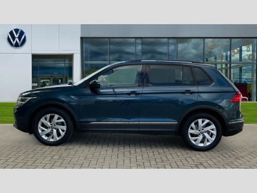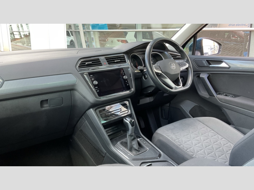 Volkswagen Tiguan 1.5 TSI 150 Life 5dr DSG Adaptive cruise control ACC including speed limiter, App-Connect incl. App-Connect Wireless for Apple CarPlay and Android Auto, Bluetooth phone integration system, Distance control assist, Driver alert system, Dynamic road sign display, eCall emergency call system, Electromechanical speed sensitive power steering, Instrument cluster mph speedometer Great Britain, Lane keeping system Lane Assist, Lights on warning, Multifunction front facing camera, Outside temperature display, Premium multifunction display with multi colour display, Remote control boot opening, Rev counter, Revision / skills operating concept travel assistant, Service interval indicator, Speed limit display, Start/stop system with regenerative braking, Trip computer, Warning sound and light for doors and tailgate open, Battery regeneration during braking, XDS electronic differential lock for improved traction and handling, 4 X 20 watt output, 8 Speakers, Diversity antenna for FM reception, Radio, SD card slot, Simultaneous pairing of 2 compatible mobile devices, SMS functionality - read, compose and send SMS messages using touch-screen display, Title and cover art display, USB C ports, Auto dimming interior rear view mirror, Automatic headlight control system, Body colour door handles, Body coloured bumpers, Body coloured door mirrors with integrated indicators, Coming/leaving home lighting function, Front and rear electric windows, Headlight range control, Heated rear window, High level 3rd brake light, Laminated safety glass windshield, heat and sound insulating, LED headlamps, LED rear combination lamps, LED rear number plate lights, LED separate daytime running light, Privacy glass for rear side windows and rear window, Rain sensor windscreen wipers, Rear exhaust tailpipe, Rear fog lamp, Rear side wing doors, Rear windscreen washer and wiper with interval delay, Side and rear windows in heat insulating glass, Trailer Stability Programme, Windscreen wipers/ intermittent wipe + 4 position delay, 12V outlet in center console rear and in luggage compartment, 12V outlet in front and tray, 2 cup holders in front, 2 LED front reading lights, 2 LED rear reading lights, 3 bench rear seats in 2nd row, 3 rear headrests, 4 load lashing points, 40:20:40 split folding rear seats, Air Care Climatronic 3 zone automatic climate control with enhanced air filter and controls in the rear, Backrest release for left front seat, Climate control unit rear with touch function, Door and side trim panel in foam film and woven fabric, Front centre armrest, Front comfort seats, Front footwell illumination, Front seats head restraints (x-adjustment), Height adjustable front seats, Height/reach adjust steering wheel, Instrument lighting white adjustable panel illumination, Interior light with delay, Isofix Preparation 2 Rear child seats, Leather gear knob, Lockable cooled glovebox, Luggage compartment lighting, Luggage net, Rear bench seat asymetrically split folding, longitudinally movable and folding with load-through hatch and center armrest, Remote unlocking for rear seat backrest, Removable luggage cover, Removable rear headrests, Safety optimised front head restraints, Single front passenger seat, Sliding/reclining rear seats, Standard rear seat release, Storage compartment in driver's door, Storage compartment in passenger's door, Storage compartment in rear doors, Storage compartments in luggage area left and right, Storage tray on dashboard, Sun visors with illuminated vanity mirrors, Variable boot floor, height adjustable and removable, 3 point seat belt for centre rear seats, 3 point seat belts with seat belt pretensioners for the outer rear seats, Active bonnet, Curtain airbags for front and rear passengers, Driver/Front Passenger airbags, Drivers knee airbag, Electronic parking brake with auto hold, Electronic Stability Control with driver steering recommendation, ABS, ASR, EDL, EDTC and trailer stabilization, Front assist with autonomous emergency braking (for Adaptive Cruise Control ACC up to 130 mph), Front disc brakes, Front passenger airbag deactivation, Front side airbags, Height adjustable front 3 point seatbelts + pretensioners, Hill hold control, Manual child proof rear door locks, Pedestrian monitoring system, Power assisted brakes, Rear disc brakes, Rigid safety cell with front and rear crumple zones, Two tone horn, Warning sound and light for front seat belts if unfastened, Anti theft alarm system with interior monitoring, backup horn and towing protection, Anti theft wheel bolts, Electronic engine immobiliser, Weave decorative inserts in dash and front door trim panels, Tool kit