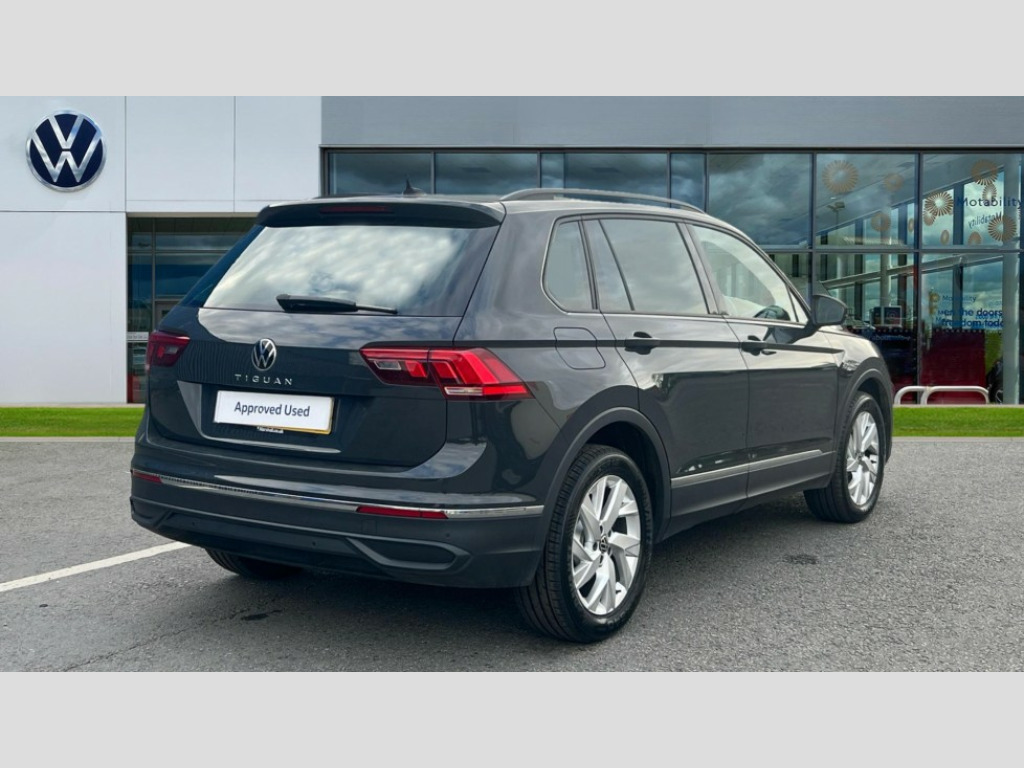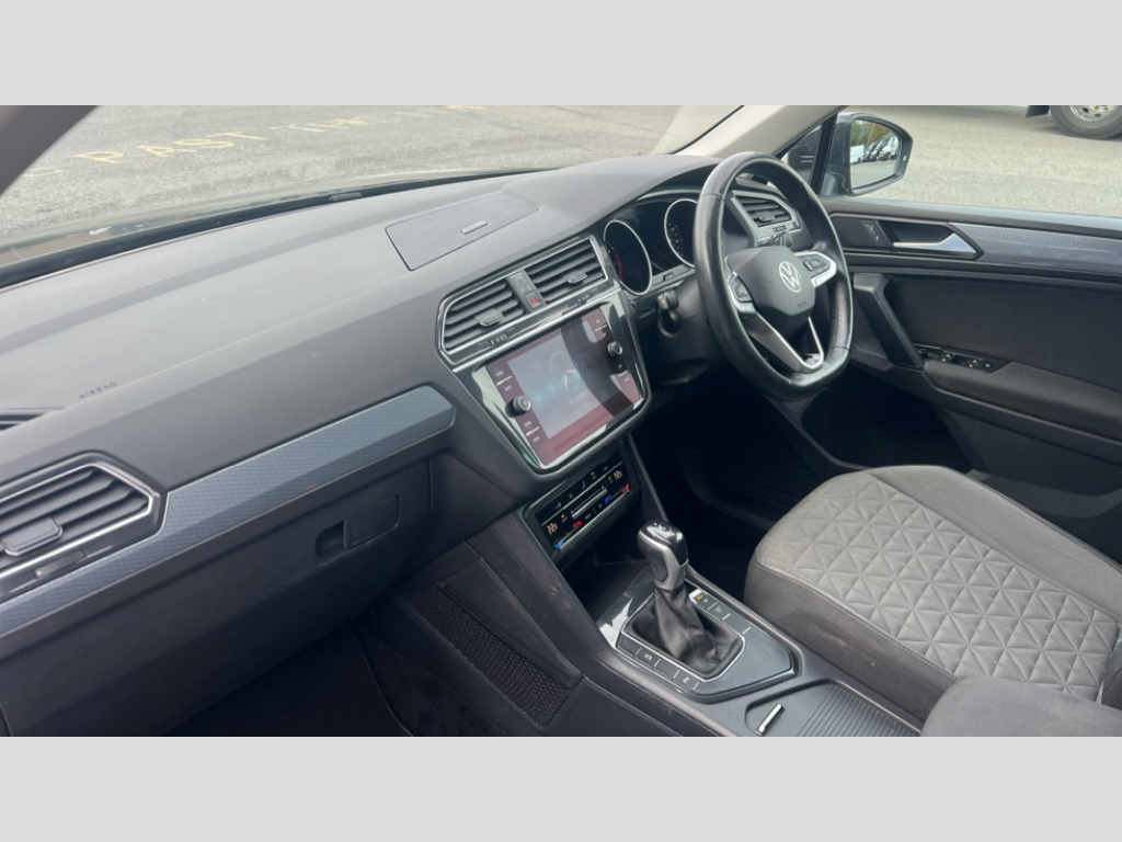 Volkswagen Tiguan 1.5 TSI 150 Life 5dr DSG Adaptive cruise control ACC including speed limiter, App-Connect incl. App-Connect Wireless for Apple CarPlay and Android Auto, Bluetooth phone integration system, Distance control assist, Driver alert system, Dynamic road sign display, eCall emergency call system, Electromechanical speed sensitive power steering, Instrument cluster mph speedometer Great Britain, Lane keeping system Lane Assist, Lights on warning, Multifunction front facing camera, Outside temperature display, Premium multifunction display with multi colour display, Remote control boot opening, Rev counter, Revision / skills operating concept travel assistant, Service interval indicator, Speed limit display, Start/stop system with regenerative braking, Trip computer, Warning sound and light for doors and tailgate open, Battery regeneration during braking, XDS electronic differential lock for improved traction and handling, 4 X 20 watt output, 8 Speakers, Diversity antenna for FM reception, Radio, SD card slot, Simultaneous pairing of 2 compatible mobile devices, SMS functionality - read, compose and send SMS messages using touch-screen display, Title and cover art display, USB C ports, Auto dimming interior rear view mirror, Automatic headlight control system, Body colour door handles, Body coloured bumpers, Body coloured door mirrors with integrated indicators, Coming/leaving home lighting function, Front and rear electric windows, Headlight range control, Heated rear window, High level 3rd brake light, Laminated safety glass windshield, heat and sound insulating, LED headlamps, LED rear combination lamps, LED rear number plate lights, LED separate daytime running light, Privacy glass for rear side windows and rear window, Rain sensor windscreen wipers, Rear exhaust tailpipe, Rear fog lamp, Rear side wing doors, Rear windscreen washer and wiper with interval delay, Side and rear windows in heat insulating glass, Trailer Stability Programme, Windscreen wipers/ intermittent wipe + 4 position delay, 12V outlet in center console rear and in luggage compartment, 12V outlet in front and tray, 2 cup holders in front, 2 LED front reading lights, 2 LED rear reading lights, 3 bench rear seats in 2nd row, 3 rear headrests, 4 load lashing points, 40:20:40 split folding rear seats, Air Care Climatronic 3 zone automatic climate control with enhanced air filter and controls in the rear, Backrest release for left front seat, Climate control unit rear with touch function, Door and side trim panel in foam film and woven fabric, Front centre armrest, Front comfort seats, Front footwell illumination, Front seats head restraints (x-adjustment), Height adjustable front seats, Height/reach adjust steering wheel, Instrument lighting white adjustable panel illumination, Interior light with delay, Isofix Preparation 2 Rear child seats, Leather gear knob, Lockable cooled glovebox, Luggage compartment lighting, Luggage net, Rear bench seat asymetrically split folding, longitudinally movable and folding with load-through hatch and center armrest, Remote unlocking for rear seat backrest, Removable luggage cover, Removable rear headrests, Safety optimised front head restraints, Single front passenger seat, Sliding/reclining rear seats, Standard rear seat release, Storage compartment in driver's door, Storage compartment in passenger's door, Storage compartment in rear doors, Storage compartments in luggage area left and right, Storage tray on dashboard, Sun visors with illuminated vanity mirrors, Variable boot floor, height adjustable and removable, 3 point seat belt for centre rear seats, 3 point seat belts with seat belt pretensioners for the outer rear seats, Active bonnet, Curtain airbags for front and rear passengers, Driver/Front Passenger airbags, Drivers knee airbag, Electronic parking brake with auto hold, Electronic Stability Control with driver steering recommendation, ABS, ASR, EDL, EDTC and trailer stabilization, Front assist with autonomous emergency braking (for Adaptive Cruise Control ACC up to 130 mph), Front disc brakes, Front passenger airbag deactivation, Front side airbags, Height adjustable front 3 point seatbelts + pretensioners, Hill hold control, Manual child proof rear door locks, Pedestrian monitoring system, Power assisted brakes, Rear disc brakes, Rigid safety cell with front and rear crumple zones, Two tone horn, Warning sound and light for front seat belts if unfastened, Anti theft alarm system with interior monitoring, backup horn and towing protection, Anti theft wheel bolts, Electronic engine immobiliser, Weave decorative inserts in dash and front door trim panels, Tool kit
