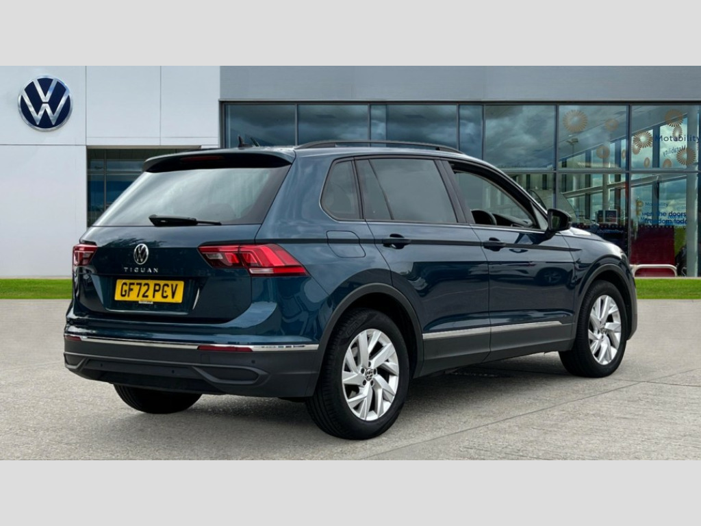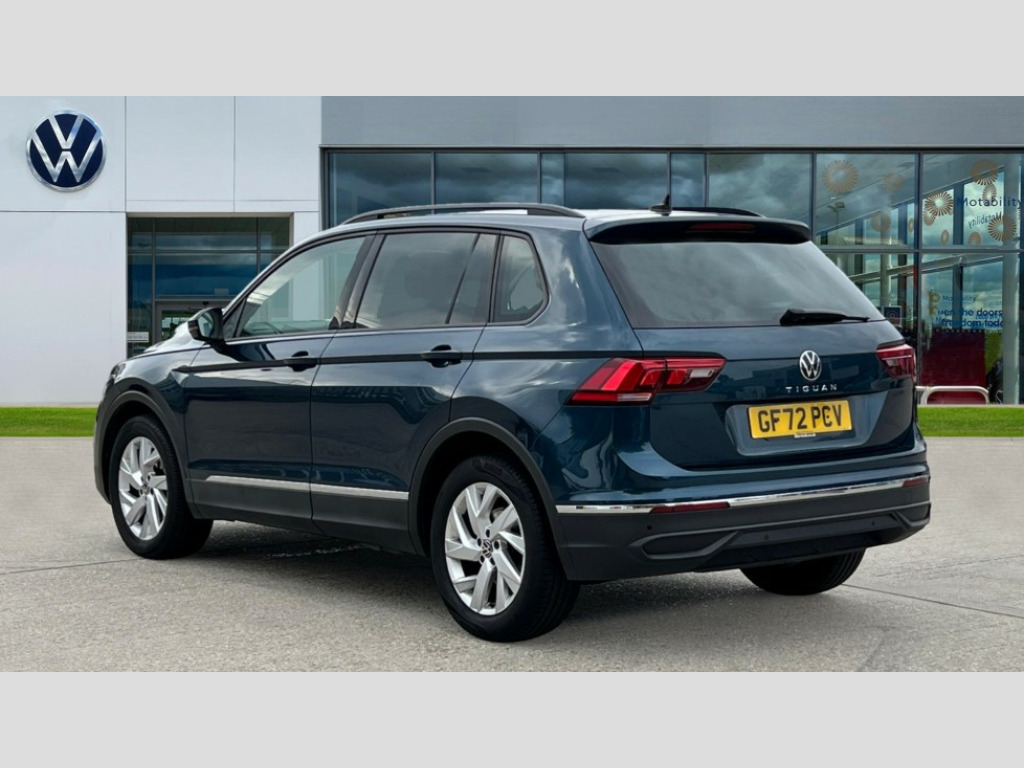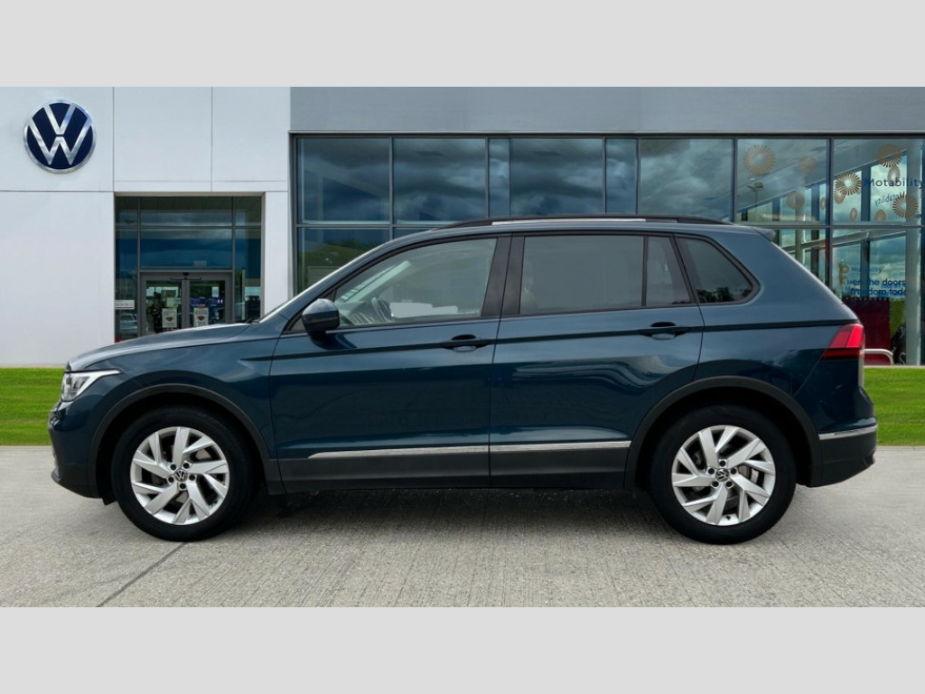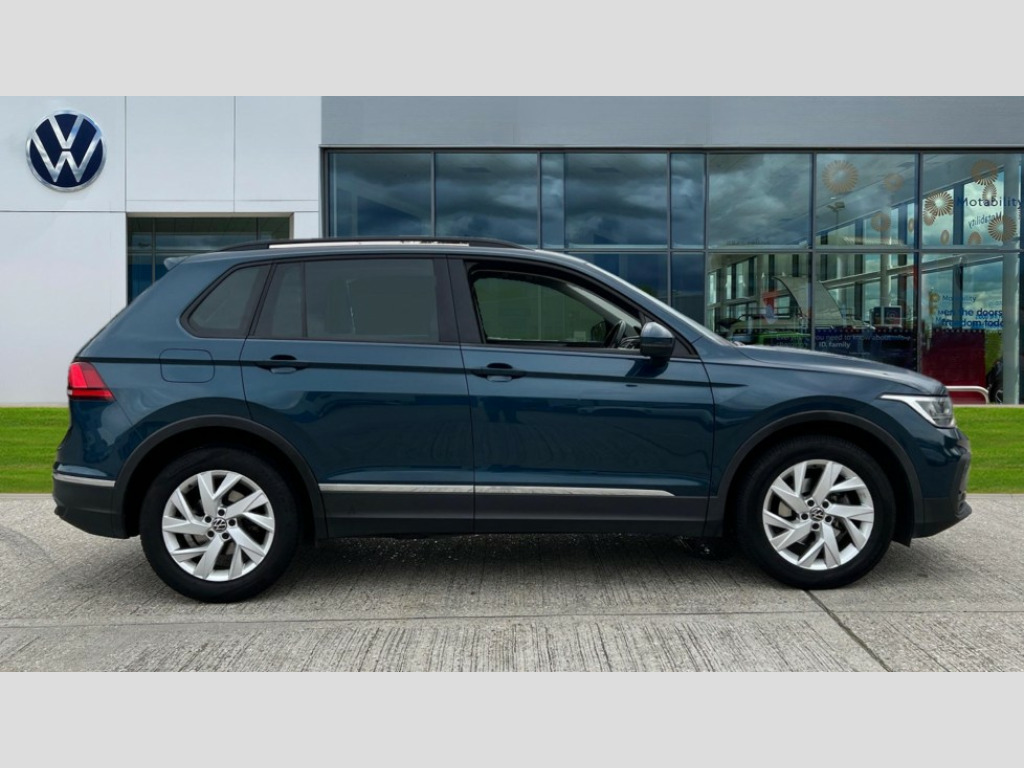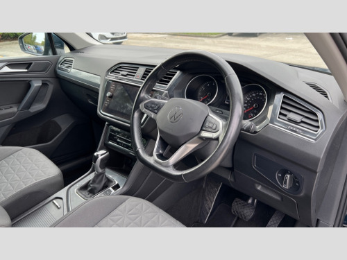 Volkswagen Tiguan 1.5 TSI 150 Life 5dr DSG Adaptive cruise control ACC including speed limiter, App-Connect incl. App-Connect Wireless for Apple CarPlay and Android Auto, Bluetooth phone integration system, Distance control assist, Driver alert system, Dynamic road sign display, eCall emergency call system, Electromechanical speed sensitive power steering, Instrument cluster mph speedometer Great Britain, Lane keeping system Lane Assist, Lights on warning, Multifunction front facing camera, Outside temperature display, Premium multifunction display with multi colour display, Remote control boot opening, Rev counter, Revision / skills operating concept travel assistant, Service interval indicator, Speed limit display, Start/stop system with regenerative braking, Trip computer, Warning sound and light for doors and tailgate open, Battery regeneration during braking, XDS electronic differential lock for improved traction and handling, 4 X 20 watt output, 8 Speakers, Diversity antenna for FM reception, Radio, SD card slot, Simultaneous pairing of 2 compatible mobile devices, SMS functionality - read, compose and send SMS messages using touch-screen display, Title and cover art display, USB C ports, Auto dimming interior rear view mirror, Automatic headlight control system, Body colour door handles, Body coloured bumpers, Body coloured door mirrors with integrated indicators, Coming/leaving home lighting function, Front and rear electric windows, Headlight range control, Heated rear window, High level 3rd brake light, Laminated safety glass windshield, heat and sound insulating, LED headlamps, LED rear combination lamps, LED rear number plate lights, LED separate daytime running light, Privacy glass for rear side windows and rear window, Rain sensor windscreen wipers, Rear exhaust tailpipe, Rear fog lamp, Rear side wing doors, Rear windscreen washer and wiper with interval delay, Side and rear windows in heat insulating glass, Trailer Stability Programme, Windscreen wipers/ intermittent wipe + 4 position delay, 12V outlet in center console rear and in luggage compartment, 12V outlet in front and tray, 2 cup holders in front, 2 LED front reading lights, 2 LED rear reading lights, 3 bench rear seats in 2nd row, 3 rear headrests, 4 load lashing points, 40:20:40 split folding rear seats, Air Care Climatronic 3 zone automatic climate control with enhanced air filter and controls in the rear, Backrest release for left front seat, Climate control unit rear with touch function, Door and side trim panel in foam film and woven fabric, Front centre armrest, Front comfort seats, Front footwell illumination, Front seats head restraints (x-adjustment), Height adjustable front seats, Height/reach adjust steering wheel, Instrument lighting white adjustable panel illumination, Interior light with delay, Isofix Preparation 2 Rear child seats, Leather gear knob, Lockable cooled glovebox, Luggage compartment lighting, Luggage net, Rear bench seat asymetrically split folding, longitudinally movable and folding with load-through hatch and center armrest, Remote unlocking for rear seat backrest, Removable luggage cover, Removable rear headrests, Safety optimised front head restraints, Single front passenger seat, Sliding/reclining rear seats, Standard rear seat release, Storage compartment in driver's door, Storage compartment in passenger's door, Storage compartment in rear doors, Storage compartments in luggage area left and right, Storage tray on dashboard, Sun visors with illuminated vanity mirrors, Variable boot floor, height adjustable and removable, 3 point seat belt for centre rear seats, 3 point seat belts with seat belt pretensioners for the outer rear seats, Active bonnet, Curtain airbags for front and rear passengers, Driver/Front Passenger airbags, Drivers knee airbag, Electronic parking brake with auto hold, Electronic Stability Control with driver steering recommendation, ABS, ASR, EDL, EDTC and trailer stabilization, Front assist with autonomous emergency braking (for Adaptive Cruise Control ACC up to 130 mph), Front disc brakes, Front passenger airbag deactivation, Front side airbags, Height adjustable front 3 point seatbelts + pretensioners, Hill hold control, Manual child proof rear door locks, Pedestrian monitoring system, Power assisted brakes, Rear disc brakes, Rigid safety cell with front and rear crumple zones, Two tone horn, Warning sound and light for front seat belts if unfastened, Anti theft alarm system with interior monitoring, backup horn and towing protection, Anti theft wheel bolts, Electronic engine immobiliser, Weave decorative inserts in dash and front door trim panels, Tool kit