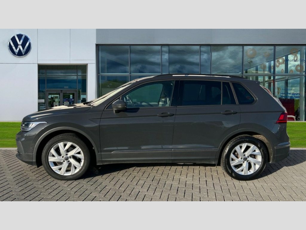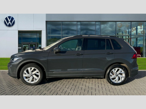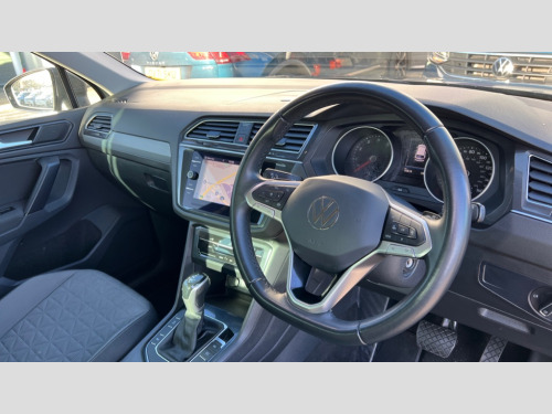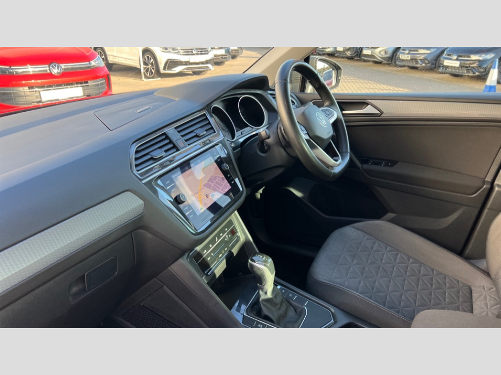Volkswagen Tiguan 1.5 TSI 150 Life 5dr DSG Adaptive cruise control ACC including speed limiter, App-Connect incl. App-Connect Wireless for Apple CarPlay and Android Auto, Bluetooth phone integration system, Distance control assist, Driver alert system, Dynamic road sign display, eCall emergency call system, Electromechanical speed sensitive power steering, Instrument cluster mph speedometer Great Britain, Lane keeping system Lane Assist, Lights on warning, Multifunction front facing camera, Outside temperature display, Premium multifunction display with multi colour display, Remote control boot opening, Rev counter, Revision / skills operating concept travel assistant, Service interval indicator, Speed limit display, Start/stop system with regenerative braking, Trip computer, Warning sound and light for doors and tailgate open, Battery regeneration during braking, XDS electronic differential lock for improved traction and handling, 4 X 20 watt output, 8 Speakers, Diversity antenna for FM reception, Radio, SD card slot, Simultaneous pairing of 2 compatible mobile devices, SMS functionality - read, compose and send SMS messages using touch-screen display, Title and cover art display, USB C ports, Auto dimming interior rear view mirror, Automatic headlight control system, Body colour door handles, Body coloured bumpers, Body coloured door mirrors with integrated indicators, Coming/leaving home lighting function, Front and rear electric windows, Headlight range control, Heated rear window, High level 3rd brake light, Laminated safety glass windshield, heat and sound insulating, LED headlamps, LED rear combination lamps, LED rear number plate lights, LED separate daytime running light, Privacy glass for rear side windows and rear window, Rain sensor windscreen wipers, Rear exhaust tailpipe, Rear fog lamp, Rear side wing doors, Rear windscreen washer and wiper with interval delay, Side and rear windows in heat insulating glass, Trailer Stability Programme, Windscreen wipers/ intermittent wipe + 4 position delay, 12V outlet in center console rear and in luggage compartment, 12V outlet in front and tray, 2 cup holders in front, 2 LED front reading lights, 2 LED rear reading lights, 3 bench rear seats in 2nd row, 3 rear headrests, 4 load lashing points, 40:20:40 split folding rear seats, Air Care Climatronic 3 zone automatic climate control with enhanced air filter and controls in the rear, Backrest release for left front seat, Climate control unit rear with touch function, Door and side trim panel in foam film and woven fabric, Front centre armrest, Front comfort seats, Front footwell illumination, Front seats head restraints (x-adjustment), Height adjustable front seats, Height/reach adjust steering wheel, Instrument lighting white adjustable panel illumination, Interior light with delay, Isofix Preparation 2 Rear child seats, Leather gear knob, Lockable cooled glovebox, Luggage compartment lighting, Luggage net, Rear bench seat asymetrically split folding, longitudinally movable and folding with load-through hatch and center armrest, Remote unlocking for rear seat backrest, Removable luggage cover, Removable rear headrests, Safety optimised front head restraints, Single front passenger seat, Sliding/reclining rear seats, Standard rear seat release, Storage compartment in driver's door, Storage compartment in passenger's door, Storage compartment in rear doors, Storage compartments in luggage area left and right, Storage tray on dashboard, Sun visors with illuminated vanity mirrors, Variable boot floor, height adjustable and removable, 3 point seat belt for centre rear seats, 3 point seat belts with seat belt pretensioners for the outer rear seats, Active bonnet, Curtain airbags for front and rear passengers, Driver/Front Passenger airbags, Drivers knee airbag, Electronic parking brake with auto hold, Electronic Stability Control with driver steering recommendation, ABS, ASR, EDL, EDTC and trailer stabilization, Front assist with autonomous emergency braking (for Adaptive Cruise Control ACC up to 130 mph), Front disc brakes, Front passenger airbag deactivation, Front side airbags, Height adjustable front 3 point seatbelts + pretensioners, Hill hold control, Manual child proof rear door locks, Pedestrian monitoring system, Power assisted brakes, Rear disc brakes, Rigid safety cell with front and rear crumple zones, Two tone horn, Warning sound and light for front seat belts if unfastened, Anti theft alarm system with interior monitoring, backup horn and towing protection, Anti theft wheel bolts, Electronic engine immobiliser, Weave decorative inserts in dash and front door trim panels, Tool kit
