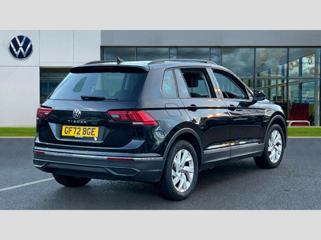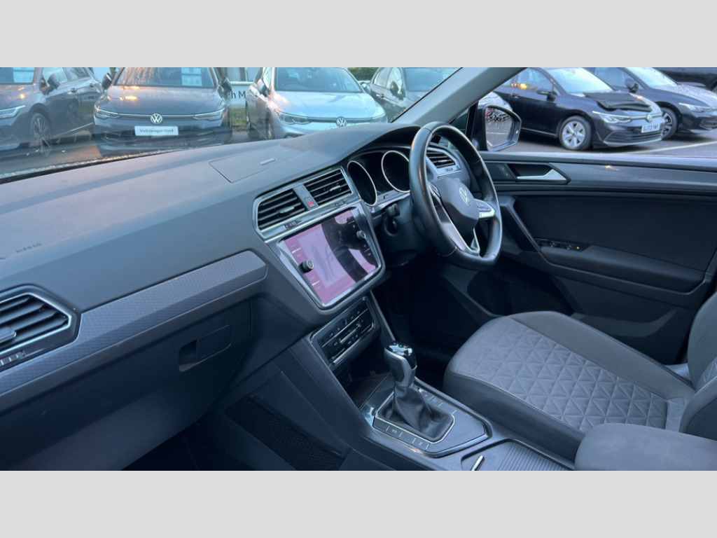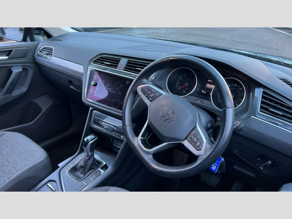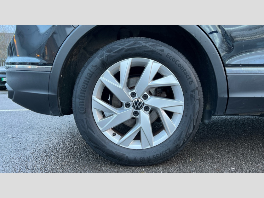 Volkswagen Tiguan 1.5 TSI 150 Life 5dr DSG Adaptive cruise control ACC including speed limiter, App-Connect incl. App-Connect Wireless for Apple CarPlay and Android Auto, Bluetooth phone integration system, Distance control assist, Driver alert system, Dynamic road sign display, eCall emergency call system, Electromechanical speed sensitive power steering, Instrument cluster mph speedometer Great Britain, Lane keeping system Lane Assist, Lights on warning, Multifunction front facing camera, Outside temperature display, Premium multifunction display with multi colour display, Remote control boot opening, Rev counter, Revision / skills operating concept travel assistant, Service interval indicator, Speed limit display, Start/stop system with regenerative braking, Trip computer, Warning sound and light for doors and tailgate open, Battery regeneration during braking, XDS electronic differential lock for improved traction and handling, 4 X 20 watt output, 8 Speakers, Diversity antenna for FM reception, Radio, SD card slot, Simultaneous pairing of 2 compatible mobile devices, SMS functionality - read, compose and send SMS messages using touch-screen display, Title and cover art display, USB C ports, Auto dimming interior rear view mirror, Automatic headlight control system, Body colour door handles, Body coloured bumpers, Body coloured door mirrors with integrated indicators, Coming/leaving home lighting function, Front and rear electric windows, Headlight range control, Heated rear window, High level 3rd brake light, Laminated safety glass windshield, heat and sound insulating, LED headlamps, LED rear combination lamps, LED rear number plate lights, LED separate daytime running light, Privacy glass for rear side windows and rear window, Rain sensor windscreen wipers, Rear exhaust tailpipe, Rear fog lamp, Rear side wing doors, Rear windscreen washer and wiper with interval delay, Side and rear windows in heat insulating glass, Trailer Stability Programme, Windscreen wipers/ intermittent wipe + 4 position delay, 12V outlet in center console rear and in luggage compartment, 12V outlet in front and tray, 2 cup holders in front, 2 LED front reading lights, 2 LED rear reading lights, 3 bench rear seats in 2nd row, 3 rear headrests, 4 load lashing points, 40:20:40 split folding rear seats, Air Care Climatronic 3 zone automatic climate control with enhanced air filter and controls in the rear, Backrest release for left front seat, Climate control unit rear with touch function, Door and side trim panel in foam film and woven fabric, Front centre armrest, Front comfort seats, Front footwell illumination, Front seats head restraints (x-adjustment), Height adjustable front seats, Height/reach adjust steering wheel, Instrument lighting white adjustable panel illumination, Interior light with delay, Isofix Preparation 2 Rear child seats, Leather gear knob, Lockable cooled glovebox, Luggage compartment lighting, Luggage net, Rear bench seat asymetrically split folding, longitudinally movable and folding with load-through hatch and center armrest, Remote unlocking for rear seat backrest, Removable luggage cover, Removable rear headrests, Safety optimised front head restraints, Single front passenger seat, Sliding/reclining rear seats, Standard rear seat release, Storage compartment in driver's door, Storage compartment in passenger's door, Storage compartment in rear doors, Storage compartments in luggage area left and right, Storage tray on dashboard, Sun visors with illuminated vanity mirrors, Variable boot floor, height adjustable and removable, 3 point seat belt for centre rear seats, 3 point seat belts with seat belt pretensioners for the outer rear seats, Active bonnet, Curtain airbags for front and rear passengers, Driver/Front Passenger airbags, Drivers knee airbag, Electronic parking brake with auto hold, Electronic Stability Control with driver steering recommendation, ABS, ASR, EDL, EDTC and trailer stabilization, Front assist with autonomous emergency braking (for Adaptive Cruise Control ACC up to 130 mph), Front disc brakes, Front passenger airbag deactivation, Front side airbags, Height adjustable front 3 point seatbelts + pretensioners, Hill hold control, Manual child proof rear door locks, Pedestrian monitoring system, Power assisted brakes, Rear disc brakes, Rigid safety cell with front and rear crumple zones, Two tone horn, Warning sound and light for front seat belts if unfastened, Anti theft alarm system with interior monitoring, backup horn and towing protection, Anti theft wheel bolts, Electronic engine immobiliser, Weave decorative inserts in dash and front door trim panels, Tool kit