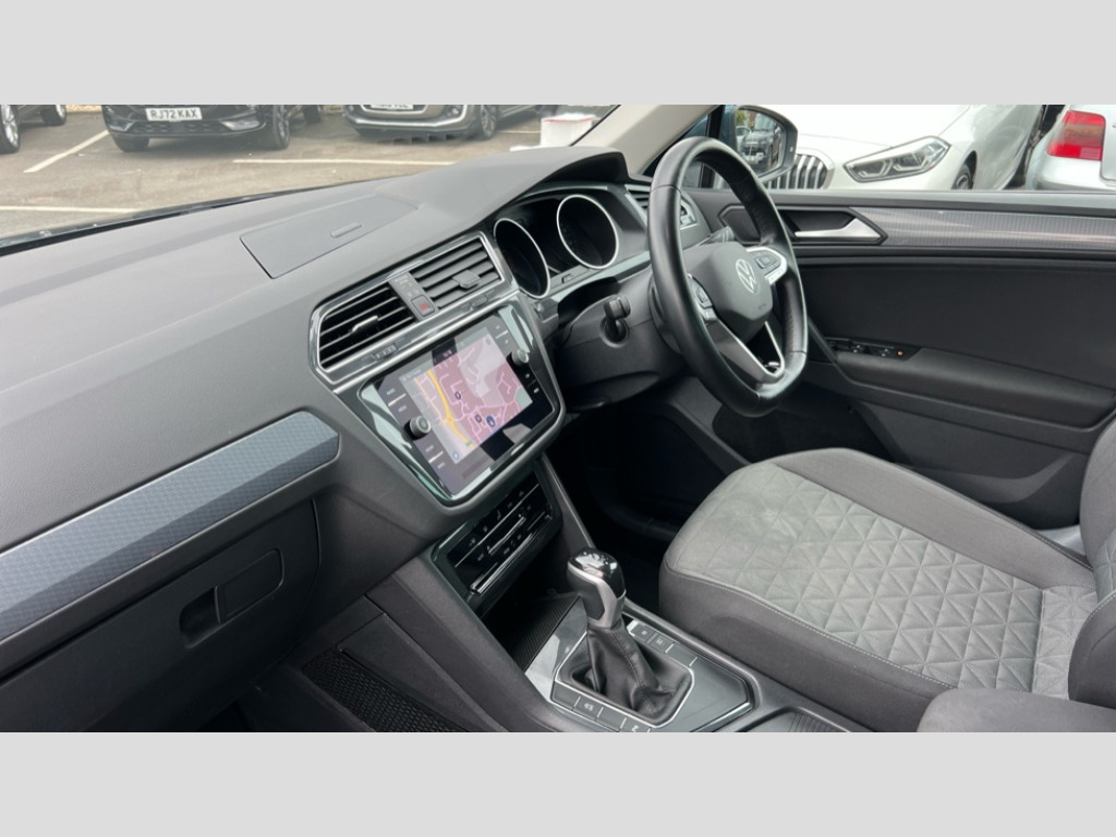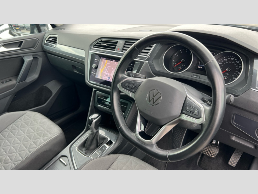 Volkswagen Tiguan 1.5 TSI 150 Life 5dr DSG Adaptive cruise control ACC including speed limiter, App-Connect incl. App-Connect Wireless for Apple CarPlay and Android Auto, Bluetooth phone integration system, Distance control assist, Driver alert system, Dynamic road sign display, eCall emergency call system, Electromechanical speed sensitive power steering, Instrument cluster mph speedometer Great Britain, Lane keeping system Lane Assist, Lights on warning, Multifunction front facing camera, Outside temperature display, Premium multifunction display with multi colour display, Remote control boot opening, Rev counter, Revision / skills operating concept travel assistant, Service interval indicator, Speed limit display, Start/stop system with regenerative braking, Trip computer, Warning sound and light for doors and tailgate open, Battery regeneration during braking, XDS electronic differential lock for improved traction and handling, 4 X 20 watt output, 8 Speakers, Diversity antenna for FM reception, Radio, SD card slot, Simultaneous pairing of 2 compatible mobile devices, SMS functionality - read, compose and send SMS messages using touch-screen display, Title and cover art display, USB C ports, Auto dimming interior rear view mirror, Automatic headlight control system, Body colour door handles, Body coloured bumpers, Body coloured door mirrors with integrated indicators, Coming/leaving home lighting function, Front and rear electric windows, Headlight range control, Heated rear window, High level 3rd brake light, Laminated safety glass windshield, heat and sound insulating, LED headlamps, LED rear combination lamps, LED rear number plate lights, LED separate daytime running light, Privacy glass for rear side windows and rear window, Rain sensor windscreen wipers, Rear exhaust tailpipe, Rear fog lamp, Rear side wing doors, Rear windscreen washer and wiper with interval delay, Side and rear windows in heat insulating glass, Trailer Stability Programme, Windscreen wipers/ intermittent wipe + 4 position delay, 12V outlet in center console rear and in luggage compartment, 12V outlet in front and tray, 2 cup holders in front, 2 LED front reading lights, 2 LED rear reading lights, 3 bench rear seats in 2nd row, 3 rear headrests, 4 load lashing points, 40:20:40 split folding rear seats, Air Care Climatronic 3 zone automatic climate control with enhanced air filter and controls in the rear, Backrest release for left front seat, Climate control unit rear with touch function, Door and side trim panel in foam film and woven fabric, Front centre armrest, Front comfort seats, Front footwell illumination, Front seats head restraints (x-adjustment), Height adjustable front seats, Height/reach adjust steering wheel, Instrument lighting white adjustable panel illumination, Interior light with delay, Isofix Preparation 2 Rear child seats, Leather gear knob, Lockable cooled glovebox, Luggage compartment lighting, Luggage net, Rear bench seat asymetrically split folding, longitudinally movable and folding with load-through hatch and center armrest, Remote unlocking for rear seat backrest, Removable luggage cover, Removable rear headrests, Safety optimised front head restraints, Single front passenger seat, Sliding/reclining rear seats, Standard rear seat release, Storage compartment in driver's door, Storage compartment in passenger's door, Storage compartment in rear doors, Storage compartments in luggage area left and right, Storage tray on dashboard, Sun visors with illuminated vanity mirrors, Variable boot floor, height adjustable and removable, 3 point seat belt for centre rear seats, 3 point seat belts with seat belt pretensioners for the outer rear seats, Active bonnet, Curtain airbags for front and rear passengers, Driver/Front Passenger airbags, Drivers knee airbag, Electronic parking brake with auto hold, Electronic Stability Control with driver steering recommendation, ABS, ASR, EDL, EDTC and trailer stabilization, Front assist with autonomous emergency braking (for Adaptive Cruise Control ACC up to 130 mph), Front disc brakes, Front passenger airbag deactivation, Front side airbags, Height adjustable front 3 point seatbelts + pretensioners, Hill hold control, Manual child proof rear door locks, Pedestrian monitoring system, Power assisted brakes, Rear disc brakes, Rigid safety cell with front and rear crumple zones, Two tone horn, Warning sound and light for front seat belts if unfastened, Anti theft alarm system with interior monitoring, backup horn and towing protection, Anti theft wheel bolts, Electronic engine immobiliser, Weave decorative inserts in dash and front door trim panels, Tool kit