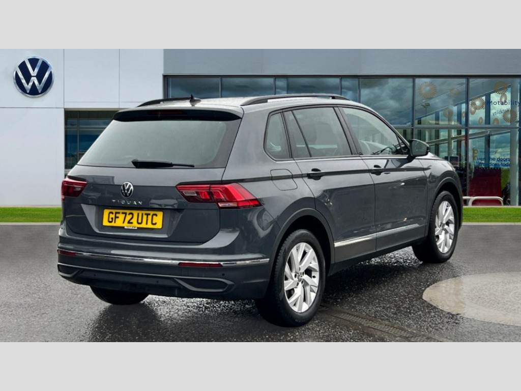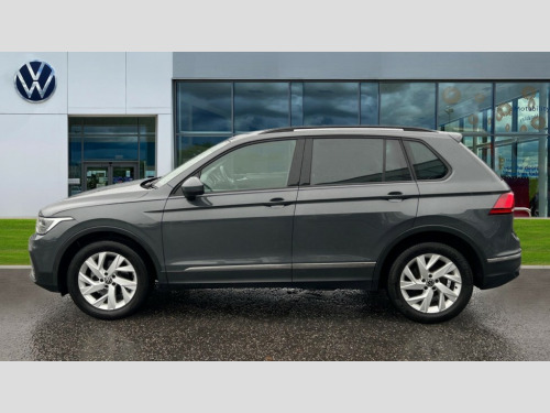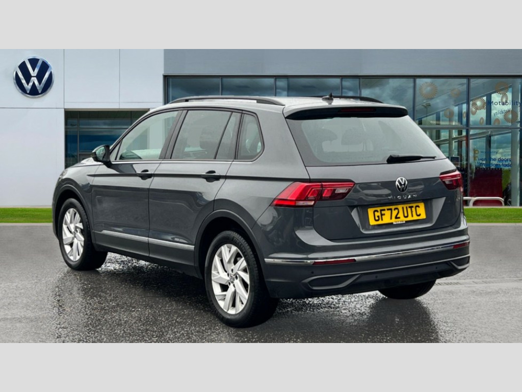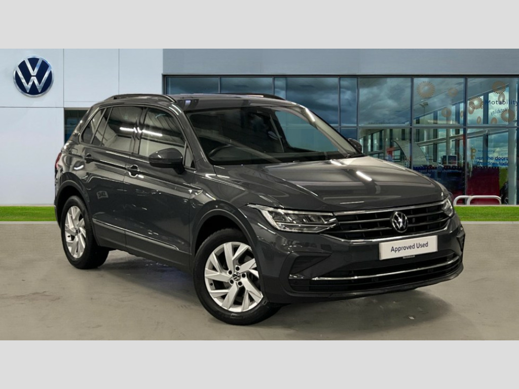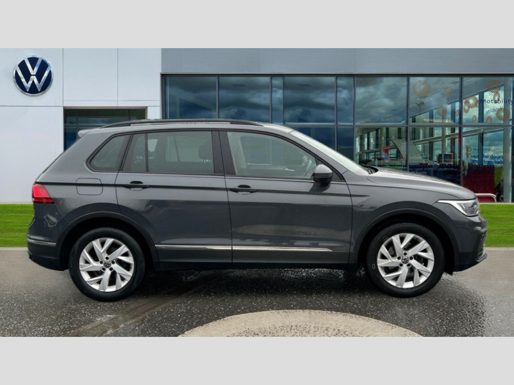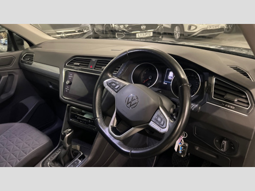 Volkswagen Tiguan 1.5 TSI 150 Life 5dr DSG Adaptive cruise control ACC including speed limiter, App-Connect incl. App-Connect Wireless for Apple CarPlay and Android Auto, Bluetooth phone integration system, Distance control assist, Driver alert system, Dynamic road sign display, eCall emergency call system, Electromechanical speed sensitive power steering, Instrument cluster mph speedometer Great Britain, Lane keeping system Lane Assist, Lights on warning, Multifunction front facing camera, Outside temperature display, Premium multifunction display with multi colour display, Remote control boot opening, Rev counter, Revision / skills operating concept travel assistant, Service interval indicator, Speed limit display, Start/stop system with regenerative braking, Trip computer, Warning sound and light for doors and tailgate open, Battery regeneration during braking, XDS electronic differential lock for improved traction and handling, 4 X 20 watt output, 8 Speakers, Diversity antenna for FM reception, Radio, SD card slot, Simultaneous pairing of 2 compatible mobile devices, SMS functionality - read, compose and send SMS messages using touch-screen display, Title and cover art display, USB C ports, Auto dimming interior rear view mirror, Automatic headlight control system, Body colour door handles, Body coloured bumpers, Body coloured door mirrors with integrated indicators, Coming/leaving home lighting function, Front and rear electric windows, Headlight range control, Heated rear window, High level 3rd brake light, Laminated safety glass windshield, heat and sound insulating, LED headlamps, LED rear combination lamps, LED rear number plate lights, LED separate daytime running light, Privacy glass for rear side windows and rear window, Rain sensor windscreen wipers, Rear exhaust tailpipe, Rear fog lamp, Rear side wing doors, Rear windscreen washer and wiper with interval delay, Side and rear windows in heat insulating glass, Trailer Stability Programme, Windscreen wipers/ intermittent wipe + 4 position delay, 12V outlet in center console rear and in luggage compartment, 12V outlet in front and tray, 2 cup holders in front, 2 LED front reading lights, 2 LED rear reading lights, 3 bench rear seats in 2nd row, 3 rear headrests, 4 load lashing points, 40:20:40 split folding rear seats, Air Care Climatronic 3 zone automatic climate control with enhanced air filter and controls in the rear, Backrest release for left front seat, Climate control unit rear with touch function, Door and side trim panel in foam film and woven fabric, Front centre armrest, Front comfort seats, Front footwell illumination, Front seats head restraints (x-adjustment), Height adjustable front seats, Height/reach adjust steering wheel, Instrument lighting white adjustable panel illumination, Interior light with delay, Isofix Preparation 2 Rear child seats, Leather gear knob, Lockable cooled glovebox, Luggage compartment lighting, Luggage net, Rear bench seat asymetrically split folding, longitudinally movable and folding with load-through hatch and center armrest, Remote unlocking for rear seat backrest, Removable luggage cover, Removable rear headrests, Safety optimised front head restraints, Single front passenger seat, Sliding/reclining rear seats, Standard rear seat release, Storage compartment in driver's door, Storage compartment in passenger's door, Storage compartment in rear doors, Storage compartments in luggage area left and right, Storage tray on dashboard, Sun visors with illuminated vanity mirrors, Variable boot floor, height adjustable and removable, 3 point seat belt for centre rear seats, 3 point seat belts with seat belt pretensioners for the outer rear seats, Active bonnet, Curtain airbags for front and rear passengers, Driver/Front Passenger airbags, Drivers knee airbag, Electronic parking brake with auto hold, Electronic Stability Control with driver steering recommendation, ABS, ASR, EDL, EDTC and trailer stabilization, Front assist with autonomous emergency braking (for Adaptive Cruise Control ACC up to 130 mph), Front disc brakes, Front passenger airbag deactivation, Front side airbags, Height adjustable front 3 point seatbelts + pretensioners, Hill hold control, Manual child proof rear door locks, Pedestrian monitoring system, Power assisted brakes, Rear disc brakes, Rigid safety cell with front and rear crumple zones, Two tone horn, Warning sound and light for front seat belts if unfastened, Anti theft alarm system with interior monitoring, backup horn and towing protection, Anti theft wheel bolts, Electronic engine immobiliser, Weave decorative inserts in dash and front door trim panels, Tool kit
