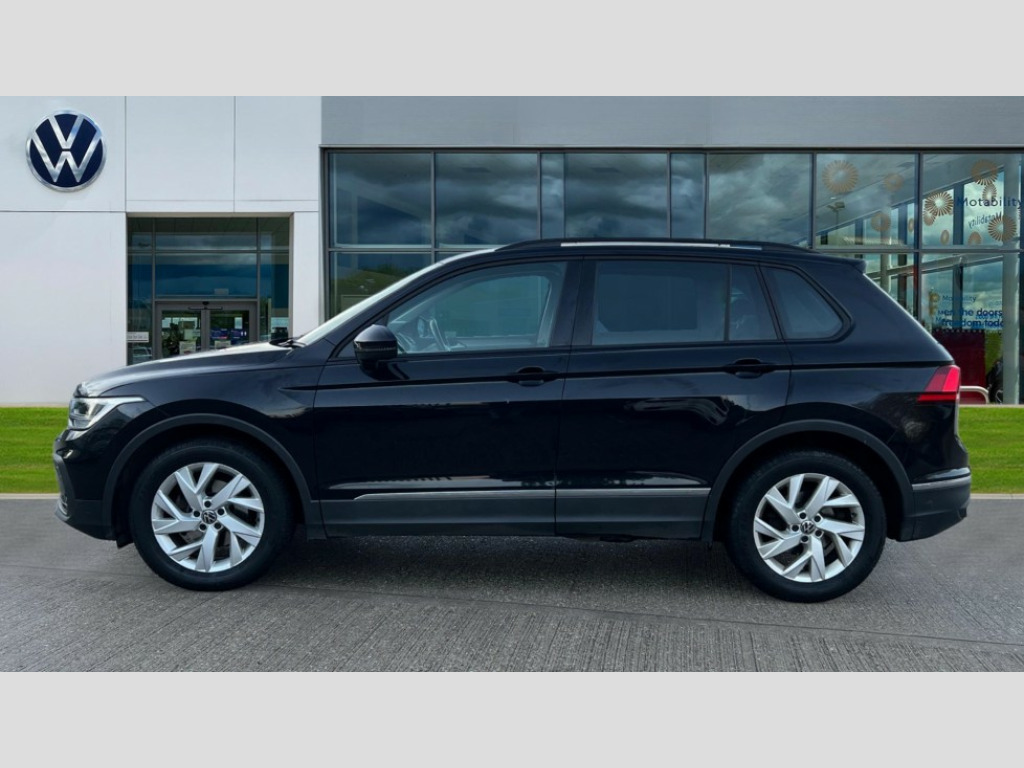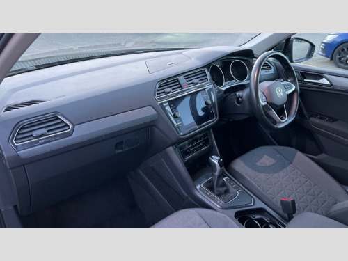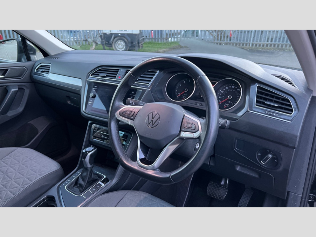 Volkswagen Tiguan 1.5 TSI 150 Life 5dr DSG Adaptive cruise control ACC including speed limiter, App-Connect incl. App-Connect Wireless for Apple CarPlay and Android Auto, Bluetooth phone integration system, Distance control assist, Driver alert system, Dynamic road sign display, eCall emergency call system, Electromechanical speed sensitive power steering, Instrument cluster mph speedometer Great Britain, Lane keeping system Lane Assist, Lights on warning, Multifunction front facing camera, Outside temperature display, Premium multifunction display with multi colour display, Remote control boot opening, Rev counter, Revision / skills operating concept travel assistant, Service interval indicator, Speed limit display, Start/stop system with regenerative braking, Trip computer, Warning sound and light for doors and tailgate open, Battery regeneration during braking, XDS electronic differential lock for improved traction and handling, 4 X 20 watt output, 8 Speakers, Diversity antenna for FM reception, Radio, SD card slot, Simultaneous pairing of 2 compatible mobile devices, SMS functionality - read, compose and send SMS messages using touch-screen display, Title and cover art display, USB C ports, Auto dimming interior rear view mirror, Automatic headlight control system, Body colour door handles, Body coloured bumpers, Body coloured door mirrors with integrated indicators, Coming/leaving home lighting function, Front and rear electric windows, Headlight range control, Heated rear window, High level 3rd brake light, Laminated safety glass windshield, heat and sound insulating, LED headlamps, LED rear combination lamps, LED rear number plate lights, LED separate daytime running light, Privacy glass for rear side windows and rear window, Rain sensor windscreen wipers, Rear exhaust tailpipe, Rear fog lamp, Rear side wing doors, Rear windscreen washer and wiper with interval delay, Side and rear windows in heat insulating glass, Trailer Stability Programme, Windscreen wipers/ intermittent wipe + 4 position delay, 12V outlet in center console rear and in luggage compartment, 12V outlet in front and tray, 2 cup holders in front, 2 LED front reading lights, 2 LED rear reading lights, 3 bench rear seats in 2nd row, 3 rear headrests, 4 load lashing points, 40:20:40 split folding rear seats, Air Care Climatronic 3 zone automatic climate control with enhanced air filter and controls in the rear, Backrest release for left front seat, Climate control unit rear with touch function, Door and side trim panel in foam film and woven fabric, Front centre armrest, Front comfort seats, Front footwell illumination, Front seats head restraints (x-adjustment), Height adjustable front seats, Height/reach adjust steering wheel, Instrument lighting white adjustable panel illumination, Interior light with delay, Isofix Preparation 2 Rear child seats, Leather gear knob, Lockable cooled glovebox, Luggage compartment lighting, Luggage net, Rear bench seat asymetrically split folding, longitudinally movable and folding with load-through hatch and center armrest, Remote unlocking for rear seat backrest, Removable luggage cover, Removable rear headrests, Safety optimised front head restraints, Single front passenger seat, Sliding/reclining rear seats, Standard rear seat release, Storage compartment in driver's door, Storage compartment in passenger's door, Storage compartment in rear doors, Storage compartments in luggage area left and right, Storage tray on dashboard, Sun visors with illuminated vanity mirrors, Variable boot floor, height adjustable and removable, 3 point seat belt for centre rear seats, 3 point seat belts with seat belt pretensioners for the outer rear seats, Active bonnet, Curtain airbags for front and rear passengers, Driver/Front Passenger airbags, Drivers knee airbag, Electronic parking brake with auto hold, Electronic Stability Control with driver steering recommendation, ABS, ASR, EDL, EDTC and trailer stabilization, Front assist with autonomous emergency braking (for Adaptive Cruise Control ACC up to 130 mph), Front disc brakes, Front passenger airbag deactivation, Front side airbags, Height adjustable front 3 point seatbelts + pretensioners, Hill hold control, Manual child proof rear door locks, Pedestrian monitoring system, Power assisted brakes, Rear disc brakes, Rigid safety cell with front and rear crumple zones, Two tone horn, Warning sound and light for front seat belts if unfastened, Anti theft alarm system with interior monitoring, backup horn and towing protection, Anti theft wheel bolts, Electronic engine immobiliser, Weave decorative inserts in dash and front door trim panels, Tool kit