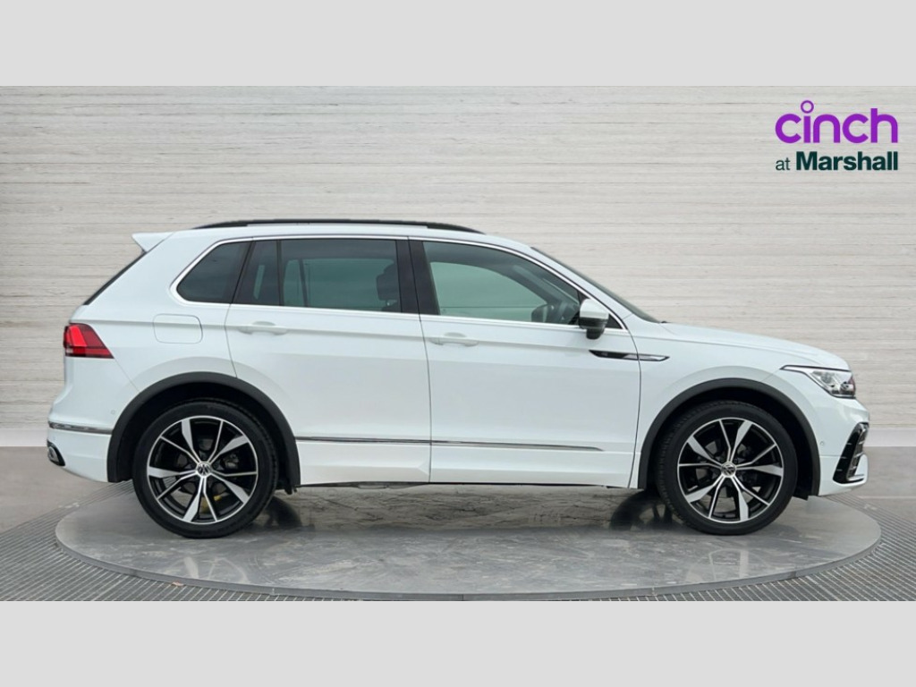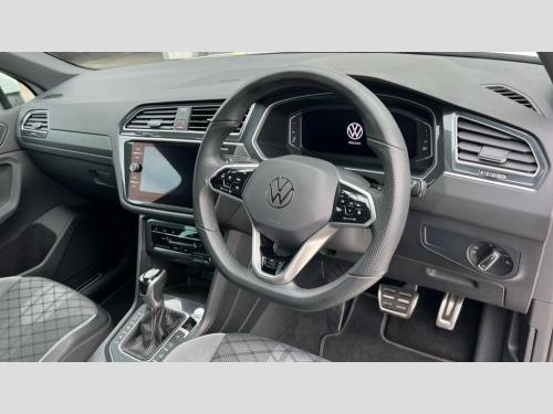 Volkswagen Tiguan 1.5 TSI 150 R-Line 5dr DSG Adaptive cruise control ACC stop and go including speed limiter, App-Connect incl. App-Connect Wireless for Apple CarPlay and Android Auto, Bluetooth phone integration system, Digital Cockpit Pro - Active info display, Distance control assist, Driver alert system, Driver profile selection, Dynamic road sign display, eCall emergency call system, Electromechanical speed sensitive power steering, Lane keeping system Lane Assist, Lights on warning, Multifunction front facing camera, Outside temperature display, Premium multifunction display with multi colour display, Revision / skills operating concept travel assistant, Service interval indicator, Start/stop system with regenerative braking, Warning sound and light for doors and tailgate open, Battery regeneration during braking, XDS electronic differential lock for improved traction and handling, 2 USB-C ports in the front, 1 USB-C charging socket on the center console in the rear, Diversity antenna for FM reception, Radio, SD card slot, Simultaneous pairing of 2 compatible mobile devices, SMS functionality - read, compose and send SMS messages using touch-screen display, Title and cover art display, Auto dimming interior rear view mirror, Automatic headlight control system, Black roof rails, Body colour door handles, Body coloured bumpers in R Line style, Chrome moldings on the side windows, Coming/leaving home lighting function, Dynamic headlight range control, Front and rear electric windows, Heated rear window, High level 3rd brake light, Laminated safety glass windshield, heat and sound insulating, LED rear number plate lights, License plate carrier in front and rear, Poor weather light and cornering light, Privacy glass for rear side windows and rear window, R Line body kit, R Line side sills, Rain sensor windscreen wipers, Rear exhaust tailpipe, Rear fog lamp, Rear spoiler in R style, Rear windscreen washer and wiper with interval delay, Side and rear windows in heat insulating glass, Trailer Stability Programme, Unique R Line badging, Windscreen wipers/ intermittent wipe + 4 position delay, 12V outlet in center console rear and in luggage compartment, 2 cup holders in front, 2 LED front reading lights, 2 LED rear reading lights, 3 rear headrests, 4 load lashing points, 40:20:40 split folding rear seats, Air Care Climatronic 3 zone automatic climate control with enhanced air filter and controls in the rear, Backrest release for left front seat, Black headlining, Brushed stainless steel pedals and footrest, Carpet mats in front and rear with decorative stitching in Gray, Climate control unit rear with touch function, Door and side trim panel in foam film, insert in leatherette, Front footwell illumination, Front seats head restraints (x-adjustment), Height adjustable front seats, Height/reach adjust steering wheel, Instrument lighting white adjustable panel illumination, Interior light with delay, Isofix Preparation 2 Rear child seats, Leather gear knob, Lockable cooled glovebox, Luggage compartment lighting, Rear bench seat asymetrically split folding, longitudinally movable and folding with load-through hatch and center armrest, Remote unlocking for rear seat backrest, Removable luggage cover, Safety optimised front head restraints, Sliding/reclining rear seats, Standard rear seat release, Storage compartment in driver's door, Storage compartment in passenger's door, Storage compartment in rear doors, Storage compartments in luggage area left and right, Storage tray on dashboard, Sun visors with illuminated vanity mirrors, Top front comfort seats, Variable boot floor, height adjustable and removable, Ambience pack - Tiguan R Line, Driver assistance pack plus - Tiguan, 3 point seat belt for centre rear seats, 3 point seat belts with seat belt pretensioners for the outer rear seats, Active bonnet, Curtain airbags for front and rear passengers, Driver/Front Passenger airbags, Drivers knee airbag, Electronic parking brake with auto hold, Electronic Stability Control with driver steering recommendation, ABS, ASR, EDL, EDTC and trailer stabilization, Front assist with autonomous emergency braking (for Adaptive Cruise Control ACC up to 130 mph), Front disc brakes, Front passenger airbag deactivation, Front side airbags, Height adjustable front 3 point seatbelts + pretensioners, Hill hold control, Pedestrian monitoring system, Proactive passenger protection system in combination with front assist, Rear disc brakes, Rigid safety cell with front and rear crumple zones, Two tone horn, Warning sound and light for front seat belts if unfastened, Anti theft alarm system with interior monitoring, backup horn and towing protection, Anti theft wheel bolts, Electronic engine immobiliser, 20" Misano black with diamond turned surface alloy wheels with Airstop tyres, Tool kit