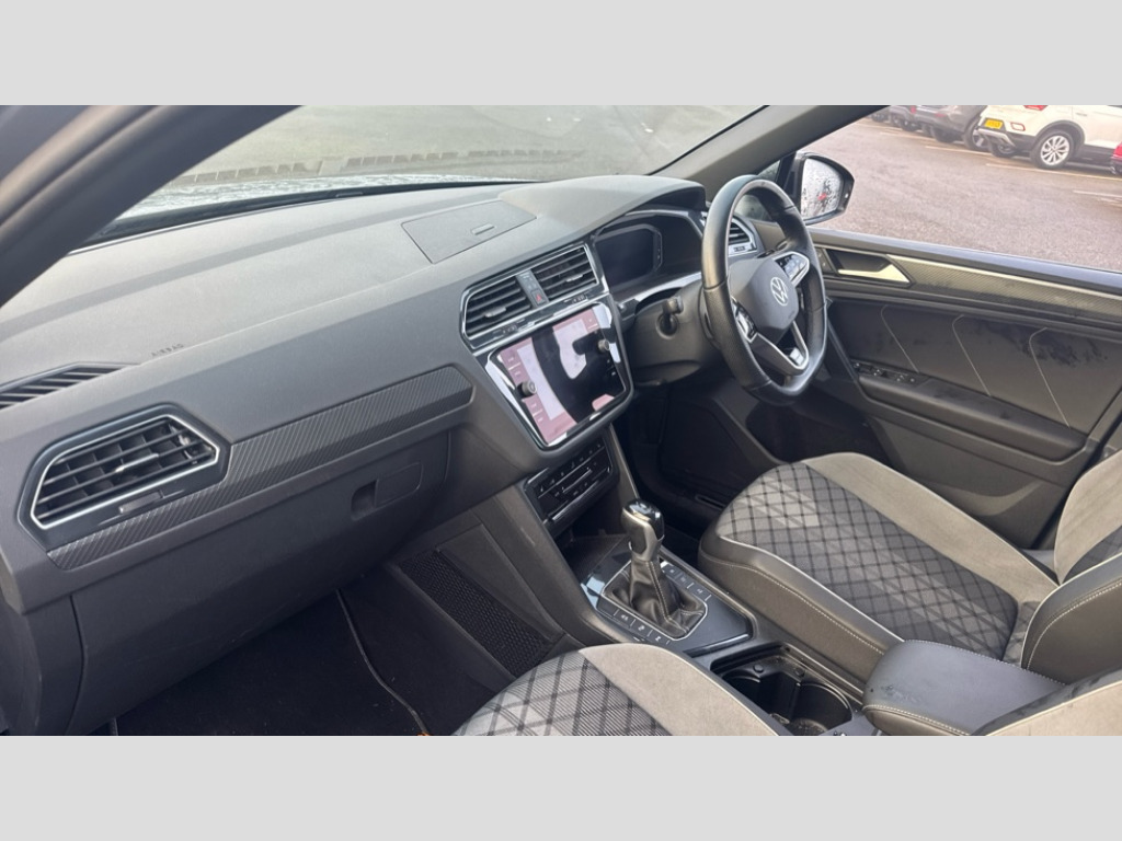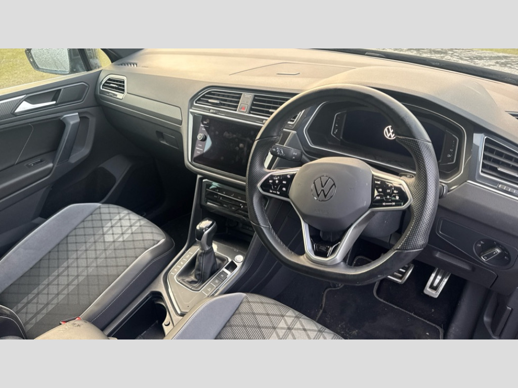 Volkswagen Tiguan 1.5 TSI 150 R-Line 5dr DSG Adaptive cruise control ACC stop and go including speed limiter, App-Connect incl. App-Connect Wireless for Apple CarPlay and Android Auto, Bluetooth phone integration system, Distance control assist, Driver alert system, Driver profile selection, Dynamic road sign display, eCall emergency call system, Electromechanical speed sensitive power steering, Engine start/stop button, Lane keeping system Lane Assist, Lights on warning, Multifunction front facing camera, Outside temperature display, Premium multifunction display with multi colour display, Remote control boot opening, Rev counter, Revision / skills operating concept travel assistant, Service interval indicator, Speed limit display, Start/stop system with regenerative braking, Trip computer, Warning sound and light for doors and tailgate open, Battery regeneration during braking, XDS electronic differential lock for improved traction and handling, 4 X 20 watt output, 8 Speakers, Diversity antenna for FM reception, Radio, SD card slot, Simultaneous pairing of 2 compatible mobile devices, SMS functionality - read, compose and send SMS messages using touch-screen display, Title and cover art display, USB C ports, Auto dimming interior rear view mirror, Automatic headlight control system, Body colour door handles, Chrome moldings on the side windows, Coming/leaving home lighting function, Dynamic headlight range control, Front and rear electric windows, Heated rear window, High level 3rd brake light, Laminated safety glass windshield, heat and sound insulating, LED headlamps with LED separate daytime running light and dynamic cornering light, LED rear combination lamps, LED rear number plate lights, License plate carrier in front and rear, Poor weather light and cornering light, R Line body kit, R Line side sills, Rain sensor windscreen wipers, Rear exhaust tailpipe, Rear fog lamp, Rear side wing doors, Rear spoiler in R style, Rear windscreen washer and wiper with interval delay, Side and rear windows in heat insulating glass, Trailer Stability Programme, Unique R Line badging, Windscreen wipers/ intermittent wipe + 4 position delay, 12V outlet in center console rear and in luggage compartment, 12V outlet in front and tray, 2 cup holders in front, 2 LED front reading lights, 2 LED rear reading lights, 3 bench rear seats in 2nd row, 3 rear headrests, 4 load lashing points, 40:20:40 split folding rear seats, Air Care Climatronic 3 zone automatic climate control with enhanced air filter and controls in the rear, Backrest release for left front seat, Black headlining, Brushed stainless steel pedals and footrest, Carpet mats in front and rear with decorative stitching in Gray, Climate control unit rear with touch function, Door and side trim panel in foam film, insert in leatherette, Front centre armrest, Front footwell illumination, Front seats head restraints (x-adjustment), Height adjustable front seats, Height/reach adjust steering wheel, Instrument lighting white adjustable panel illumination, Interior light with delay, Isofix Preparation 2 Rear child seats, Leather gear knob, Lockable cooled glovebox, Luggage compartment lighting, Luggage net, Rear bench seat asymetrically split folding, longitudinally movable and folding with load-through hatch and center armrest, Remote unlocking for rear seat backrest, Removable luggage cover, Removable rear headrests, Safety optimised front head restraints, Single front passenger seat, Sliding/reclining rear seats, Standard rear seat release, Storage compartment in driver's door, Storage compartment in passenger's door, Storage compartment in rear doors, Storage compartments in luggage area left and right, Storage tray on dashboard, Sun visors with illuminated vanity mirrors, Top front comfort seats, Variable boot floor, height adjustable and removable, Driver assistance pack plus - Tiguan DSG, 3 point seat belt for centre rear seats, 3 point seat belts with seat belt pretensioners for the outer rear seats, Active bonnet, Curtain airbags for front and rear passengers, Driver/Front Passenger airbags, Drivers knee airbag, Electronic parking brake with auto hold, Electronic Stability Control with driver steering recommendation, ABS, ASR, EDL, EDTC and trailer stabilization, Front assist with autonomous emergency braking (for Adaptive Cruise Control ACC up to 130 mph), Front disc brakes, Front passenger airbag deactivation, Front side airbags, Height adjustable front 3 point seatbelts + pretensioners, Hill hold control, Manual child proof rear door locks, Pedestrian monitoring system, Power assisted brakes, Proactive passenger protection system in combination with front assist, Rear disc brakes, Rigid safety cell with front and rear crumple zones, Two tone horn, Warning sound and light for front seat belts if unfastened, Anti theft alarm system with interior monitoring, backup horn and towing protection, Anti theft wheel bolts, Electronic engine immobiliser, Tool kit