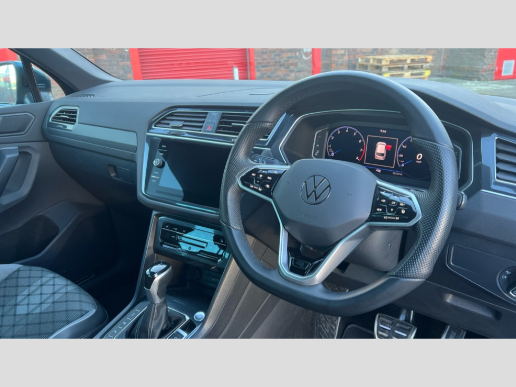 Volkswagen Tiguan 1.5 TSI 150 R-Line 5dr DSG Adaptive cruise control ACC stop and go including speed limiter, App-Connect incl. App-Connect Wireless for Apple CarPlay and Android Auto, Bluetooth phone integration system, Distance control assist, Driver alert system, Driver profile selection, Dynamic road sign display, eCall emergency call system, Electromechanical speed sensitive power steering, Engine start/stop button, Lane keeping system Lane Assist, Lights on warning, Multifunction front facing camera, Outside temperature display, Premium multifunction display with multi colour display, Remote control boot opening, Rev counter, Revision / skills operating concept travel assistant, Service interval indicator, Speed limit display, Start/stop system with regenerative braking, Trip computer, Warning sound and light for doors and tailgate open, Battery regeneration during braking, XDS electronic differential lock for improved traction and handling, 4 X 20 watt output, 8 Speakers, Diversity antenna for FM reception, SD card slot, Simultaneous pairing of 2 compatible mobile devices, SMS functionality - read, compose and send SMS messages using touch-screen display, Title and cover art display, USB C ports, Auto dimming interior rear view mirror, Automatic headlight control system, Body colour door handles, Chrome moldings on the side windows, Coming/leaving home lighting function, Dynamic headlight range control, Front and rear electric windows, Heated rear window, High level 3rd brake light, Laminated safety glass windshield, heat and sound insulating, LED headlamps with LED separate daytime running light and dynamic cornering light, LED rear combination lamps, LED rear number plate lights, License plate carrier in front and rear, Poor weather light and cornering light, R Line body kit, R Line side sills, Rain sensor windscreen wipers, Rear exhaust tailpipe, Rear fog lamp, Rear side wing doors, Rear spoiler in R style, Rear windscreen washer and wiper with interval delay, Side and rear windows in heat insulating glass, Trailer Stability Programme, Unique R Line badging, Windscreen wipers/ intermittent wipe + 4 position delay, 12V outlet in center console rear and in luggage compartment, 12V outlet in front and tray, 2 cup holders in front, 2 LED front reading lights, 2 LED rear reading lights, 3 bench rear seats in 2nd row, 3 rear headrests, 4 load lashing points, 40:20:40 split folding rear seats, Air Care Climatronic 3 zone automatic climate control with enhanced air filter and controls in the rear, Backrest release for left front seat, Black headlining, Brushed stainless steel pedals and footrest, Carpet mats in front and rear with decorative stitching in Gray, Climate control unit rear with touch function, Door and side trim panel in foam film, insert in leatherette, Front centre armrest, Front footwell illumination, Front seats head restraints (x-adjustment), Height adjustable front seats, Height/reach adjust steering wheel, Instrument lighting white adjustable panel illumination, Interior light with delay, Isofix Preparation 2 Rear child seats, Leather gear knob, Lockable cooled glovebox, Luggage compartment lighting, Luggage net, Rear bench seat asymetrically split folding, longitudinally movable and folding with load-through hatch and center armrest, Remote unlocking for rear seat backrest, Removable luggage cover, Removable rear headrests, Safety optimised front head restraints, Single front passenger seat, Sliding/reclining rear seats, Standard rear seat release, Storage compartment in driver's door, Storage compartment in passenger's door, Storage compartment in rear doors, Storage compartments in luggage area left and right, Storage tray on dashboard, Sun visors with illuminated vanity mirrors, Top front comfort seats, Variable boot floor, height adjustable and removable, Driver assistance pack plus - Tiguan DSG, 3 point seat belt for centre rear seats, 3 point seat belts with seat belt pretensioners for the outer rear seats, Active bonnet, Curtain airbags for front and rear passengers, Driver/Front Passenger airbags, Drivers knee airbag, Electronic parking brake with auto hold, Electronic Stability Control with driver steering recommendation, ABS, ASR, EDL, EDTC and trailer stabilization, Front assist with autonomous emergency braking (for Adaptive Cruise Control ACC up to 130 mph), Front disc brakes, Front passenger airbag deactivation, Front side airbags, Height adjustable front 3 point seatbelts + pretensioners, Hill hold control, Manual child proof rear door locks, Pedestrian monitoring system, Power assisted brakes, Proactive passenger protection system in combination with front assist, Rear disc brakes, Rigid safety cell with front and rear crumple zones, Two tone horn, Warning sound and light for front seat belts if unfastened, Anti theft alarm system with interior monitoring, backup horn and towing protection, Anti theft wheel bolts, Electronic engine immobiliser, Tool kit