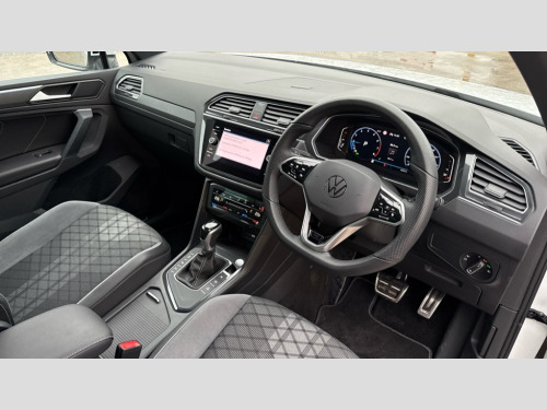 Volkswagen Tiguan 1.5 TSI 150 R-Line 5dr DSG Adaptive cruise control ACC stop and go including speed limiter, App-Connect incl. App-Connect Wireless for Apple CarPlay and Android Auto, Bluetooth phone integration system, Distance control assist, Driver alert system, Driver profile selection, Dynamic road sign display, eCall emergency call system, Electromechanical speed sensitive power steering, Engine start/stop button, Lane keeping system Lane Assist, Lights on warning, Multifunction front facing camera, Outside temperature display, Premium multifunction display with multi colour display, Remote control boot opening, Rev counter, Revision / skills operating concept travel assistant, Service interval indicator, Speed limit display, Start/stop system with regenerative braking, Trip computer, Warning sound and light for doors and tailgate open, Battery regeneration during braking, XDS electronic differential lock for improved traction and handling, 4 X 20 watt output, 8 Speakers, Diversity antenna for FM reception, SD card slot, Simultaneous pairing of 2 compatible mobile devices, SMS functionality - read, compose and send SMS messages using touch-screen display, Title and cover art display, USB C ports, Auto dimming interior rear view mirror, Automatic headlight control system, Body colour door handles, Chrome moldings on the side windows, Coming/leaving home lighting function, Dynamic headlight range control, Front and rear electric windows, Heated rear window, High level 3rd brake light, Laminated safety glass windshield, heat and sound insulating, LED headlamps with LED separate daytime running light and dynamic cornering light, LED rear combination lamps, LED rear number plate lights, License plate carrier in front and rear, Poor weather light and cornering light, R Line body kit, R Line side sills, Rain sensor windscreen wipers, Rear exhaust tailpipe, Rear fog lamp, Rear side wing doors, Rear spoiler in R style, Rear windscreen washer and wiper with interval delay, Side and rear windows in heat insulating glass, Trailer Stability Programme, Unique R Line badging, Windscreen wipers/ intermittent wipe + 4 position delay, 12V outlet in center console rear and in luggage compartment, 12V outlet in front and tray, 2 cup holders in front, 2 LED front reading lights, 2 LED rear reading lights, 3 bench rear seats in 2nd row, 3 rear headrests, 4 load lashing points, 40:20:40 split folding rear seats, Air Care Climatronic 3 zone automatic climate control with enhanced air filter and controls in the rear, Backrest release for left front seat, Black headlining, Brushed stainless steel pedals and footrest, Carpet mats in front and rear with decorative stitching in Gray, Climate control unit rear with touch function, Door and side trim panel in foam film, insert in leatherette, Front centre armrest, Front footwell illumination, Front seats head restraints (x-adjustment), Height adjustable front seats, Height/reach adjust steering wheel, Instrument lighting white adjustable panel illumination, Interior light with delay, Isofix Preparation 2 Rear child seats, Leather gear knob, Lockable cooled glovebox, Luggage compartment lighting, Luggage net, Rear bench seat asymetrically split folding, longitudinally movable and folding with load-through hatch and center armrest, Remote unlocking for rear seat backrest, Removable luggage cover, Removable rear headrests, Safety optimised front head restraints, Single front passenger seat, Sliding/reclining rear seats, Standard rear seat release, Storage compartment in driver's door, Storage compartment in passenger's door, Storage compartment in rear doors, Storage compartments in luggage area left and right, Storage tray on dashboard, Sun visors with illuminated vanity mirrors, Top front comfort seats, Variable boot floor, height adjustable and removable, Driver assistance pack plus - Tiguan DSG, 3 point seat belt for centre rear seats, 3 point seat belts with seat belt pretensioners for the outer rear seats, Active bonnet, Curtain airbags for front and rear passengers, Driver/Front Passenger airbags, Drivers knee airbag, Electronic parking brake with auto hold, Electronic Stability Control with driver steering recommendation, ABS, ASR, EDL, EDTC and trailer stabilization, Front assist with autonomous emergency braking (for Adaptive Cruise Control ACC up to 130 mph), Front disc brakes, Front passenger airbag deactivation, Front side airbags, Height adjustable front 3 point seatbelts + pretensioners, Hill hold control, Manual child proof rear door locks, Pedestrian monitoring system, Power assisted brakes, Proactive passenger protection system in combination with front assist, Rear disc brakes, Rigid safety cell with front and rear crumple zones, Two tone horn, Warning sound and light for front seat belts if unfastened, Anti theft alarm system with interior monitoring, backup horn and towing protection, Anti theft wheel bolts, Electronic engine immobiliser, Tool kit