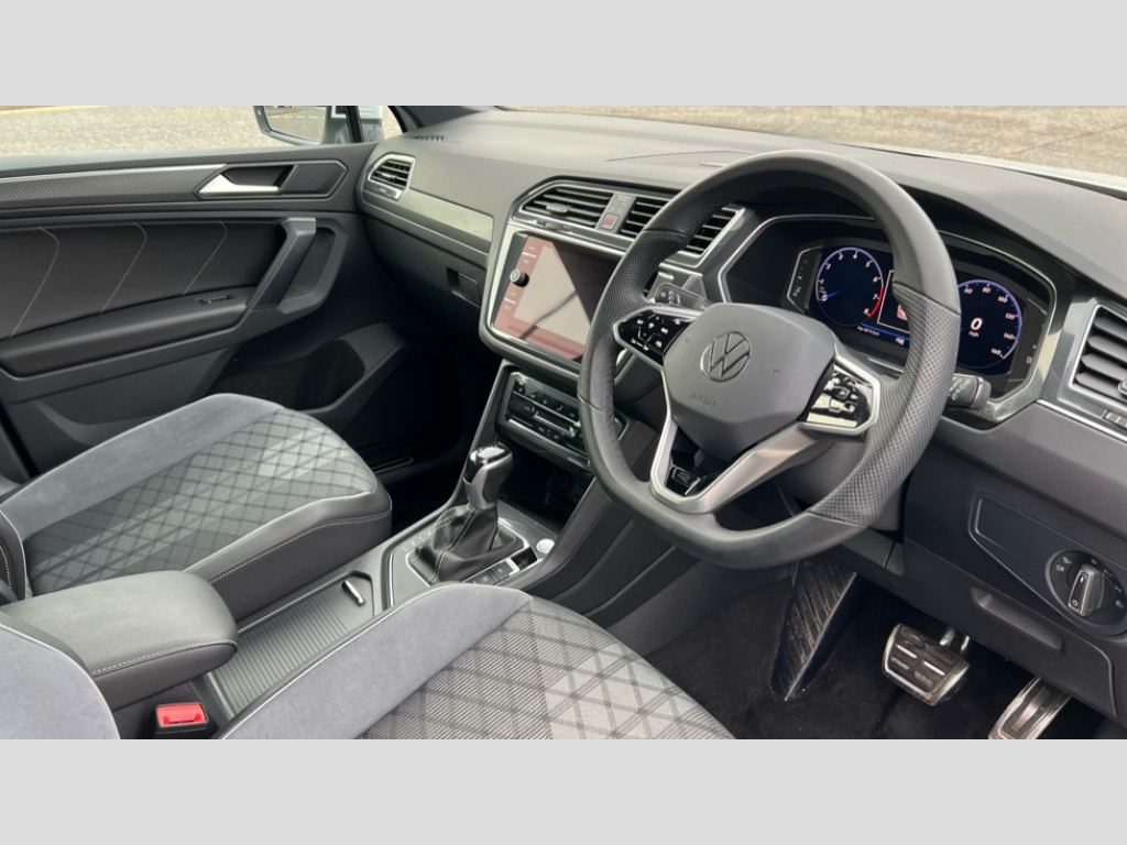 Volkswagen Tiguan 1.5 TSI 150 R-Line 5dr DSG Adaptive cruise control ACC stop and go including speed limiter, App-Connect incl. App-Connect Wireless for Apple CarPlay and Android Auto, Bluetooth phone integration system, Distance control assist, Driver alert system, Driver profile selection, Dynamic road sign display, eCall emergency call system, Electromechanical speed sensitive power steering, Engine start/stop button, Lane keeping system Lane Assist, Lights on warning, Multifunction front facing camera, Outside temperature display, Premium multifunction display with multi colour display, Remote control boot opening, Rev counter, Revision / skills operating concept travel assistant, Service interval indicator, Speed limit display, Start/stop system with regenerative braking, Trip computer, Warning sound and light for doors and tailgate open, Battery regeneration during braking, XDS electronic differential lock for improved traction and handling, 4 X 20 watt output, 8 Speakers, Diversity antenna for FM reception, SD card slot, Simultaneous pairing of 2 compatible mobile devices, SMS functionality - read, compose and send SMS messages using touch-screen display, Title and cover art display, USB C ports, Auto dimming interior rear view mirror, Automatic headlight control system, Body colour door handles, Chrome moldings on the side windows, Coming/leaving home lighting function, Dynamic headlight range control, Front and rear electric windows, Heated rear window, High level 3rd brake light, Laminated safety glass windshield, heat and sound insulating, LED headlamps with LED separate daytime running light and dynamic cornering light, LED rear combination lamps, LED rear number plate lights, License plate carrier in front and rear, Poor weather light and cornering light, R Line body kit, R Line side sills, Rain sensor windscreen wipers, Rear exhaust tailpipe, Rear fog lamp, Rear side wing doors, Rear spoiler in R style, Rear windscreen washer and wiper with interval delay, Side and rear windows in heat insulating glass, Trailer Stability Programme, Unique R Line badging, Windscreen wipers/ intermittent wipe + 4 position delay, 12V outlet in center console rear and in luggage compartment, 12V outlet in front and tray, 2 cup holders in front, 2 LED front reading lights, 2 LED rear reading lights, 3 bench rear seats in 2nd row, 3 rear headrests, 4 load lashing points, 40:20:40 split folding rear seats, Air Care Climatronic 3 zone automatic climate control with enhanced air filter and controls in the rear, Backrest release for left front seat, Black headlining, Brushed stainless steel pedals and footrest, Carpet mats in front and rear with decorative stitching in Gray, Climate control unit rear with touch function, Door and side trim panel in foam film, insert in leatherette, Front centre armrest, Front footwell illumination, Front seats head restraints (x-adjustment), Height adjustable front seats, Height/reach adjust steering wheel, Instrument lighting white adjustable panel illumination, Interior light with delay, Isofix Preparation 2 Rear child seats, Leather gear knob, Lockable cooled glovebox, Luggage compartment lighting, Luggage net, Rear bench seat asymetrically split folding, longitudinally movable and folding with load-through hatch and center armrest, Remote unlocking for rear seat backrest, Removable luggage cover, Removable rear headrests, Safety optimised front head restraints, Single front passenger seat, Sliding/reclining rear seats, Standard rear seat release, Storage compartment in driver's door, Storage compartment in passenger's door, Storage compartment in rear doors, Storage compartments in luggage area left and right, Storage tray on dashboard, Sun visors with illuminated vanity mirrors, Top front comfort seats, Variable boot floor, height adjustable and removable, Driver assistance pack plus - Tiguan DSG, 3 point seat belt for centre rear seats, 3 point seat belts with seat belt pretensioners for the outer rear seats, Active bonnet, Curtain airbags for front and rear passengers, Driver/Front Passenger airbags, Drivers knee airbag, Electronic parking brake with auto hold, Electronic Stability Control with driver steering recommendation, ABS, ASR, EDL, EDTC and trailer stabilization, Front assist with autonomous emergency braking (for Adaptive Cruise Control ACC up to 130 mph), Front disc brakes, Front passenger airbag deactivation, Front side airbags, Height adjustable front 3 point seatbelts + pretensioners, Hill hold control, Manual child proof rear door locks, Pedestrian monitoring system, Power assisted brakes, Proactive passenger protection system in combination with front assist, Rear disc brakes, Rigid safety cell with front and rear crumple zones, Two tone horn, Warning sound and light for front seat belts if unfastened, Anti theft alarm system with interior monitoring, backup horn and towing protection, Anti theft wheel bolts, Electronic engine immobiliser, Tool kit