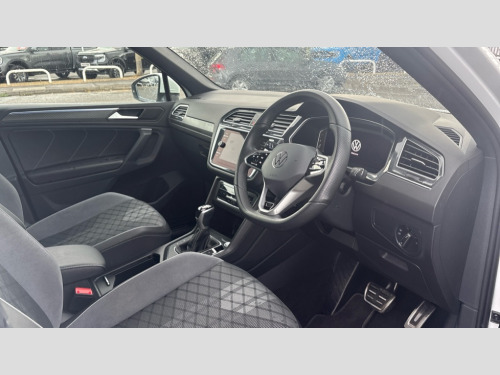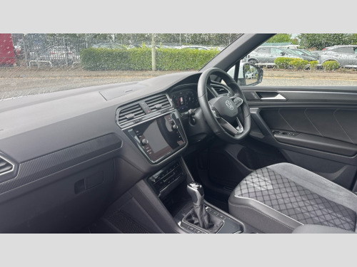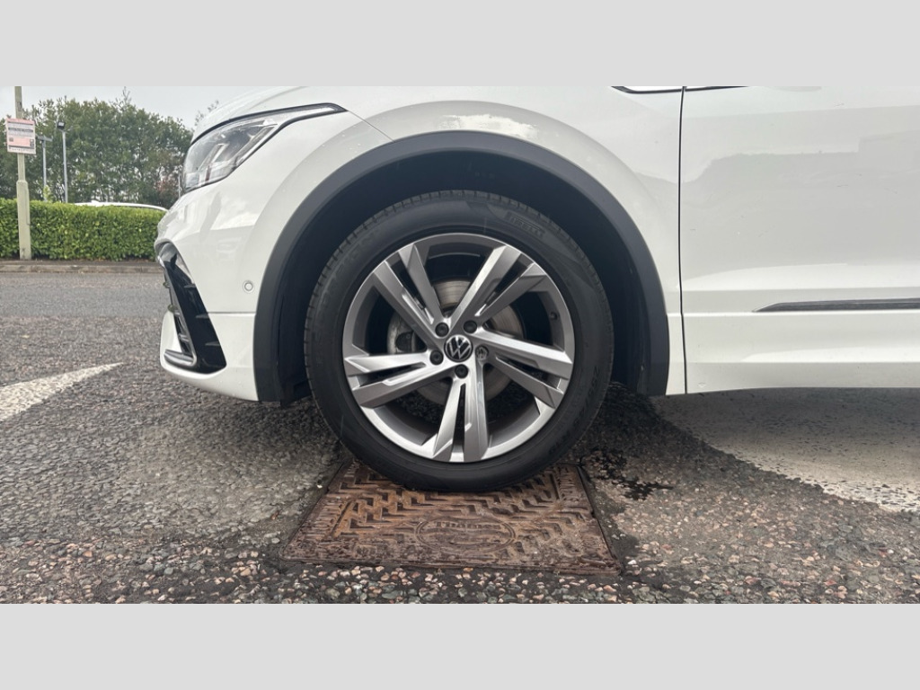 Volkswagen Tiguan 1.5 TSI 150 R-Line Edition 5dr DSG Adaptive cruise control ACC stop and go including speed limiter, App-Connect incl. App-Connect Wireless for Apple CarPlay and Android Auto, Bluetooth phone integration system, Comfort drive travel assist, Digital cockpit pro, Driver alert system, Driver profile selection, Dynamic road sign display, eCall emergency call system, Electromechanical speed sensitive power steering, Emergency assist, Front and rear parking distance sensors, Instrument cluster mph speedometer Great Britain, Lane keeping system Lane Assist, Lights on warning, Multifunction front facing camera, Outside temperature display, Premium multifunction display with multi colour display, Rev counter, Service interval indicator, Speed limit display, Start/stop system with regenerative braking, Trip computer, Warning sound and light for doors and tailgate open, Battery regeneration during braking, Digital radio reception DAB+, Diversity antenna for FM reception, Radio, Auto dimming interior rear view mirror, Automatic headlight control system, Body colored bumpers in R-Line style, Body colored exterior mirror housings, Body colour door handles, Chrome moldings on the side windows, Coming/leaving home lighting function, Dynamic headlight range control, Front and rear electric windows, Heated rear window, High level 3rd brake light, Laminated safety glass windshield, heat and sound insulating, LED rear combination lamps, LED rear number plate lights, License plate carrier in front and rear, Poor weather light and cornering light, Privacy glass for rear side windows and rear window, R Line body kit, R Line side sills, Rain sensor, Rear exhaust tailpipe, Rear fog lamp, Rear side wing doors, Rear spoiler in R style, Rear windscreen washer and wiper with interval delay, Side and rear windows in heat insulating glass, Trailer Stability Programme, Unique R Line badging, Windscreen wipers/ intermittent wipe + 4 position delay, 12V outlet in center console rear and in luggage compartment, 12V outlet in front and tray, 2 LED front reading lights, 2 LED rear reading lights, 3 bench rear seats in 2nd row, 3 rear headrests, Air Care Climatronic 3 zone automatic climate control with enhanced air filter and controls in the rear, Backrest release for left front seat, Black headlining, Brushed stainless steel pedals and footrest, Carpet mats in front and rear with decorative stitching in Gray, Climate control unit rear with touch function, Door and side trim panel in foam film, insert in leatherette, Front footwell illumination, Front scuff plates in aluminum with R-Line logo, Front seats head restraints (x-adjustment), Height/reach adjust steering wheel, Isofix Preparation 2 Rear child seats, Leather gear knob, Rear bench seat asymetrically split folding, longitudinally movable and folding with load-through hatch and center armrest, Remote unlocking for rear seat backrest, Single front passenger seat, Sun visors with illuminated vanity mirrors, Driver assistance pack plus - Tiguan DSG, 3 point seat belt for centre rear seats, 3 point seat belts with seat belt pretensioners for the outer rear seats, Curtain airbags for front and rear passengers, Driver/Front Passenger airbags, Drivers knee airbag, Electronic parking brake with auto hold, Electronic Stability Control with driver steering recommendation, ABS, ASR, EDL, EDTC and trailer stabilization, Front assist with autonomous emergency braking (for Adaptive Cruise Control ACC up to 130 mph), Front disc brakes, Front passenger airbag deactivation, Front side airbags, Height adjustable front 3 point seatbelts + pretensioners, Manual child proof rear door locks, Pedestrian monitoring system, Proactive passenger protection system in combination with front assist, Rear disc brakes, Two tone horn, Warning sound and light for front seat belts if unfastened, Warning triangle, Anti theft alarm system with interior monitoring, backup horn and towing protection, Anti theft wheel bolts, Electronic engine immobiliser, Chrome elements on the mirror switch power window switches and door pulls, Decorative inserts Carbon Gray for dashboard and front door trim panels, Interior door handle in matte chrome, Tool kit