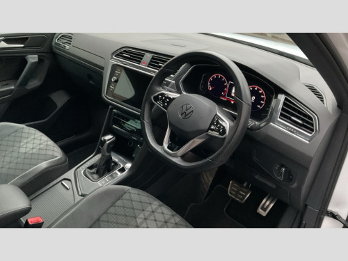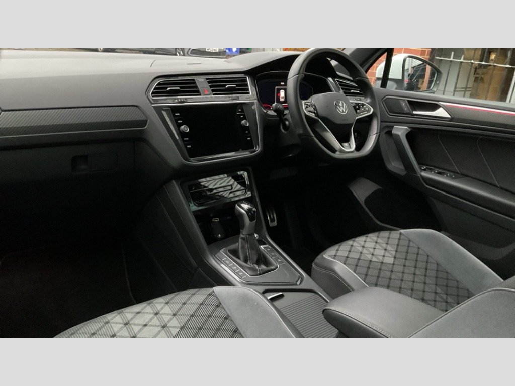 Volkswagen Tiguan 1.5 TSI 150 R-Line Edition 5dr DSG Adaptive cruise control ACC stop and go including speed limiter, App-Connect incl. App-Connect Wireless for Apple CarPlay and Android Auto, Bluetooth phone integration system, Comfort drive travel assist, Digital cockpit pro, Driver alert system, Driver profile selection, Dynamic road sign display, eCall emergency call system, Electromechanical speed sensitive power steering, Emergency assist, Front and rear parking distance sensors, Instrument cluster mph speedometer Great Britain, Lane keeping system Lane Assist, Lights on warning, Multifunction front facing camera, Outside temperature display, Premium multifunction display with multi colour display, Rev counter, Service interval indicator, Speed limit display, Start/stop system with regenerative braking, Trip computer, Warning sound and light for doors and tailgate open, Battery regeneration during braking, 8 Speakers, Digital radio reception DAB+, Diversity antenna for FM reception, Radio, Auto dimming interior rear view mirror, Automatic headlight control system, Body colored bumpers in R-Line style, Body colored exterior mirror housings, Body colour door handles, Chrome moldings on the side windows, Coming/leaving home lighting function, Dynamic headlight range control, Front and rear electric windows, Heated rear window, High level 3rd brake light, Laminated safety glass windshield, heat and sound insulating, LED headlamps with LED separate daytime running light and dynamic cornering light, LED rear combination lamps, LED rear number plate lights, License plate carrier in front and rear, Poor weather light and cornering light, Privacy glass for rear side windows and rear window, R Line body kit, R Line side sills, Rain sensor, Rear exhaust tailpipe, Rear fog lamp, Rear side wing doors, Rear spoiler in R style, Rear windscreen washer and wiper with interval delay, Side and rear windows in heat insulating glass, Trailer Stability Programme, Unique R Line badging, Windscreen wipers/ intermittent wipe + 4 position delay, 12V outlet in center console rear and in luggage compartment, 12V outlet in front and tray, 2 LED front reading lights, 2 LED rear reading lights, 3 bench rear seats in 2nd row, 3 rear headrests, Air Care Climatronic 3 zone automatic climate control with enhanced air filter and controls in the rear, Backrest release for left front seat, Black headlining, Brushed stainless steel pedals and footrest, Carpet mats in front and rear with decorative stitching in Gray, Climate control unit rear with touch function, Door and side trim panel in foam film, insert in leatherette, Front footwell illumination, Front scuff plates in aluminum with R-Line logo, Front seats head restraints (x-adjustment), Height/reach adjust steering wheel, Isofix Preparation 2 Rear child seats, Leather gear knob, Rear bench seat asymetrically split folding, longitudinally movable and folding with load-through hatch and center armrest, Remote unlocking for rear seat backrest, Single front passenger seat, Sun visors with illuminated vanity mirrors, 3 point seat belt for centre rear seats, 3 point seat belts with seat belt pretensioners for the outer rear seats, Curtain airbags for front and rear passengers, Driver/Front Passenger airbags, Drivers knee airbag, Electronic parking brake with auto hold, Electronic Stability Control with driver steering recommendation, ABS, ASR, EDL, EDTC and trailer stabilization, Front assist with autonomous emergency braking (for Adaptive Cruise Control ACC up to 130 mph), Front disc brakes, Front passenger airbag deactivation, Front side airbags, Height adjustable front 3 point seatbelts + pretensioners, Manual child proof rear door locks, Pedestrian monitoring system, Proactive passenger protection system in combination with front assist, Rear disc brakes, Two tone horn, Warning sound and light for front seat belts if unfastened, Warning triangle, Anti theft alarm system with interior monitoring, backup horn and towing protection, Anti theft wheel bolts, Electronic engine immobiliser, Chrome elements on the mirror switch power window switches and door pulls, Decorative inserts Carbon Gray for dashboard and front door trim panels, Interior door handle in matte chrome, Tool kit
