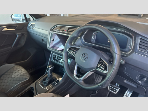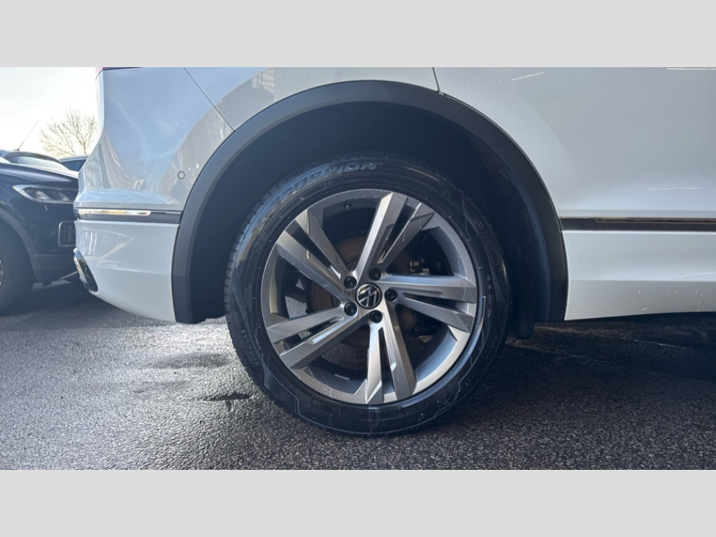 Volkswagen Tiguan 1.5 TSI 150 R-Line Edition 5dr DSG Adaptive cruise control ACC stop and go including speed limiter, App-Connect incl. App-Connect Wireless for Apple CarPlay and Android Auto, Bluetooth phone integration system, Comfort drive travel assist, Digital cockpit pro, Driver alert system, Driver profile selection, Dynamic road sign display, eCall emergency call system, Electromechanical speed sensitive power steering, Emergency assist, Front and rear parking distance sensors, Instrument cluster mph speedometer Great Britain, Lane keeping system Lane Assist, Lights on warning, Multifunction front facing camera, Outside temperature display, Premium multifunction display with multi colour display, Rev counter, Service interval indicator, Speed limit display, Start/stop system with regenerative braking, Trip computer, Warning sound and light for doors and tailgate open, Battery regeneration during braking, Digital radio reception DAB+, Diversity antenna for FM reception, Radio, Auto dimming interior rear view mirror, Automatic headlight control system, Body colored bumpers in R-Line style, Body colored exterior mirror housings, Body colour door handles, Chrome moldings on the side windows, Coming/leaving home lighting function, Dynamic headlight range control, Front and rear electric windows, Heated rear window, High level 3rd brake light, Laminated safety glass windshield, heat and sound insulating, LED rear combination lamps, LED rear number plate lights, License plate carrier in front and rear, Poor weather light and cornering light, Privacy glass for rear side windows and rear window, R Line body kit, R Line side sills, Rain sensor, Rear exhaust tailpipe, Rear fog lamp, Rear side wing doors, Rear spoiler in R style, Rear windscreen washer and wiper with interval delay, Side and rear windows in heat insulating glass, Trailer Stability Programme, Unique R Line badging, Windscreen wipers/ intermittent wipe + 4 position delay, 12V outlet in center console rear and in luggage compartment, 12V outlet in front and tray, 2 LED front reading lights, 2 LED rear reading lights, 3 bench rear seats in 2nd row, 3 rear headrests, Air Care Climatronic 3 zone automatic climate control with enhanced air filter and controls in the rear, Backrest release for left front seat, Black headlining, Brushed stainless steel pedals and footrest, Carpet mats in front and rear with decorative stitching in Gray, Climate control unit rear with touch function, Door and side trim panel in foam film, insert in leatherette, Front footwell illumination, Front scuff plates in aluminum with R-Line logo, Front seats head restraints (x-adjustment), Height/reach adjust steering wheel, Isofix Preparation 2 Rear child seats, Leather gear knob, Rear bench seat asymetrically split folding, longitudinally movable and folding with load-through hatch and center armrest, Remote unlocking for rear seat backrest, Single front passenger seat, Sun visors with illuminated vanity mirrors, Driver assistance pack plus - Tiguan DSG, 3 point seat belt for centre rear seats, 3 point seat belts with seat belt pretensioners for the outer rear seats, Curtain airbags for front and rear passengers, Driver/Front Passenger airbags, Drivers knee airbag, Electronic parking brake with auto hold, Electronic Stability Control with driver steering recommendation, ABS, ASR, EDL, EDTC and trailer stabilization, Front assist with autonomous emergency braking (for Adaptive Cruise Control ACC up to 130 mph), Front disc brakes, Front passenger airbag deactivation, Front side airbags, Height adjustable front 3 point seatbelts + pretensioners, Manual child proof rear door locks, Pedestrian monitoring system, Proactive passenger protection system in combination with front assist, Rear disc brakes, Two tone horn, Warning sound and light for front seat belts if unfastened, Warning triangle, Anti theft alarm system with interior monitoring, backup horn and towing protection, Anti theft wheel bolts, Electronic engine immobiliser, Chrome elements on the mirror switch power window switches and door pulls, Decorative inserts Carbon Gray for dashboard and front door trim panels, Interior door handle in matte chrome, Tool kit