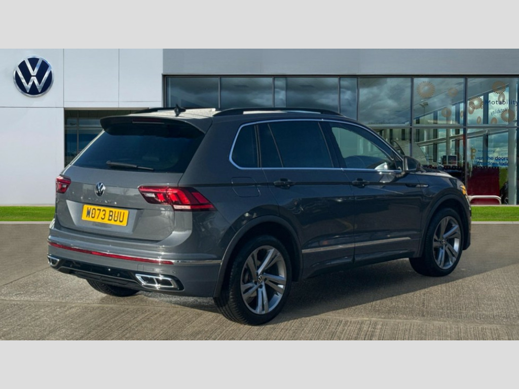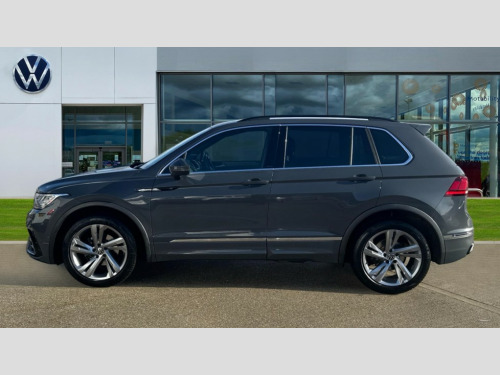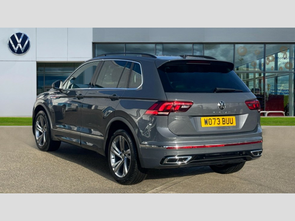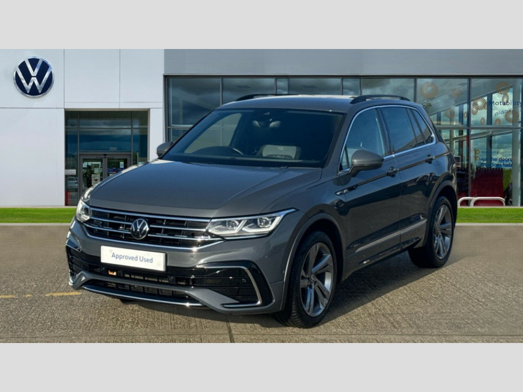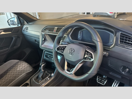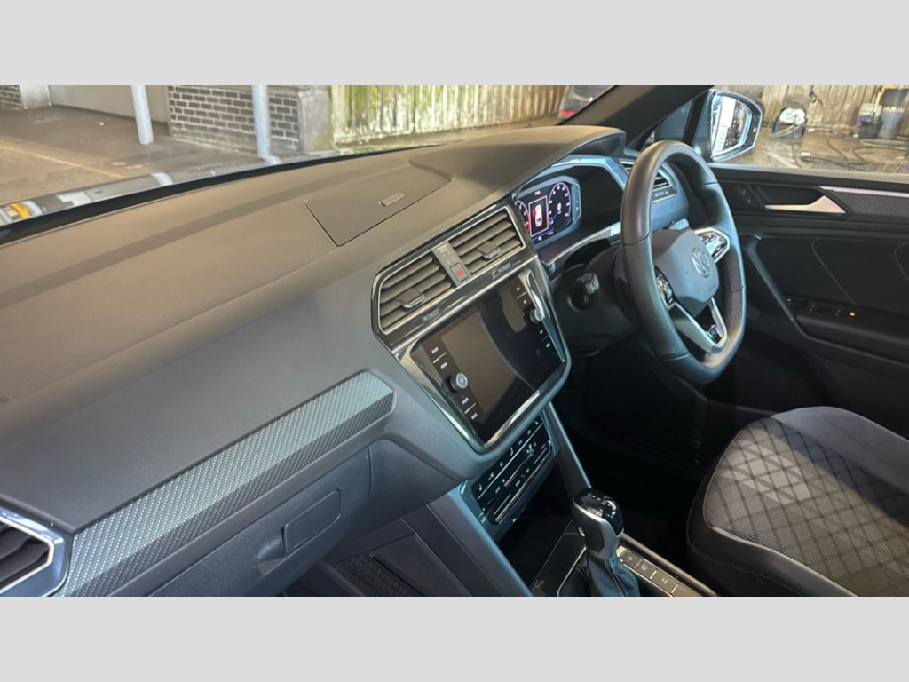 Volkswagen Tiguan 1.5 TSI 150 R-Line Edition 5dr DSG Adaptive cruise control ACC stop and go including speed limiter, App-Connect incl. App-Connect Wireless for Apple CarPlay and Android Auto, Bluetooth phone integration system, Comfort drive travel assist, Digital cockpit pro, Driver alert system, Driver profile selection, Dynamic road sign display, eCall emergency call system, Electromechanical speed sensitive power steering, Emergency assist, Front and rear parking distance sensors, Instrument cluster mph speedometer Great Britain, Lane keeping system Lane Assist, Lights on warning, Multifunction front facing camera, Outside temperature display, Premium multifunction display with multi colour display, Rev counter, Service interval indicator, Speed limit display, Start/stop system with regenerative braking, Trip computer, Warning sound and light for doors and tailgate open, Battery regeneration during braking, Digital radio reception DAB+, Diversity antenna for FM reception, Radio, Auto dimming interior rear view mirror, Automatic headlight control system, Body colored bumpers in R-Line style, Body colored exterior mirror housings, Body colour door handles, Chrome moldings on the side windows, Coming/leaving home lighting function, Dynamic headlight range control, Front and rear electric windows, Heated rear window, High level 3rd brake light, Laminated safety glass windshield, heat and sound insulating, LED rear combination lamps, LED rear number plate lights, License plate carrier in front and rear, Poor weather light and cornering light, Privacy glass for rear side windows and rear window, R Line body kit, R Line side sills, Rain sensor, Rear exhaust tailpipe, Rear fog lamp, Rear side wing doors, Rear spoiler in R style, Rear windscreen washer and wiper with interval delay, Side and rear windows in heat insulating glass, Trailer Stability Programme, Unique R Line badging, Windscreen wipers/ intermittent wipe + 4 position delay, 12V outlet in center console rear and in luggage compartment, 12V outlet in front and tray, 2 LED front reading lights, 2 LED rear reading lights, 3 bench rear seats in 2nd row, 3 rear headrests, Air Care Climatronic 3 zone automatic climate control with enhanced air filter and controls in the rear, Backrest release for left front seat, Black headlining, Brushed stainless steel pedals and footrest, Carpet mats in front and rear with decorative stitching in Gray, Climate control unit rear with touch function, Door and side trim panel in foam film, insert in leatherette, Front footwell illumination, Front scuff plates in aluminum with R-Line logo, Front seats head restraints (x-adjustment), Height/reach adjust steering wheel, Isofix Preparation 2 Rear child seats, Leather gear knob, Rear bench seat asymetrically split folding, longitudinally movable and folding with load-through hatch and center armrest, Remote unlocking for rear seat backrest, Single front passenger seat, Sun visors with illuminated vanity mirrors, Driver assistance pack plus - Tiguan DSG, 3 point seat belt for centre rear seats, 3 point seat belts with seat belt pretensioners for the outer rear seats, Curtain airbags for front and rear passengers, Driver/Front Passenger airbags, Drivers knee airbag, Electronic parking brake with auto hold, Electronic Stability Control with driver steering recommendation, ABS, ASR, EDL, EDTC and trailer stabilization, Front assist with autonomous emergency braking (for Adaptive Cruise Control ACC up to 130 mph), Front disc brakes, Front passenger airbag deactivation, Front side airbags, Height adjustable front 3 point seatbelts + pretensioners, Manual child proof rear door locks, Pedestrian monitoring system, Proactive passenger protection system in combination with front assist, Rear disc brakes, Two tone horn, Warning sound and light for front seat belts if unfastened, Warning triangle, Anti theft alarm system with interior monitoring, backup horn and towing protection, Anti theft wheel bolts, Electronic engine immobiliser, Chrome elements on the mirror switch power window switches and door pulls, Decorative inserts Carbon Gray for dashboard and front door trim panels, Interior door handle in matte chrome, Tool kit