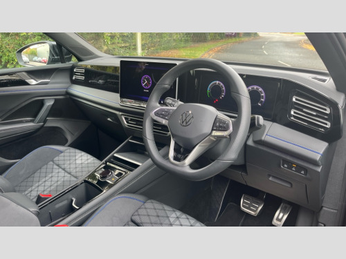 Volkswagen Tiguan 1.5 TSI 272 eHybrid R-Line 5dr DSG Adaptive cruise control (ACC), Advanced driver attention and drowsiness monitor, Bluetooth mobile phone interface, Car2X technology, Digital Cockpit Pro - 10.25" high resolution dash display screen with customisable menus and information, Dynamic road sign display, E-Sim card for online connectivity, eCall emergency call service, Front Assist - Autonomous emergency braking with pedestrian and cyclist monitoring, Lane change system, Side assist, Rear traffic alert and Exit warning system, Lane keeping system Lane Assist, Multifunction front facing camera, Oncoming vehicle braking when turning including swerve support, Park assistance plus with front and rear parking sensors, Power assisted steering with speed sensitive, Start/stop system with regenerative braking, Warning signal and warning light for front and rear seatbelts not fastened, Wireless App-Connect, Adaptive chassis control DCC pro includes driving mode selection, Charging cable Mode 3 Type 2 / 3 (16A), Front shock absorption, Front wheel drive, Rear shock absorption, Digital radio reception (DAB), Diversity antenna for FM reception, Air intake with Chrome trim, Ambient lighting with logo projection, Auto dimming interior rear view mirror, Automatic headlight control system, Body coloured door handles, Chrome moldings on the side windows, Coming/leaving home lighting function, Heat insulating glass in side and rear windows, Heated rear window, Heated windscreen washer jets, High level 3rd brake light, Illuminated door handle recesses, Illuminated lightline between headlamps, Laminated safety glass windshield, Rain sensor windscreen wipers, Rear fog light on one side, reversing light on both sides, Rear side wing doors, Rear wiper, 12V outlet in center console rear and in luggage compartment, 12V socket in centre console, 3 bench rear seats in 2nd row, Air care climatronic 3 zone air conditioning system with rear air conditioning control panel, Black roof lining, Brushed stainless steel pedals, Carpet mats, front and rear, Centre console with illuminated storage compartment with sliding cover and two drinks holders, Chrome elements on the mirror switch and power window switches and door pulls, Door and side trim panel with leatherette insert, Door sill protectors, Front centre armrest, Interior ambient lighting with 30 colour options, ISOFIX anchors for child seats on outer rear seats and front passenger seat compatible with i-Size, Mechanical rear seat release, Power adjustable lumbar support in front, Rear bench seat, split folding, longitudinally movable and folding with load-through hatch and centre armrest, Single front passenger seat, Soul headlining, Sports comfort seats in front, Sun visors with illuminated vanity mirrors, Three rear head restraints, Variable luggage compartment floor, 3 point seat belt for centre rear seats, 3 Point seat belts in front with pretensioners, 3 point seatbelts in outer rear with ECE label, Driver and front passenger airbag with front passenger airbag deactivation, Electronic parking brake with auto hold, Front and rear curtain airbags, Front and rear side airbags, Front centre airbag, Front disc brakes, Manual child proof rear door locks, Rear disc brakes, Two tone horn, Warning triangle, Anti theft wheel bolts, Decorative inserts, Interior door handle in matte chrome, Soul instrument panel, Tool kit for tyre mobility set, Tyre mobility kit including compressor and sealing foam